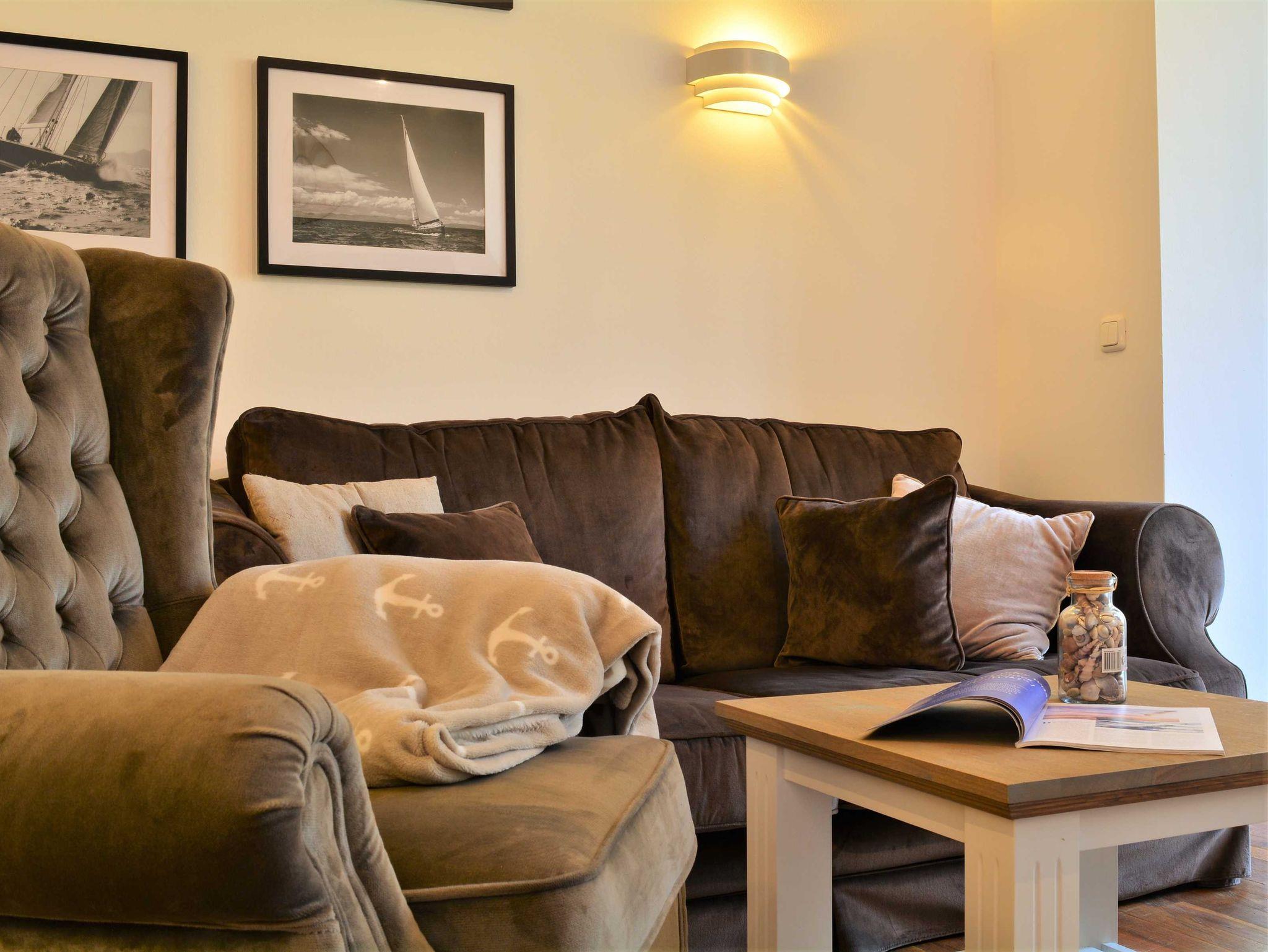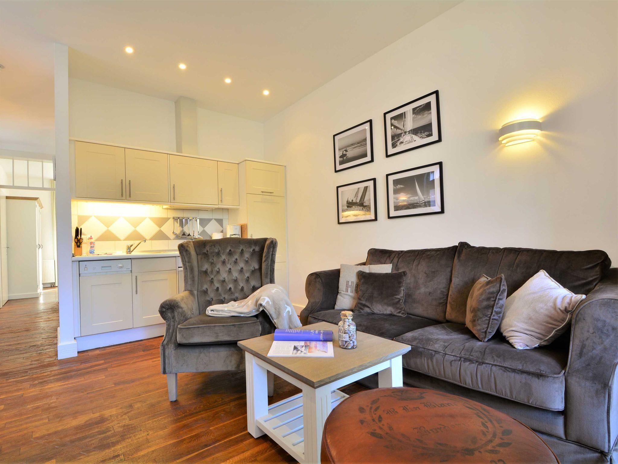 Sie betreten die rustikal eingerichtete Ferienwohnung über einen separaten Eingang. Es empfängt Sie ein freundlicher offener Wohn- und Essraum, von dem Sie die großzügige nach Norden gerichtete Terrasse betreten können. Hier können Sie den Abend nach einem erlebnisreichen Tag am Meer ausklingen lassen. Der Wohnbereich ist ausgestattet mit einem Esstisch mit Blick auf die Terrasse sowie einer bequemen Wohnlandschaft mit Couchgarnitur und Flachbild-TV.