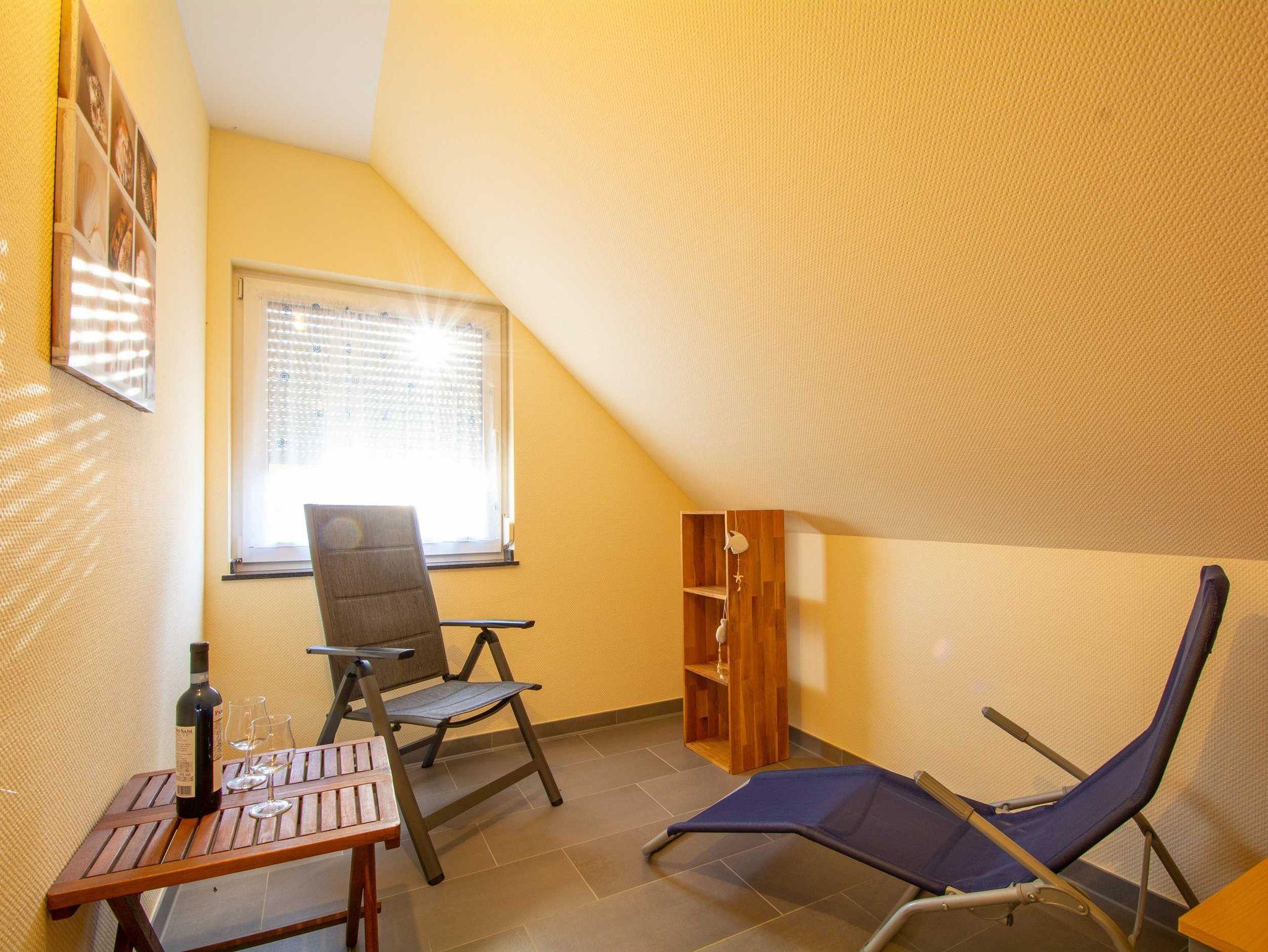 Vom Wohnbereich betreten Sie die möblierte Terrasse mit Gartenanteil, die nach Osten ausgerichtet ist. Hier können Sie Sonne tanken, relaxen und den Abend nach einem schönen Tag am Meer ausklingen lassen.