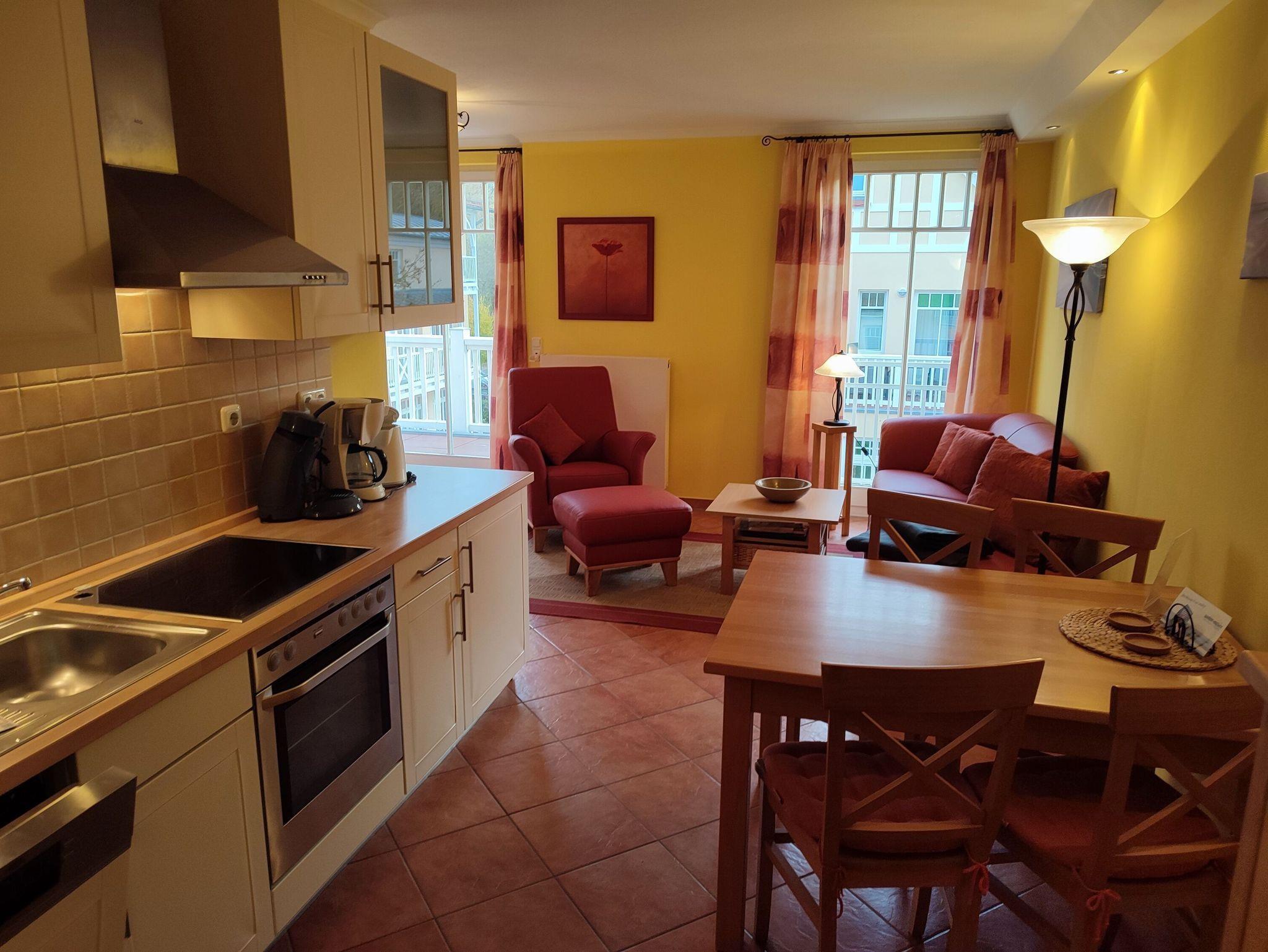 Moderne 2-Zimmer-Ferienwohnung im Dünenschloss mit Balkon, Wellnessbereich und Strandkorb in Kühlungsborn.