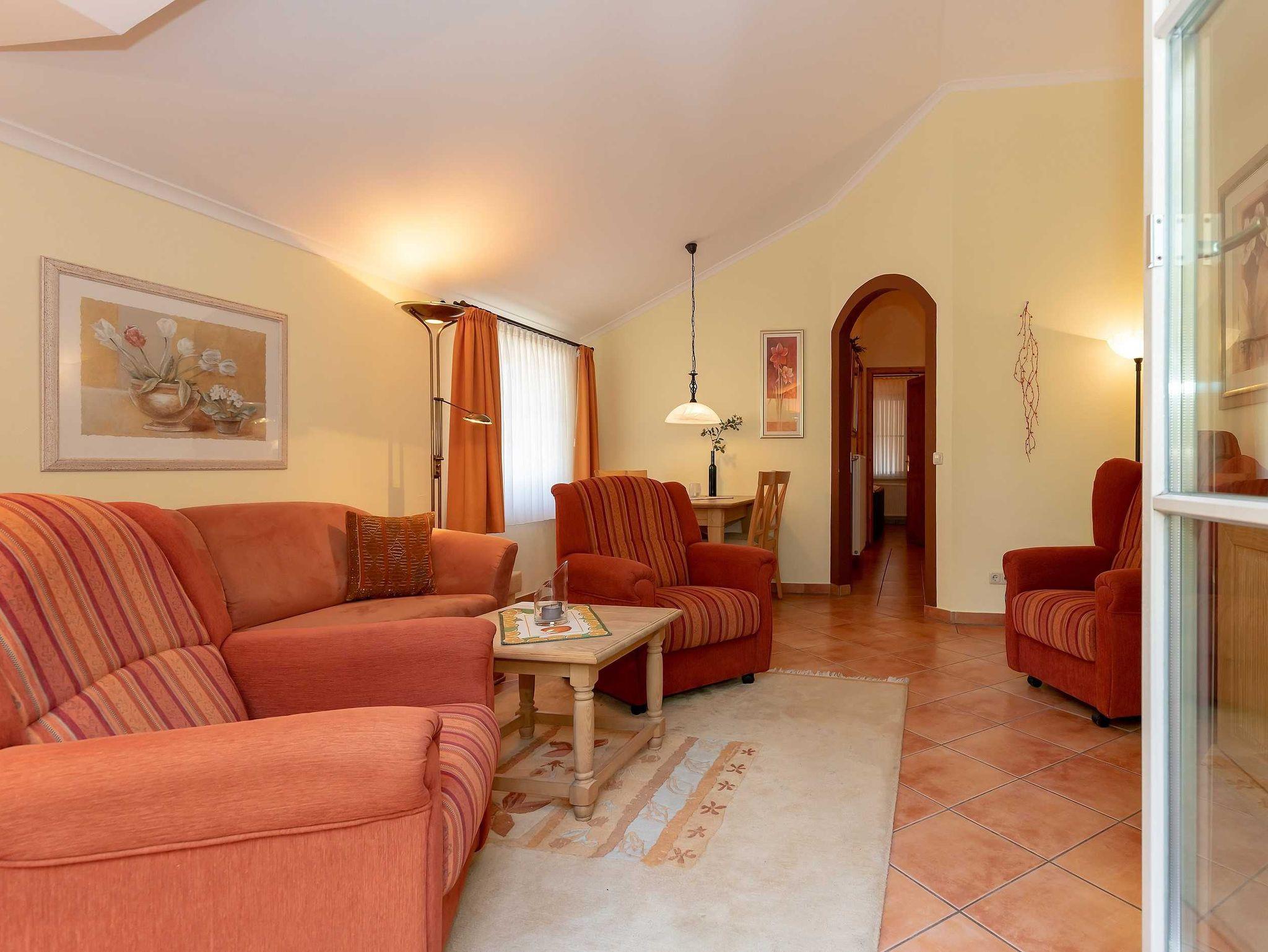 Eine Wohlfühloase im mediterranen Flair: Die liebevoll eingerichtete Penthouse-Ferienwohnung im 2. Obergeschoss der Residenz Laguna bietet Platz für 2 bis 4 Personen. Mit einer großzügigen Terrasse, die nach Süden und Norden ausgerichtet ist und einen malerischen Blick auf den Stadtwald bietet, versprüht es mediterranes Flair.
