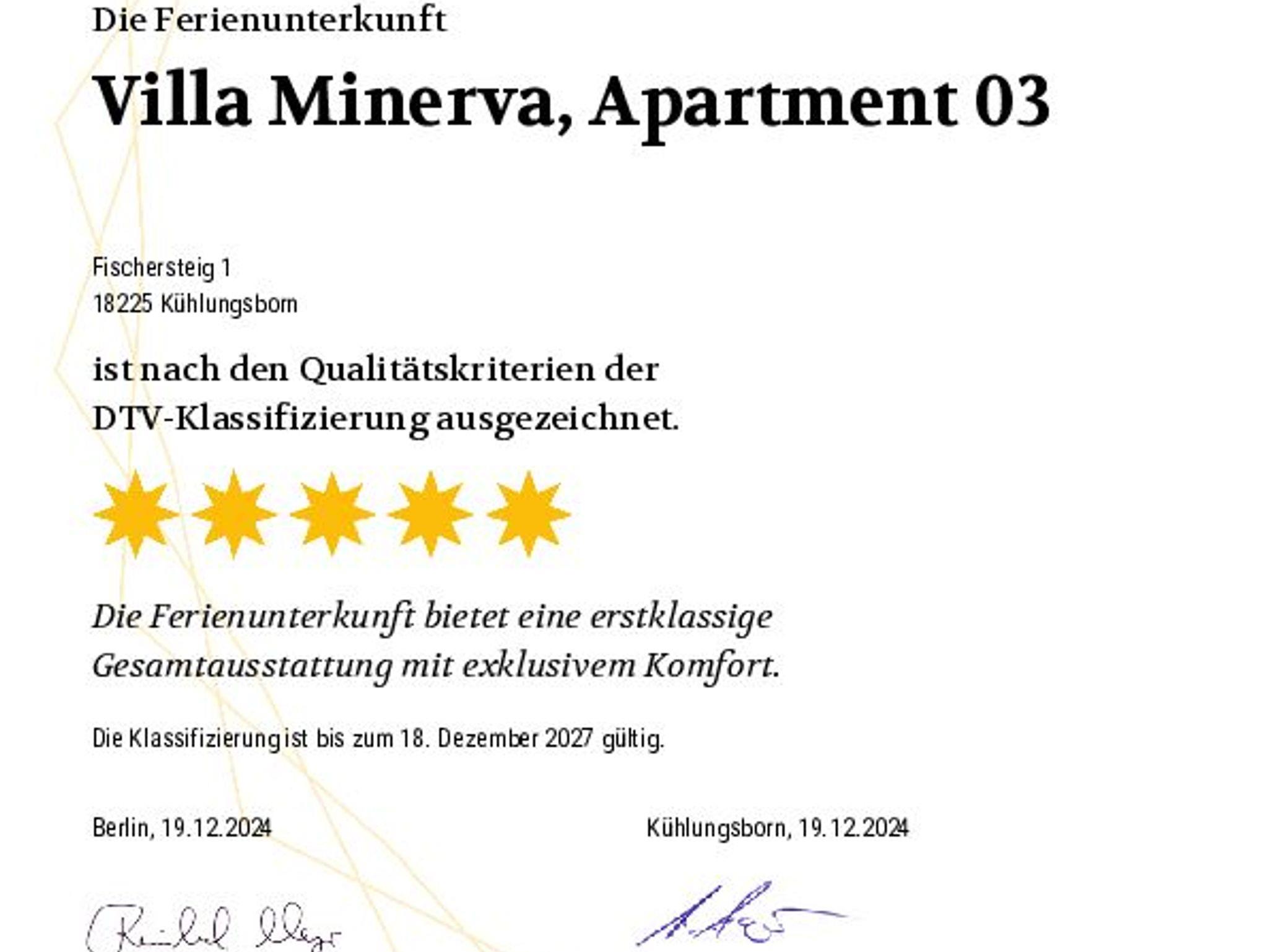 2024 wiederholt offiziell mit 5 Sternen bewertet für höchsten Anspruch und Komfort und Qualität.