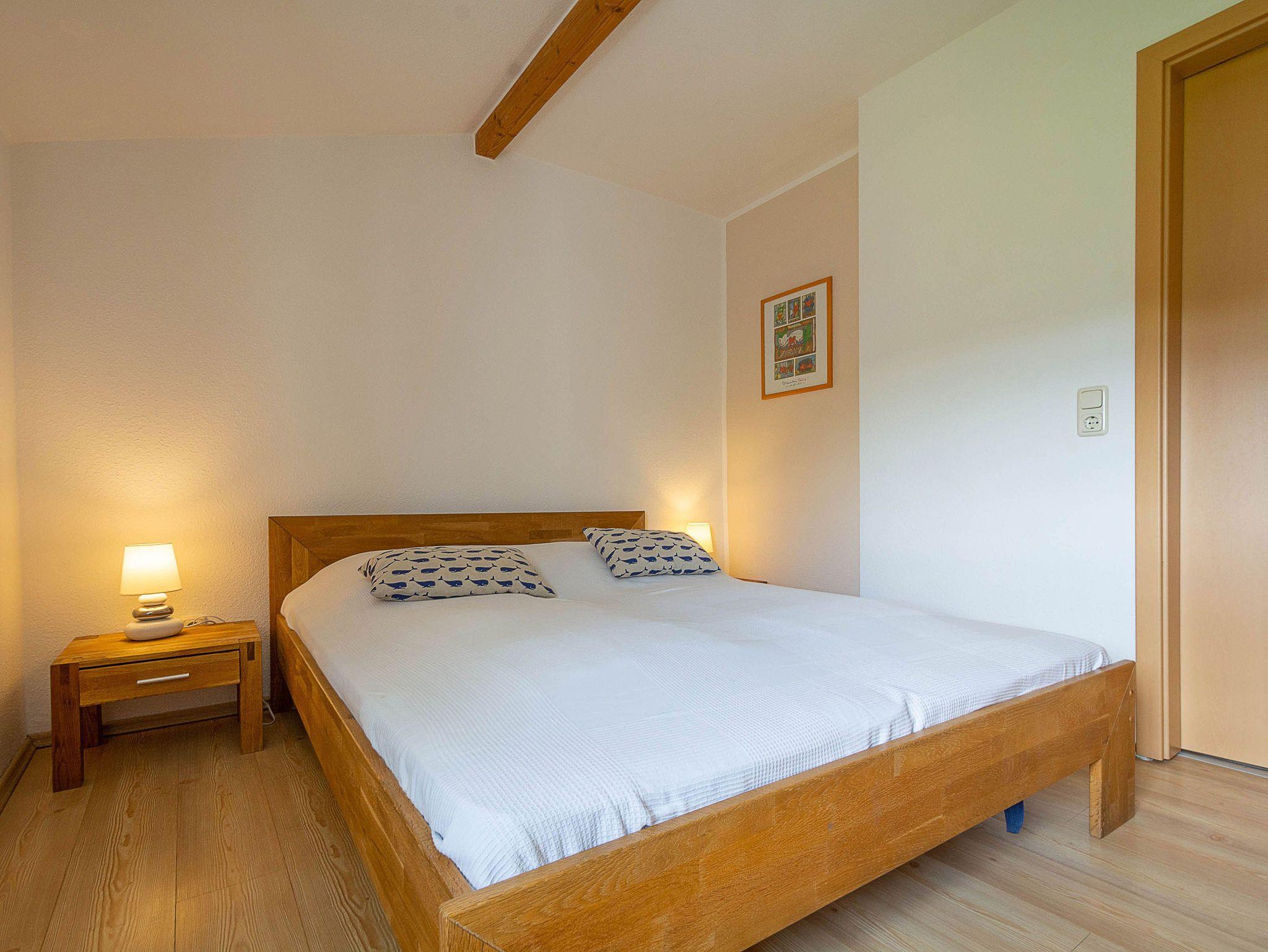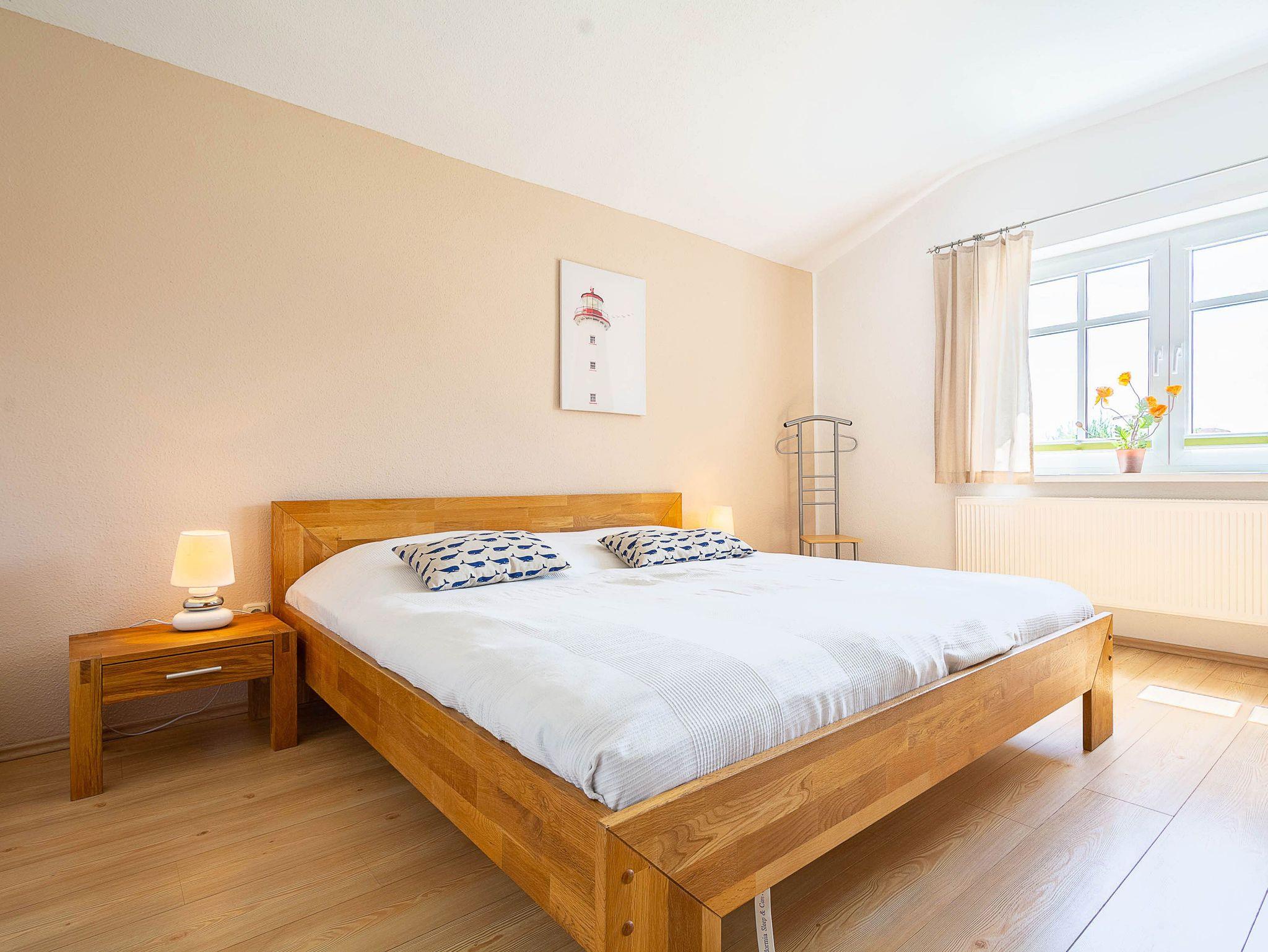 Das erste Schlafzimmer lädt Sie mit einem komfortables Doppelbett (2 x 90 x 200 cm) zur Nachtruhe ein. Der großzügige Kleiderschrank bietet ausreichend Platz für Ihre Urlaubsgarderobe. Ein 32Zoll-SmartTV befindet sich hier ebenfalls auf einer Kommode. Das zweite und dritte Schlafzimmer ist ebenfalls mit einem Massivholzbett (2 x 80 cm x 200cm) und einem Kleiderschrank eingerichtet. Vom dritten Schlafzimmer betreten Sie das Wannenbad. Als Sichtschutz bzw. zum Verdunkeln sind in allen Schlafzimmern Vorhänge und Plissees an den Fenstern angebracht.
