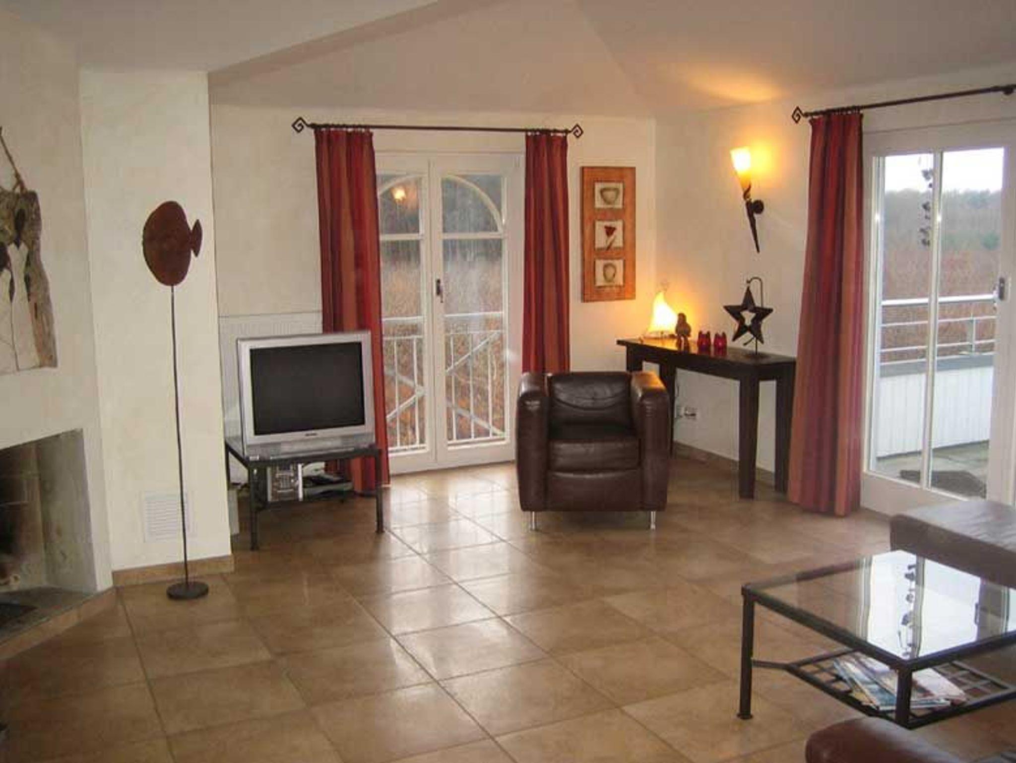 Im Wohnbereich befindet sich ein Kamin, eine gemütliche Sitzgruppe sowie eine