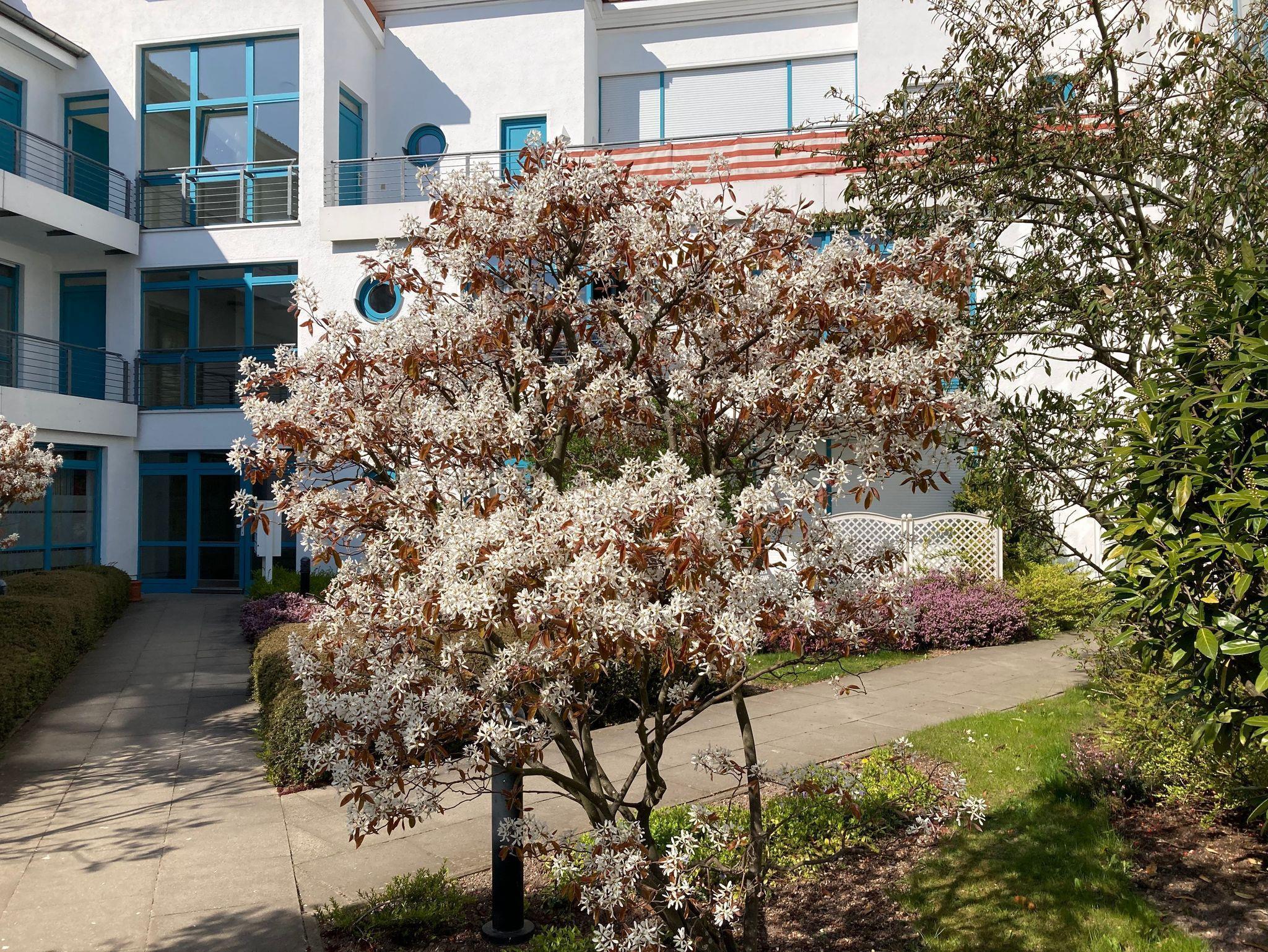 Hier befindet sich die individuell u. modern eingerichtete 2-Zi-Ferienwohnung im 1. Stock (Whg 12), ruhig und zentral, 57 qm plus Südwestbalkon mit Blick in den Stadtwald. Für max. 4 Erwachsene und 1 Kind geeignet.