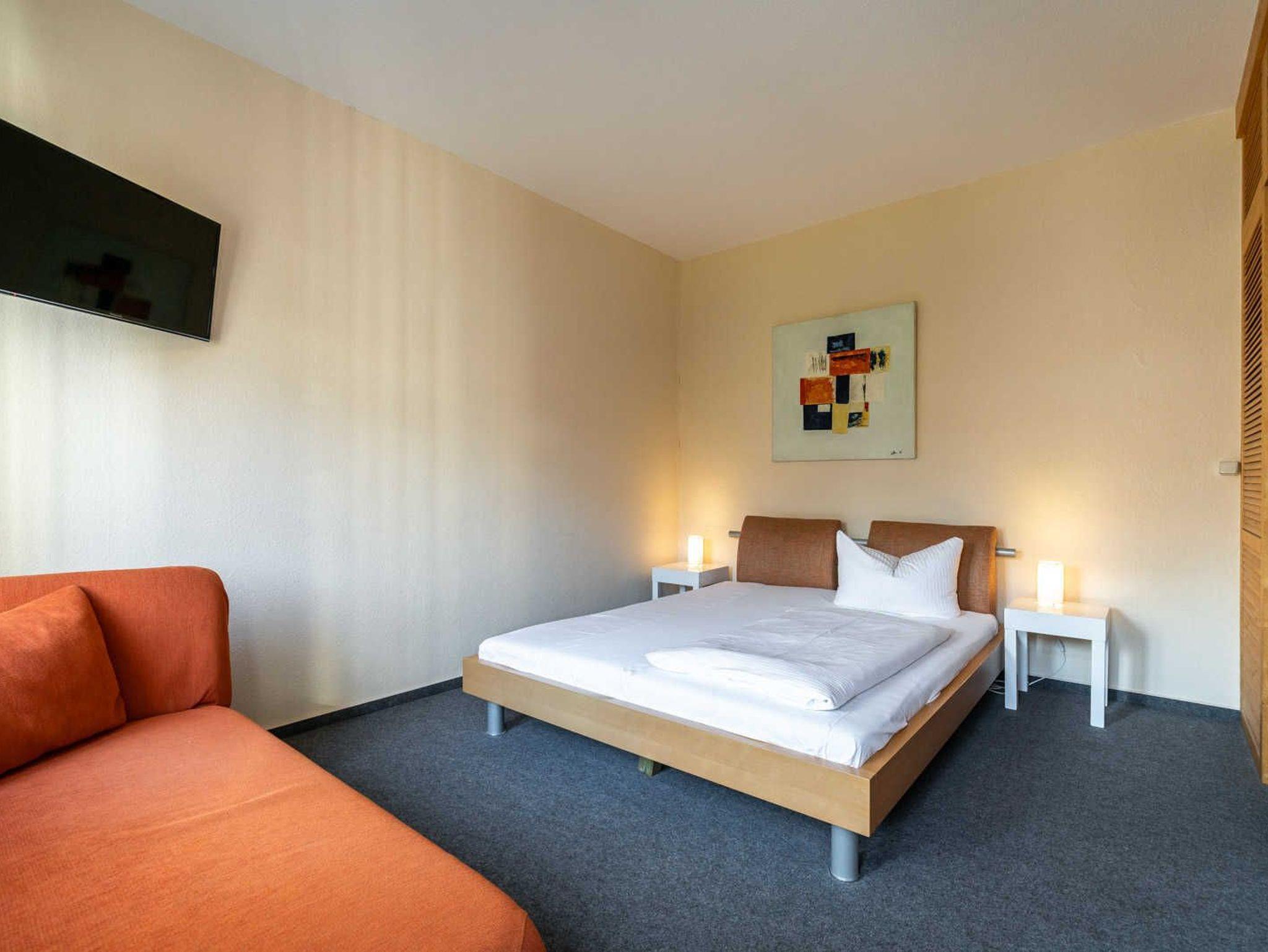 Die drei Schlafräume mit Doppelbetten in hochwertiger Qualität verfügen über Wandschränke, in einem Schlafraum kann ein zusätzlicher Schlafsessel ausgezogen werden. Das größte der drei Schlafzimmer bietet zusätzlich eine Schlafgelegenheit für 2 Personen. Alle Schlafräume verfügen beenfalls über einen Flachbild-TV