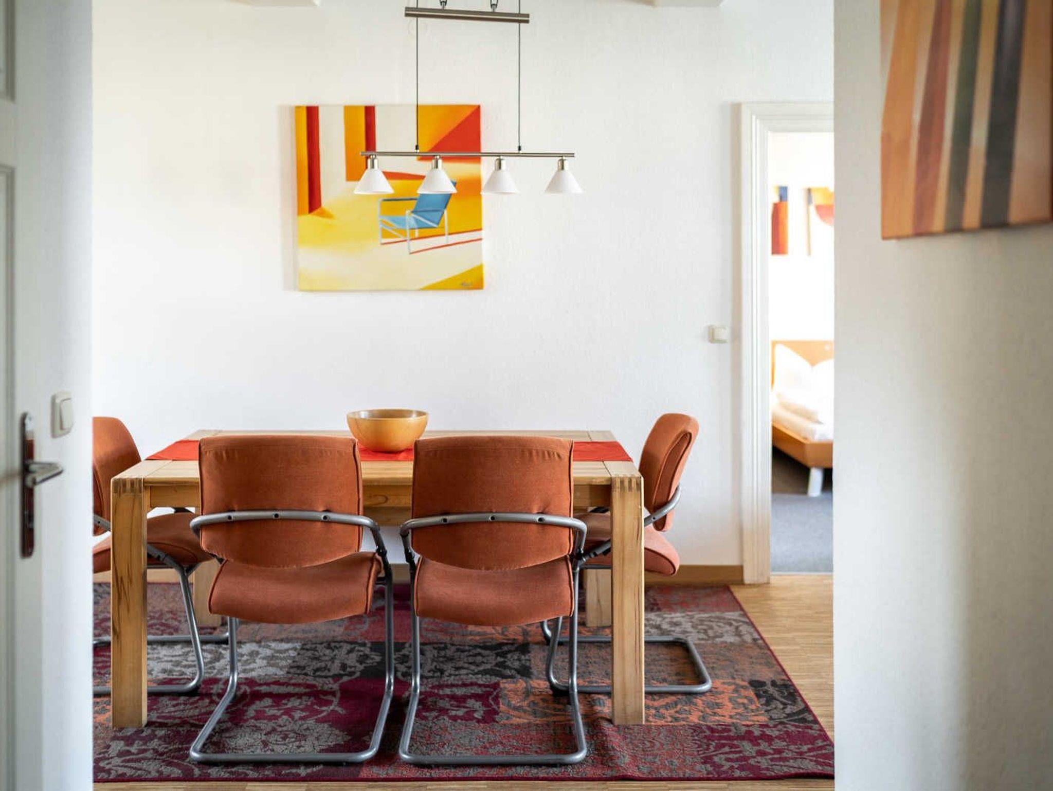 Unsere Ostsee-Ferienwohnung Abendsonne für sechs bis acht Personen befindet sich im 1. OG des Ostsee-Domizils Sandburg, mit hohen Räumen und großzügigem Grundriss.