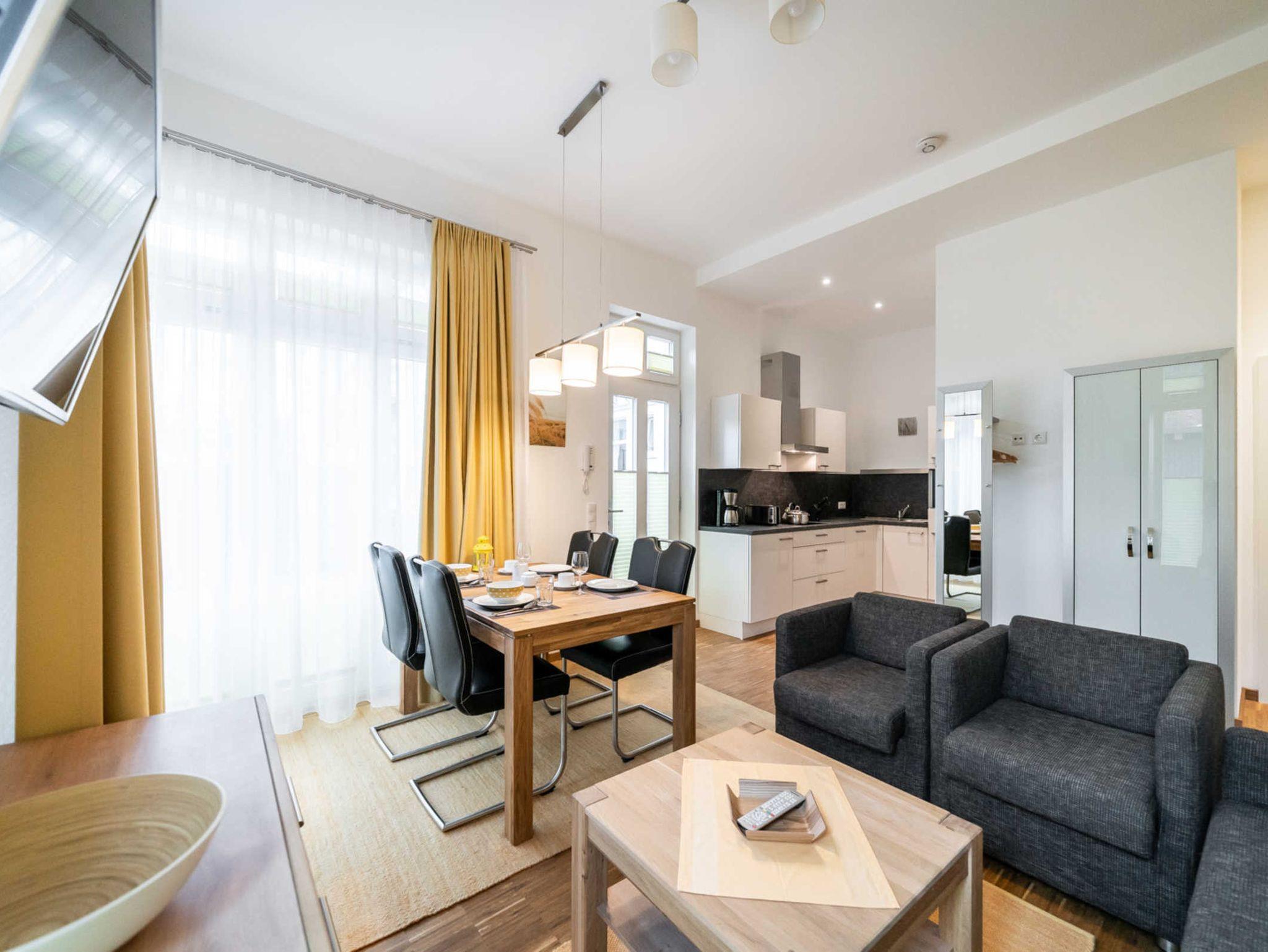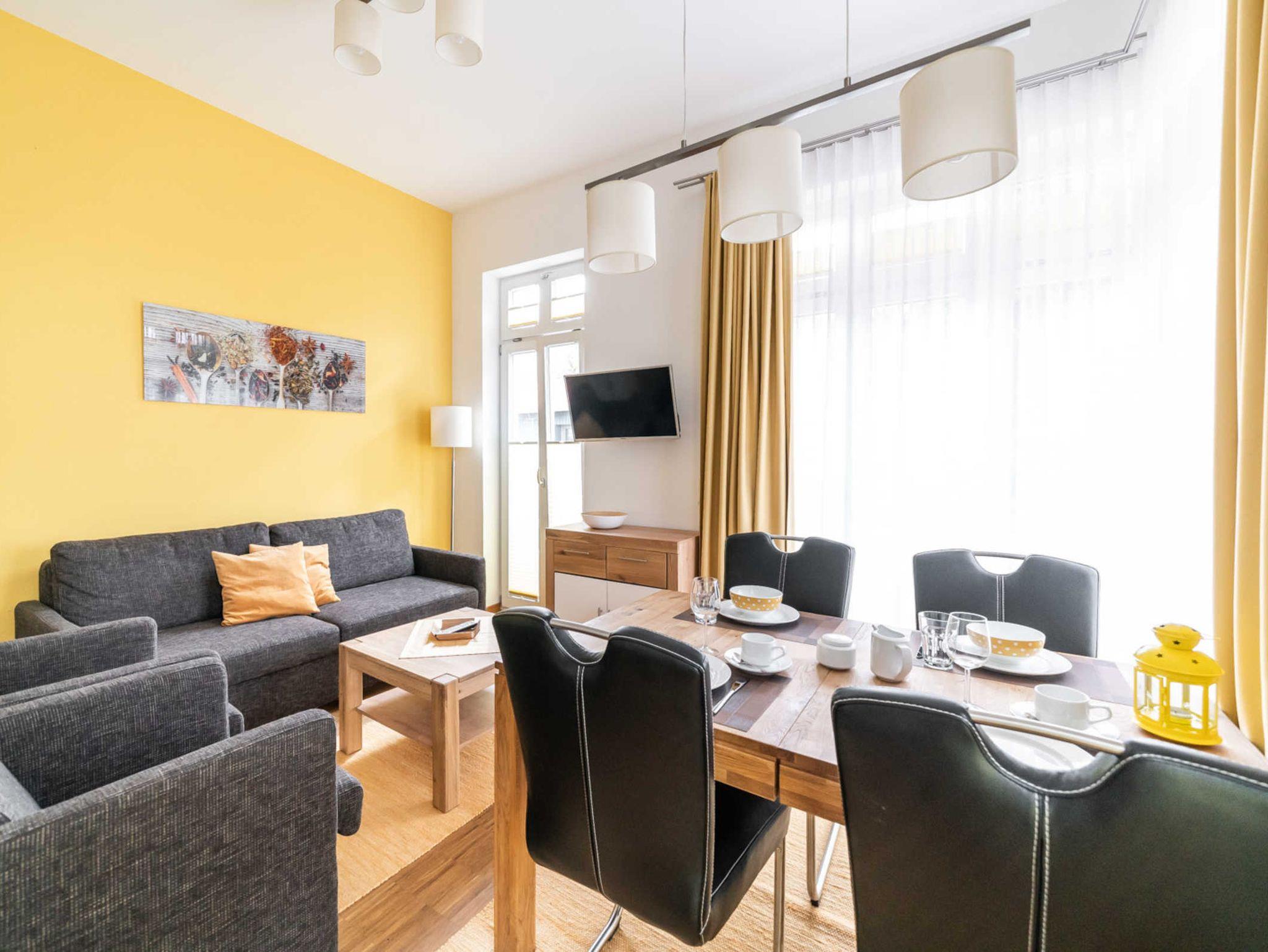 Moderne Ferienwohnung Muschel in Kühlungsborn mit Terrasse, Sauna, Fitnessraum und Tiefgarage für entspannte Ostseeferien.