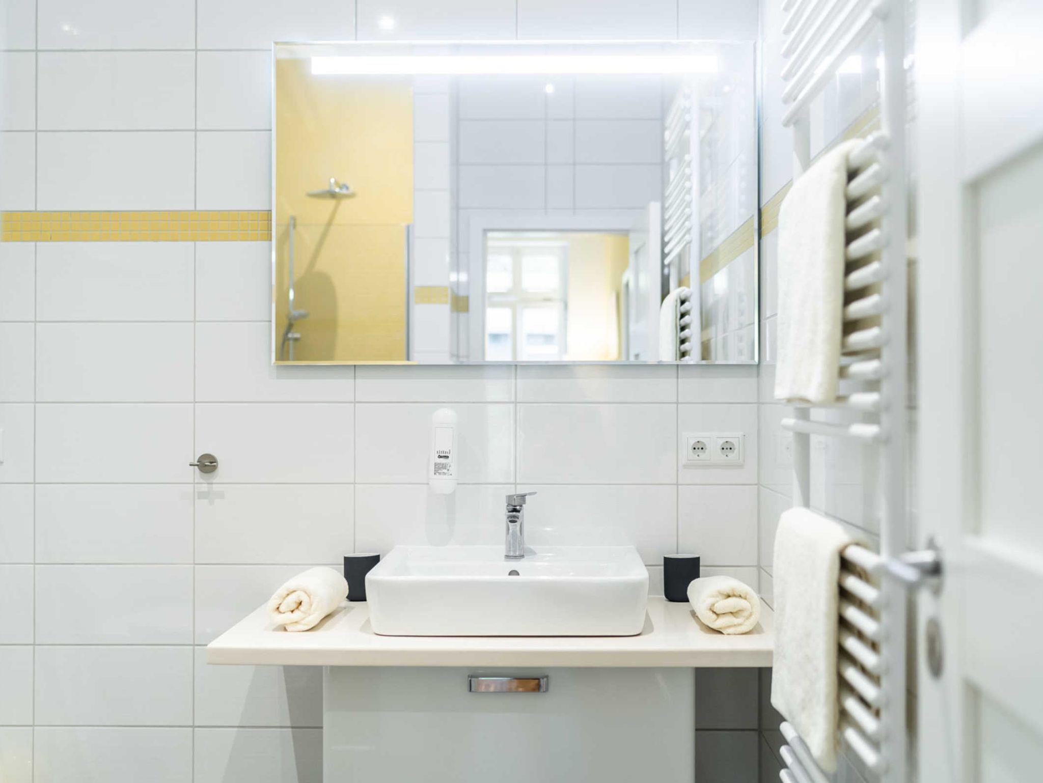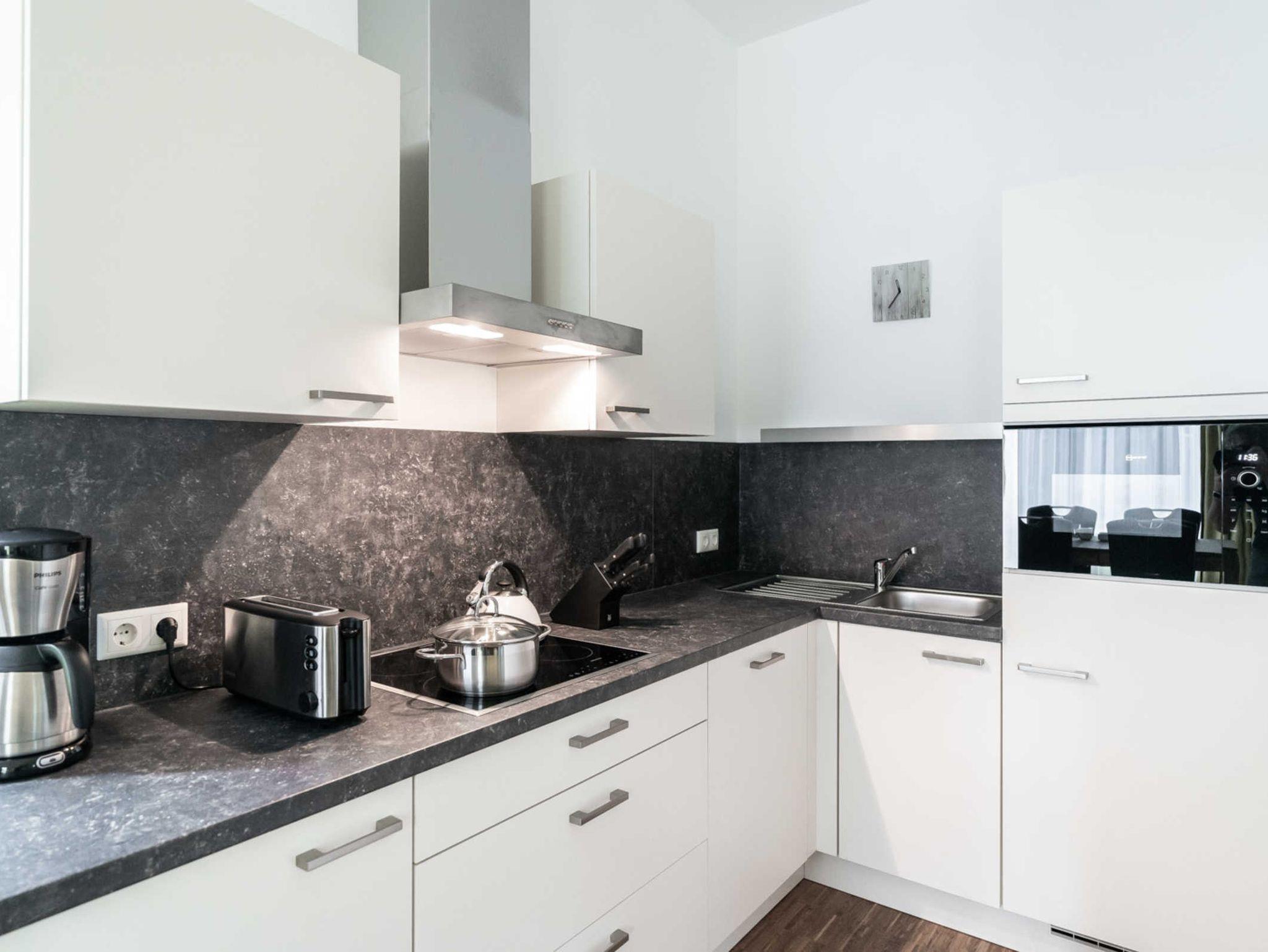 An den gemütlich eingerichteten Wohnraum schließt sich eine moderne, voll ausgestattete offene Küche mit Spülmaschine, Kühlschrank, Backofen, Cerankochfeld, Kaffeemaschine, Toaster, Wasserkocher und ausreichend Geschirr an, auf dem zugehörigen Balkon kann man bereits morgens zum Frühstück die Ostseesonne genießen. WLAN und internetfähige TV-Flachbildschirme sind in jedem Raum selbstverständlich, zwei geräumige Schlafzimmer mit großem Wandschrank und Boxspringbett sowie zwei schöne Bäder mit ebenerdiger Überkopfdusche und WC vervollständigen die moderne Ferienwohnung Muschel.