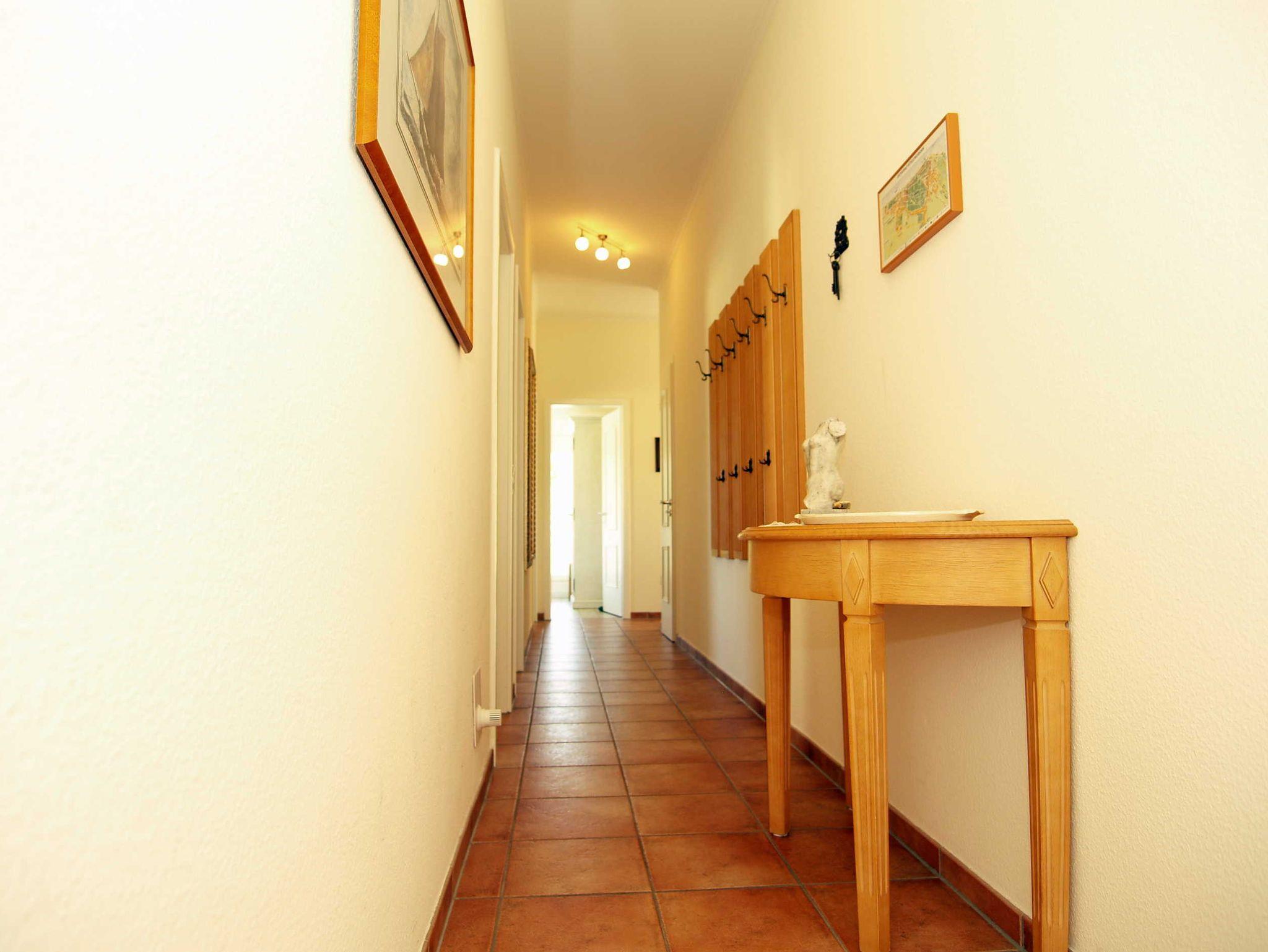 Herzlich willkommen in der Ferienwohnung Nr. 19 in der Villa Casa Nova! Die liebevoll eingerichtete 3-Raum-Ferienwohnung befindet sich im zweiten Obergeschoss der Appartementanlage. Auf ca. 90 qm Wohnfläche können hier bis zu 4 Personen erholsame Urlaubstage genießen. Es empfangen Sie ein gemütlicher Wohnbereich, eine Küche mit Essbereich, zwei Schlafzimmer, ein Duschbad und ein Wannenbad sowie ein großer langgezogener Balkon mit Nord-Ost-Ausrichtung sowie drei weiteren kleinen Balkonen. Die Wohnung ist mit mediterranen Terracotta-farbenen Designer-Fliesen ausgestattet.