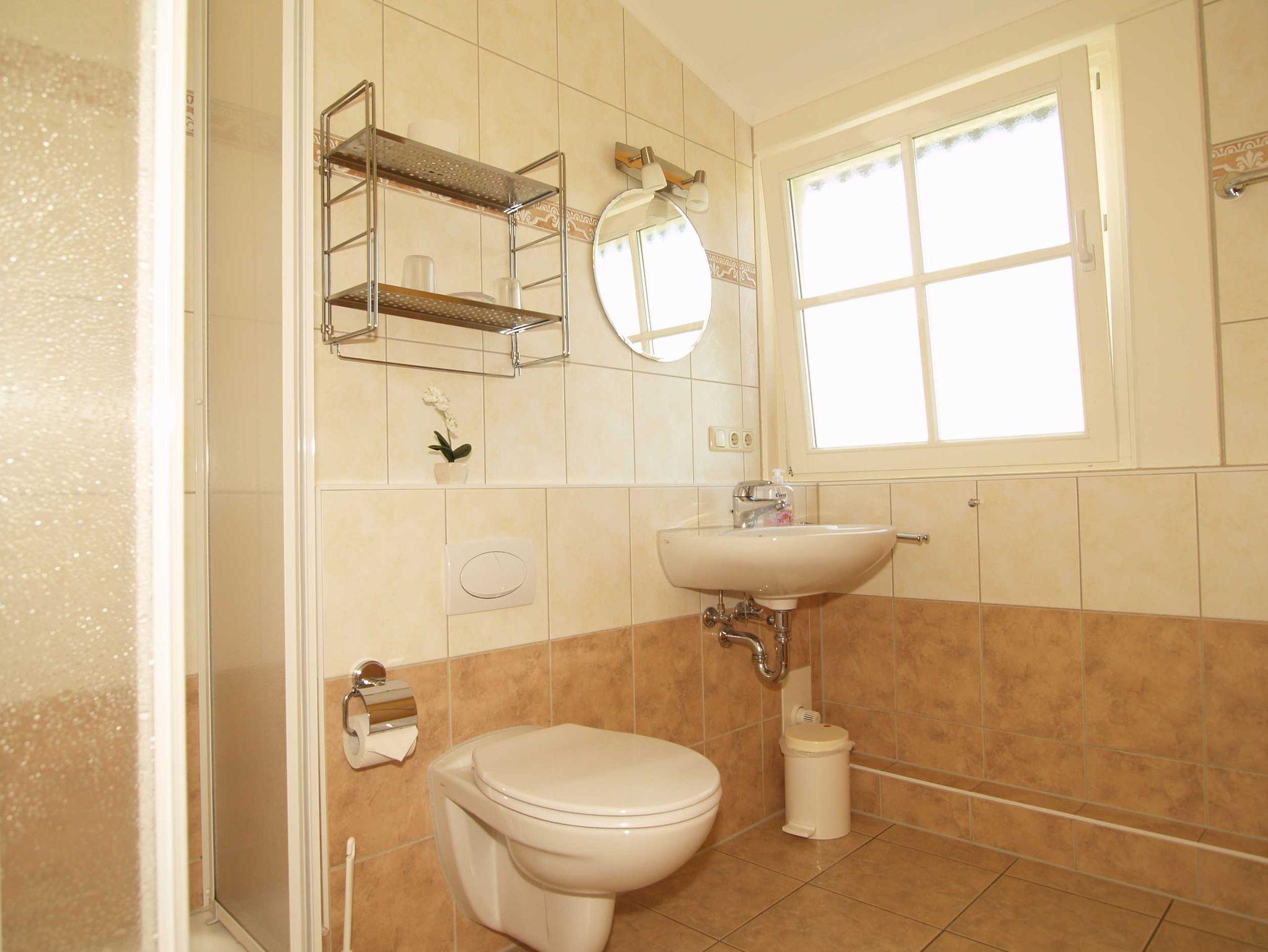 Die beiden gefliesten Tageslichtbäder vervollständigen das Gesamtbild dieser hervorragend ausgestatteten Ferienwohnung. Das eine Bad verfügt über eine Badewanne, während das andere Bad mit einer Dusche ausgestattet ist. Handtuchheizkörper in den Bädern sorgen für kuschelig warme Handtücher und komplettieren die Badeinrichtung.