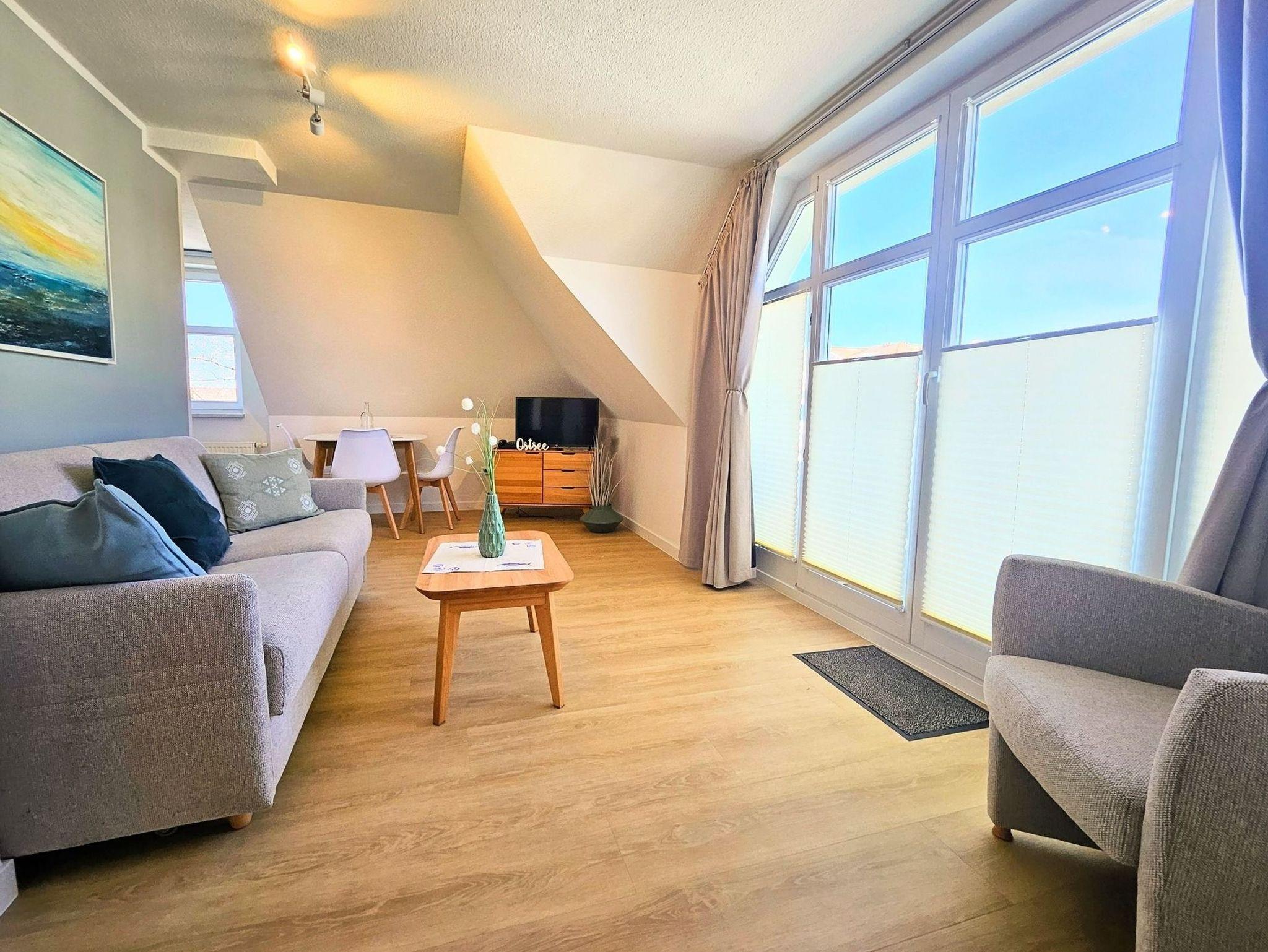 Modernes 2-Zimmer-Apartment in Kühlungsborn, nah am Strand und Stadtwald, mit Sauna, Pool und Brötchenservice.