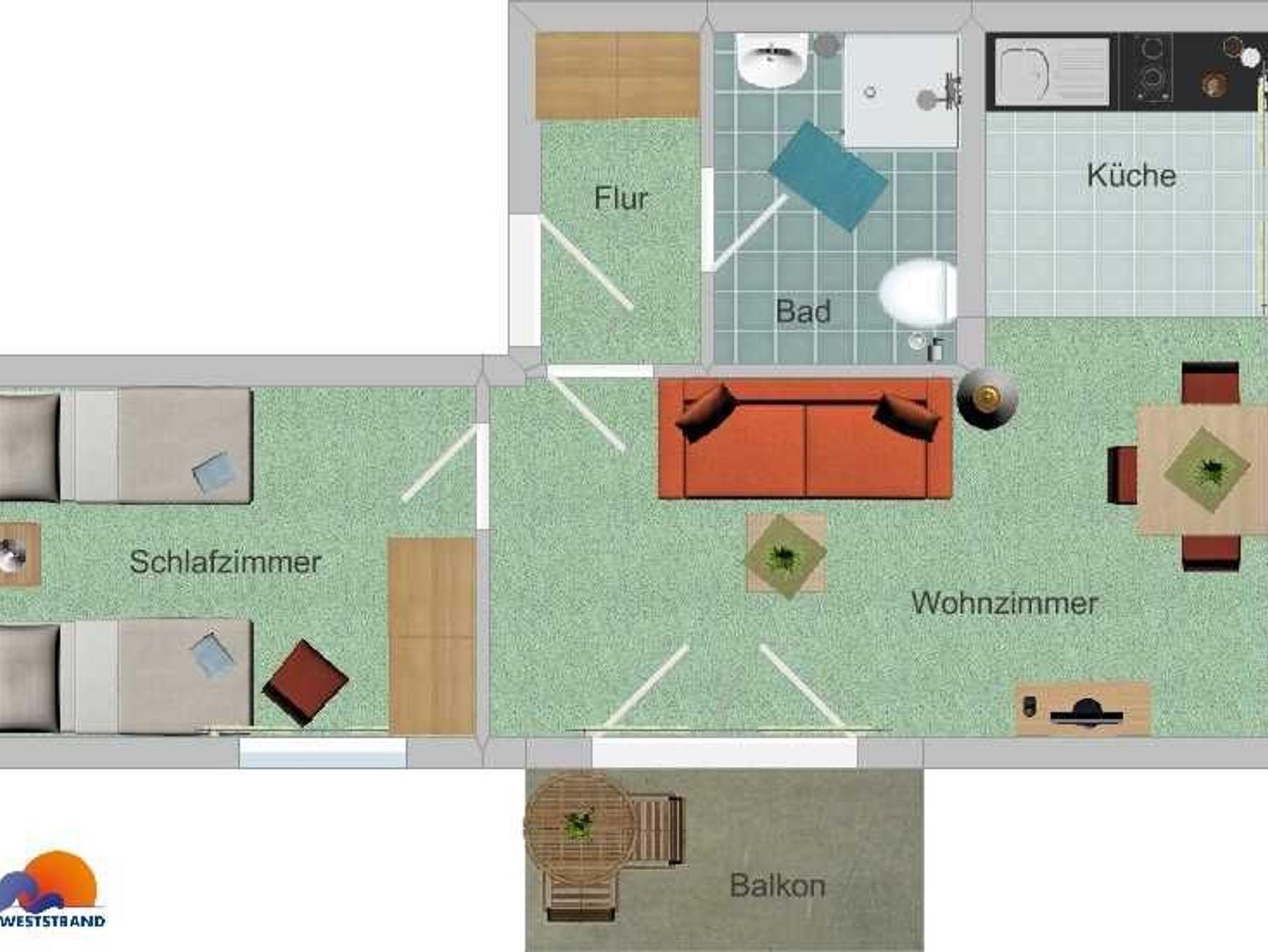Am Weststrand Apartmenthaus Waldeck, 2-Zimmer-Apartment - B46