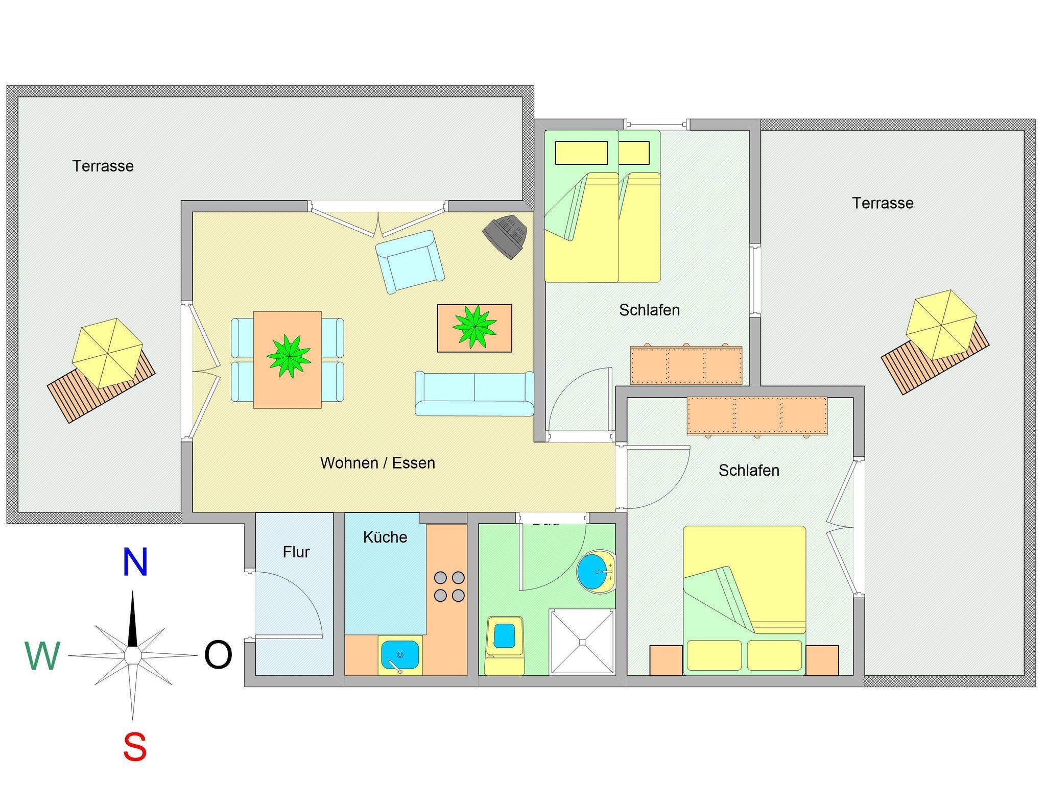 Als Zusatzleistung steht Ihnen eine Internetnutzung über einen WLAN-Hotspot kostenfrei zur Verfügung, wobei gem. AGB keine Haftung bei etwaigen Störungen erfolgt. Wir bitten um Ihr Verständnis, dass das Rauchen nur auf der Terrasse gestattet ist, da es sich um eine Nichtraucherwohnung handelt. Tiere sind ebenfalls nicht erlaubt. Gästen dieser Wohnung steht ein markierter Carport-Stellplatz mit der Stellplatz-Nr. 2.2 zur Verfügung.