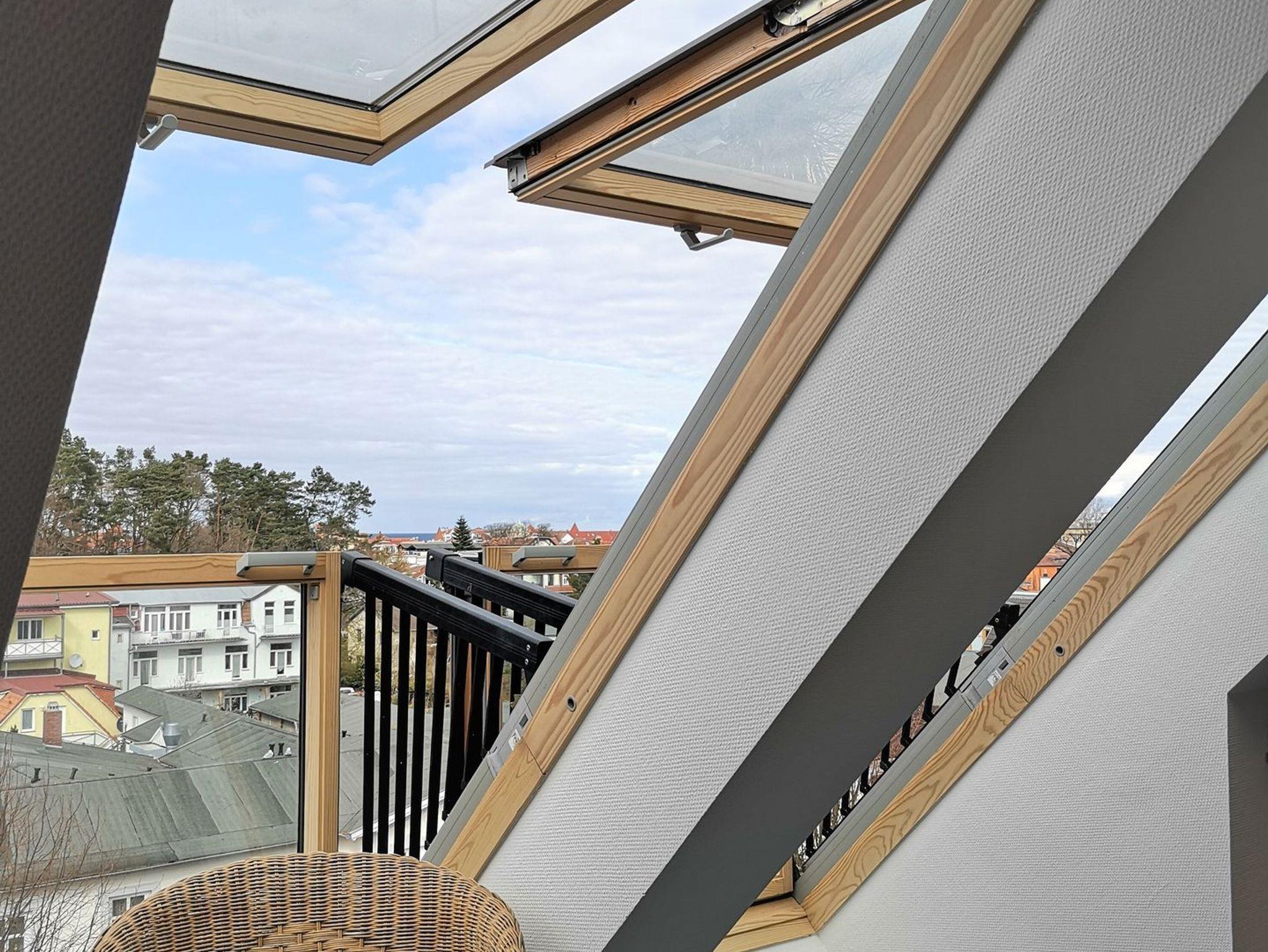 Helle Dachgeschosswohnung mit Ostseeblick, moderner Küche und Yoga-Matte in Kühlungsborn.