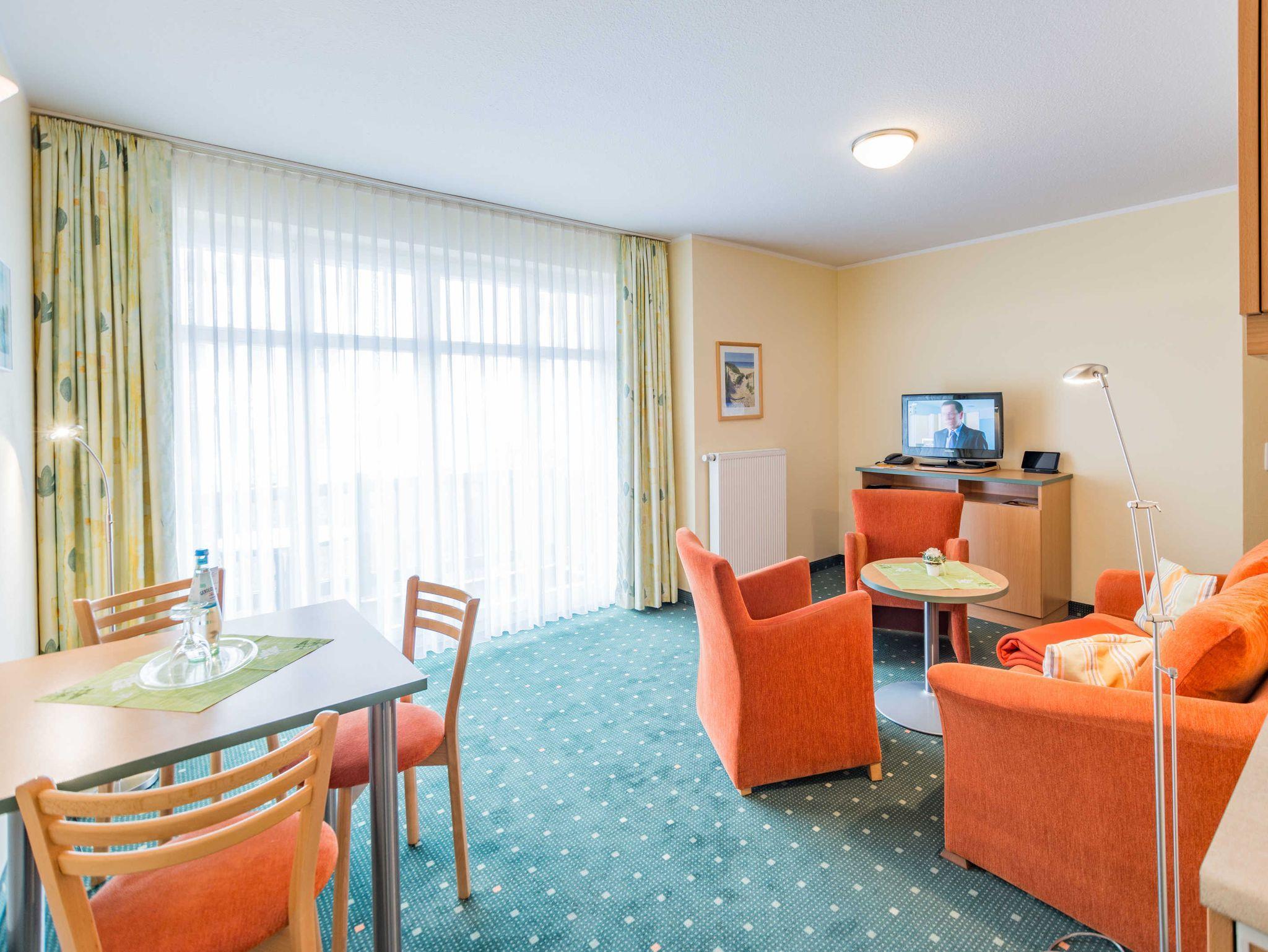 Wer sich lieber verwöhnen lässt, bucht einfach das reichhaltige Frühstücksbüffet und das Abendmenü im Wintergarten des Am Weststrand Aparthotel Kühlungsborn mit. Auch ernährungsbewusste Gäste kommen bei frischen Salaten, leichten Speisen und ständig wechselnden Tagesgerichten auf ihre Kosten.