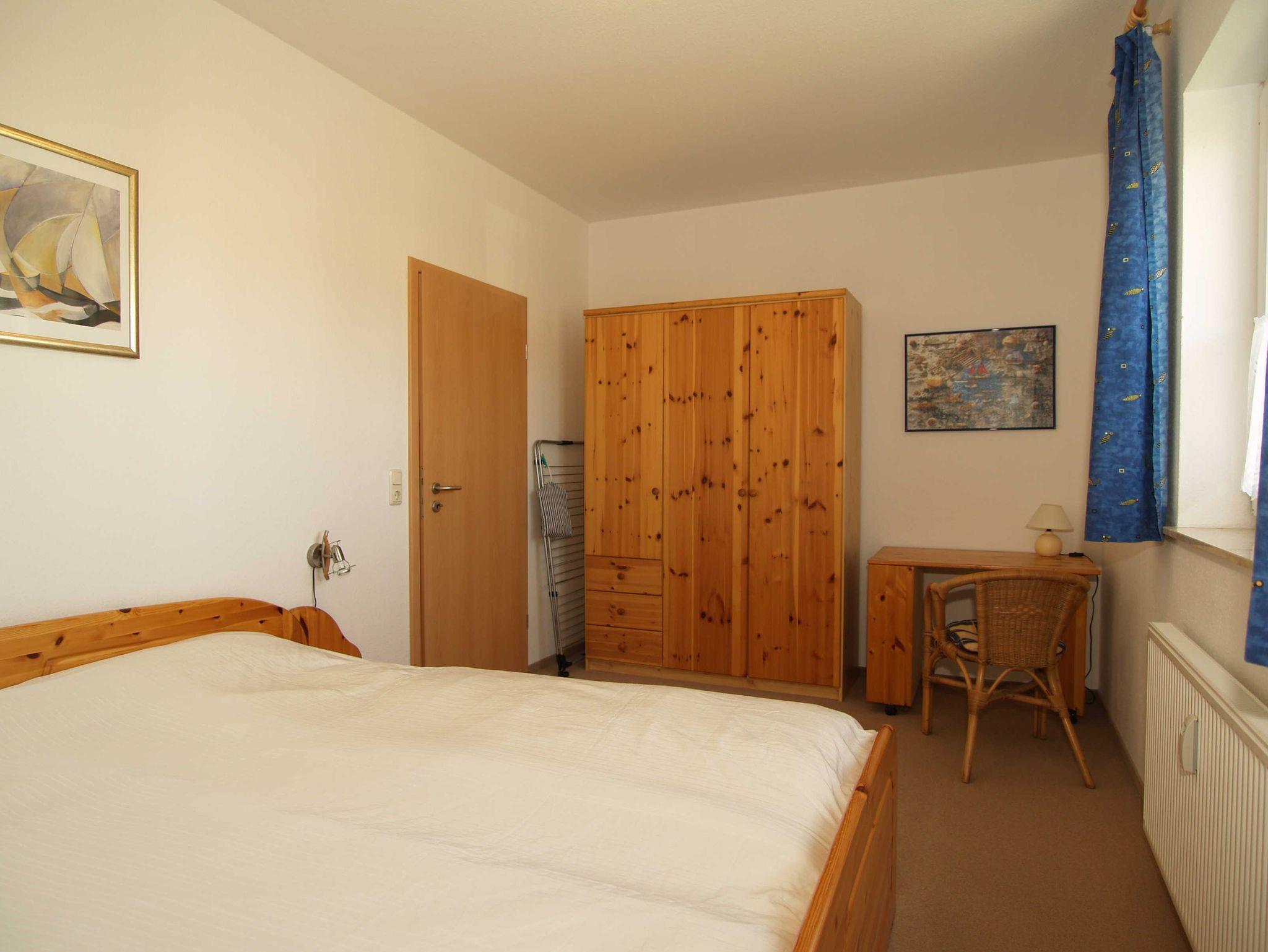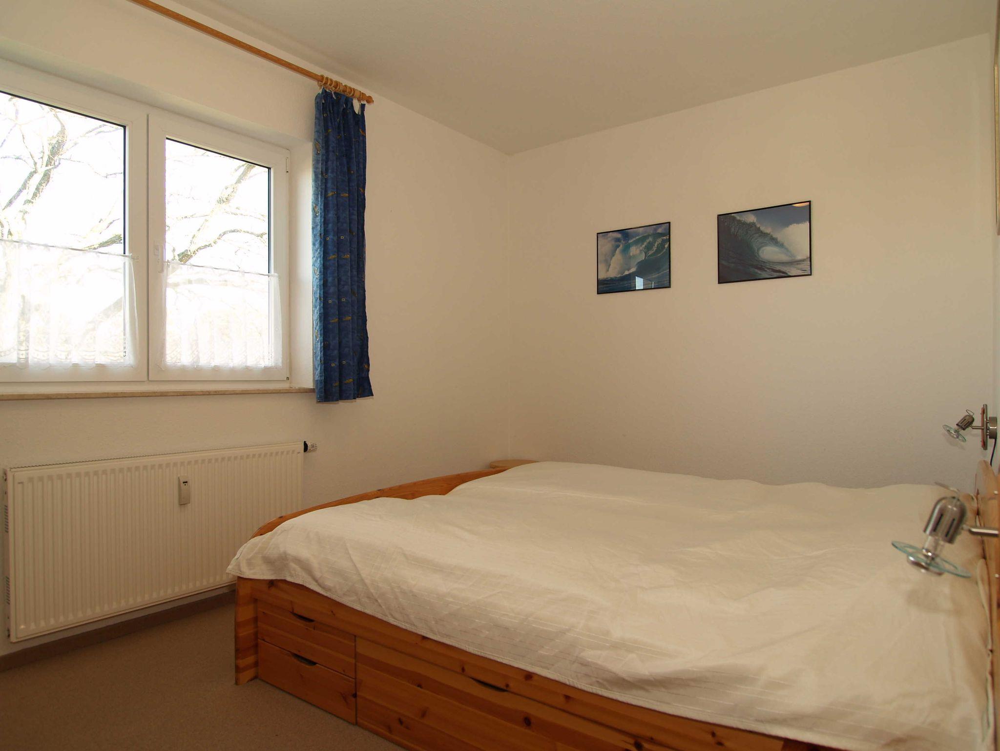 Im Schlafzimmer lädt Sie ein komfortables Doppelbett (2 x 90cm x 200 cm) zur Nachtruhe ein. Der geräumige Kleiderschrank bietet genügend Platz für Ihre Urlaubsgarderobe. Als Sichtschutz bzw. zum Verdunkeln sind im Schlafzimmer und im Wohnzimmer Gardinen und Vorhänge angebracht.