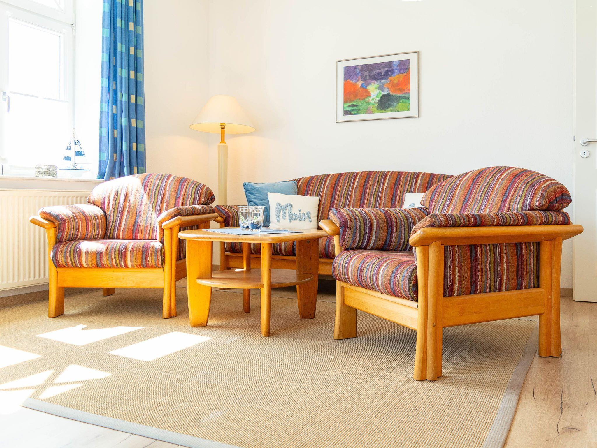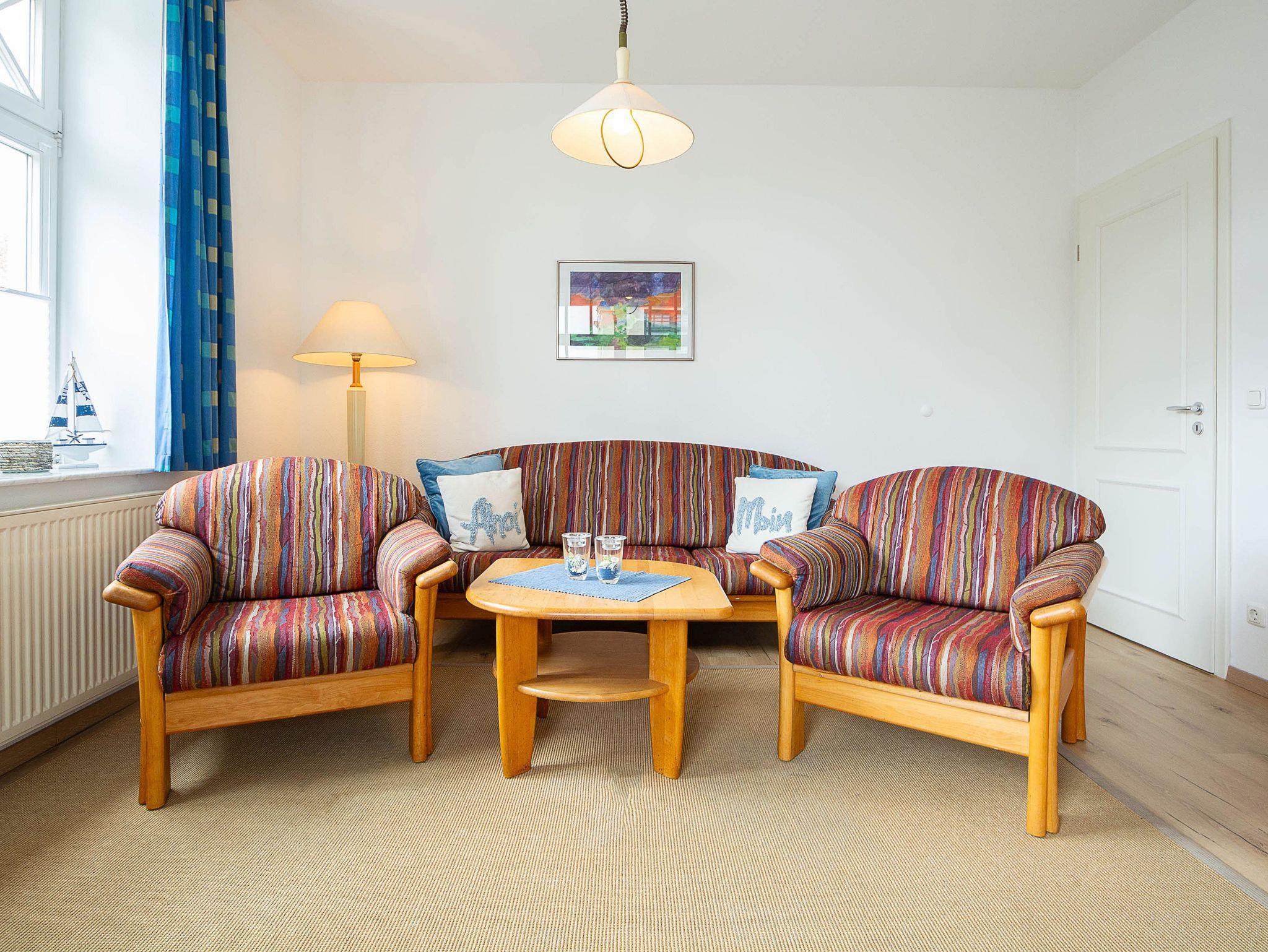 Herzlich willkommen in der Villa Barbarossa! Hier, im Hochparterre befindet sich die Wohnung Nummer 01. Die gemütlich eingerichtete 3-Raum-Ferienwohnung bietet auf 73qm Platz für bis zu 4 Personen. Der helle offene Wohnraum ist ausgestattet mit einer bequemen Couchgarnitur und einem 50-Zoll- 4K- Smart TV.