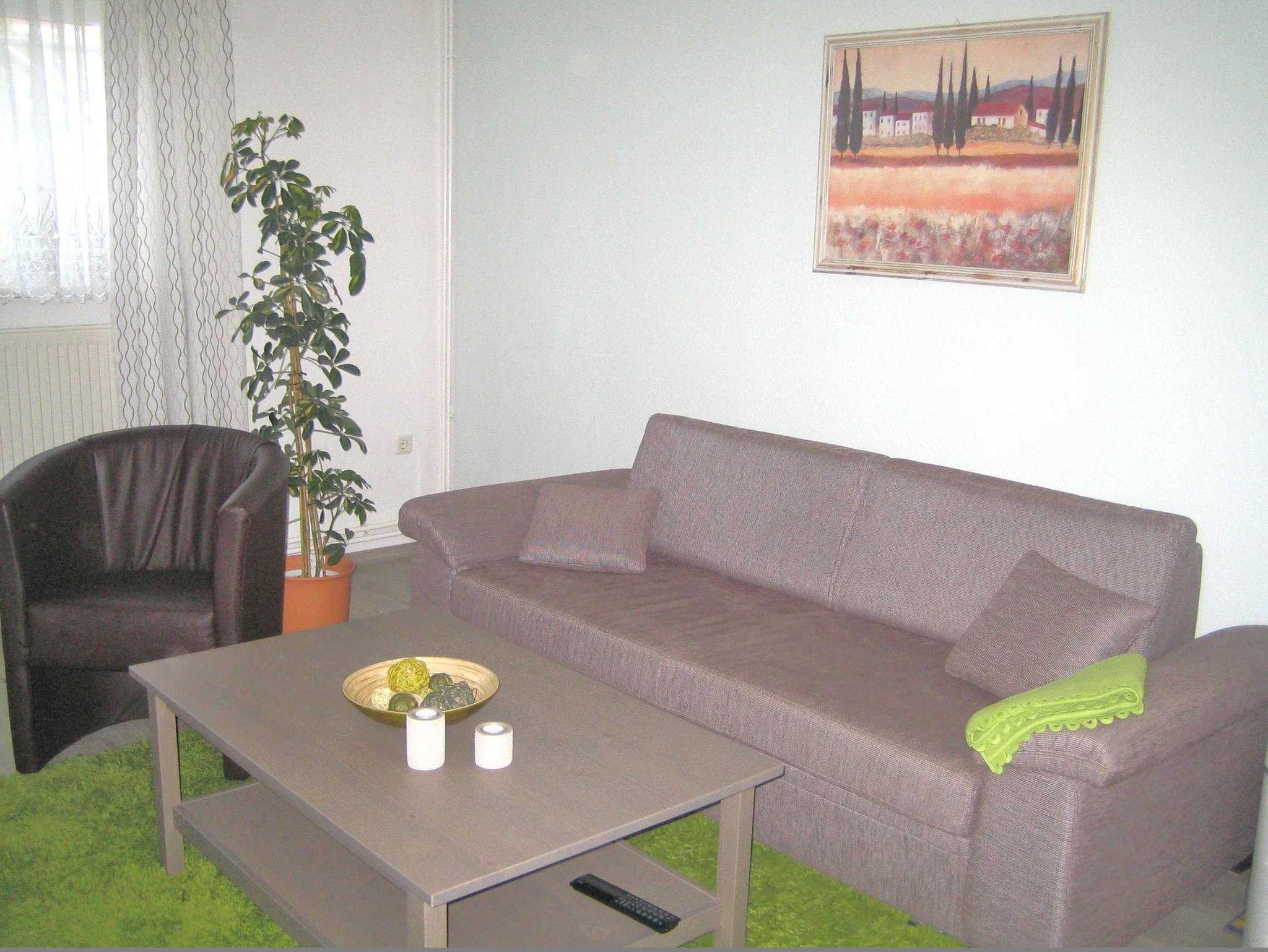 Wohnzimmer mit Schlafcouch ( für 2 Personen), ein Schlafzimmer mit Doppelbett, einer modern ausgestatteten Küche und einem Badezimmer mit Dusche/ WC.