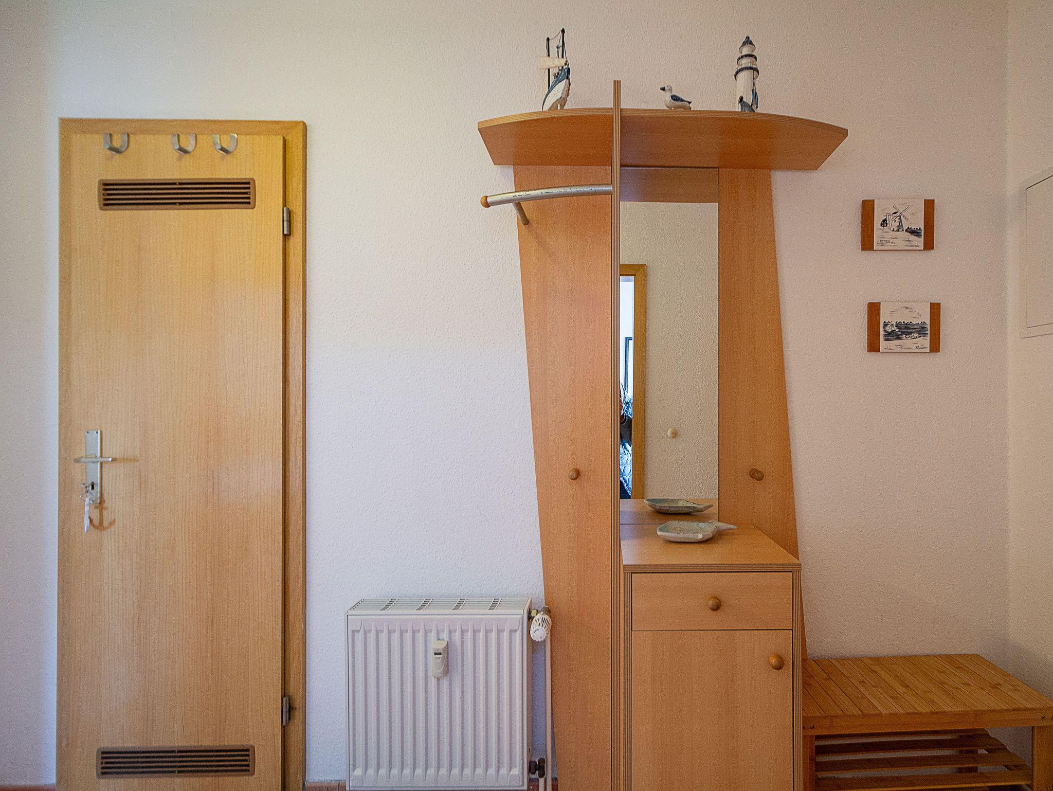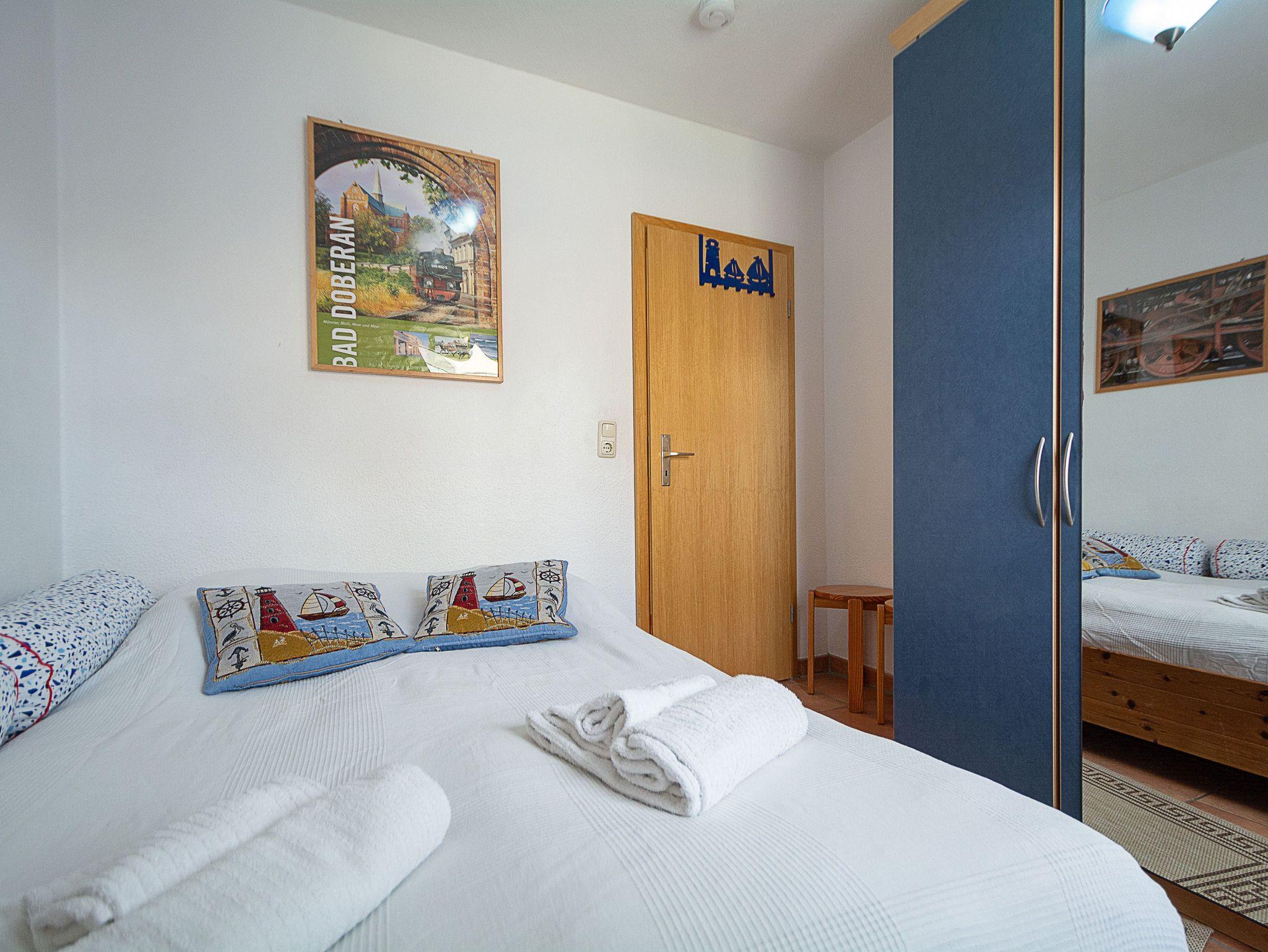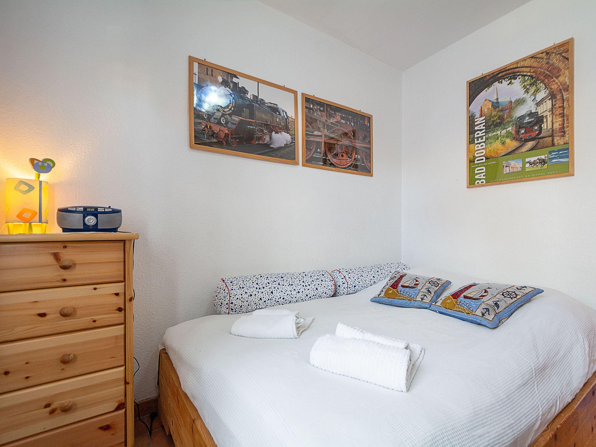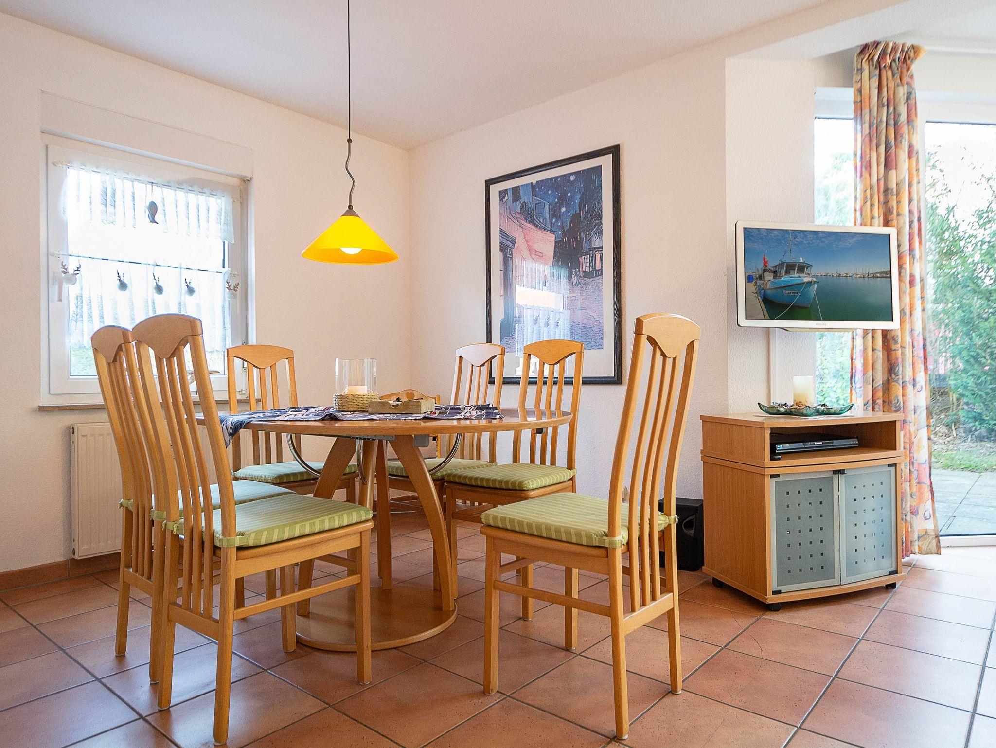 Sie wohnen in einer komfortablen 3-Raum-Ferienwohnung von ca. 59 qm Größe, die sich im Erdgeschoss eines Mehrfamilienhauses befindet. Das helle freundliche Wohnzimmer ist ausgestattet mit einer Sitzgruppe mit Schlafcouch, Radio und 50-Zoll-Smart-TV mit DAB+ und Bluetooth Schnittstelle sowie einem Esstisch und einer offenen Küchenzeile. Die Küche ist ausgestattet mit allen wichtigen Küchengeräten und -utensilien, die Sie für Ihr perfektes Dinner benötigen: 4-Zonen-Ceranfeld mit Backofen und Dunstabzug, Geschirrspüler, Kühlschrank mit Gefrierfach, Wasserkocher, Kaffeemaschine und Toaster sowie ausreichend Kochutensilien, Geschirr und Besteck sind vorhanden. Vom Wohnraum aus betreten Sie die Terrasse, die in Richtung Süden ausgerichtet ist. Hier können nach einem erlebnisreichen Tag am Strand Ihren Abend zu einem Gläschen Wein im Strandkorb oder auf der Sitzgruppe ausklingen lassen. Ein Schlafzimmer mit Doppelbett (180cm x 200cm) und Smart-TV, ein Schlafzimmer mit Französischem Bett (140cm x 200cm) sowie das Bad mit Dusche und WC vervollständigen das Gesamtbild dieser Wohnung.