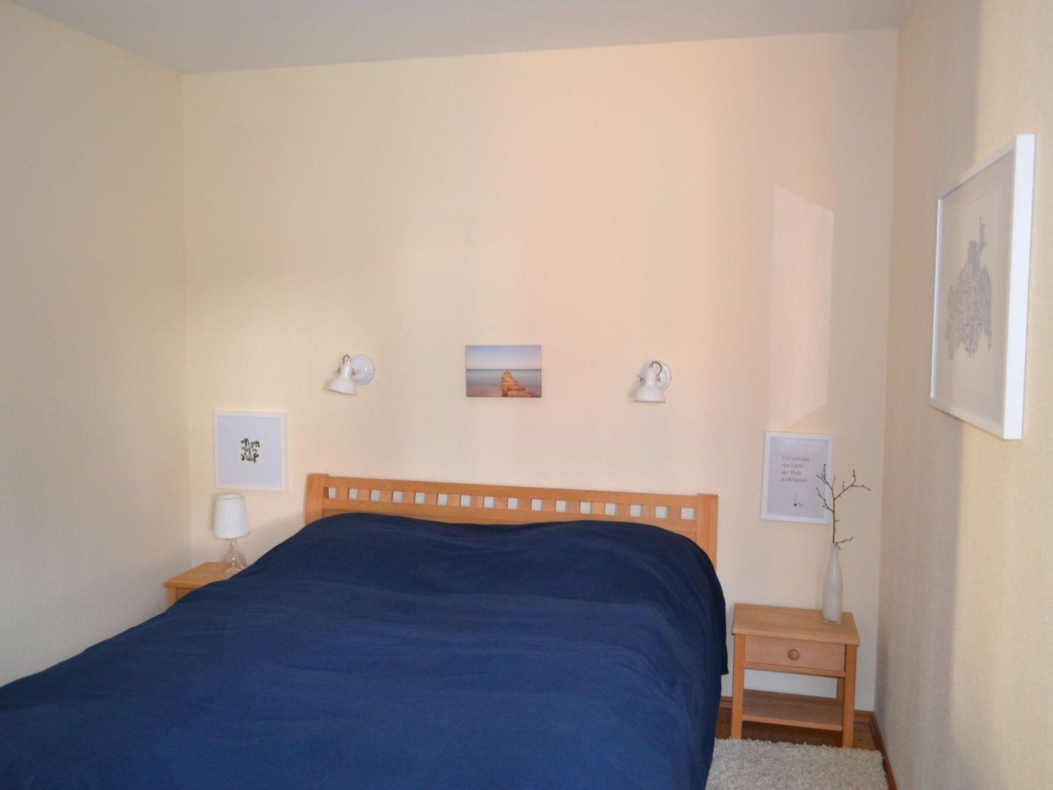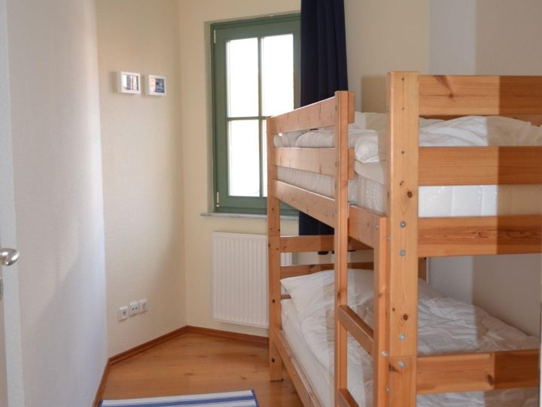 Das Schlafzimmer bietet ein Doppelbett (160 x 200 cm) zum Schlafen, das zweite Schlafzimmer ein Etagenbett.