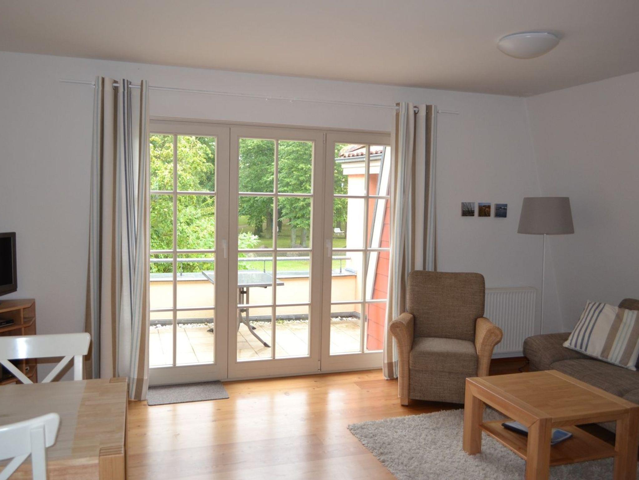 Im Wohnbereich befindet sich eine Sitzgruppe mit Couch und Sesseln, Hifi-Anlage und mit LCD-TV sowie ein Esstisch. Ein DVD-Player mit ca. 70 Filmen (auch für Kinder) gehört mit zur technischen Ausstattung dazu. Des Weiteren können Sie gerne die vielen Gesellschaftsspiele und Bücher nutzen.