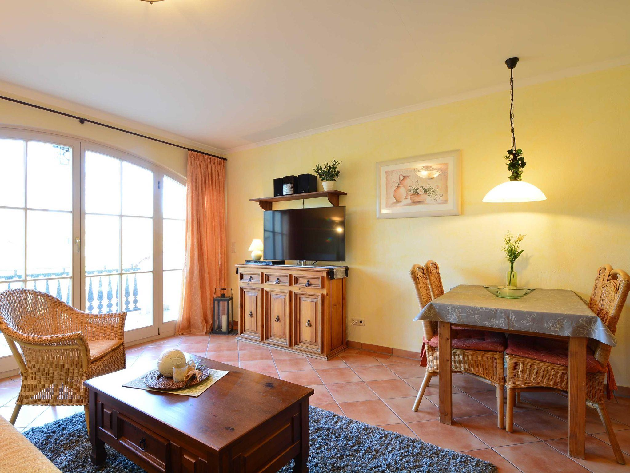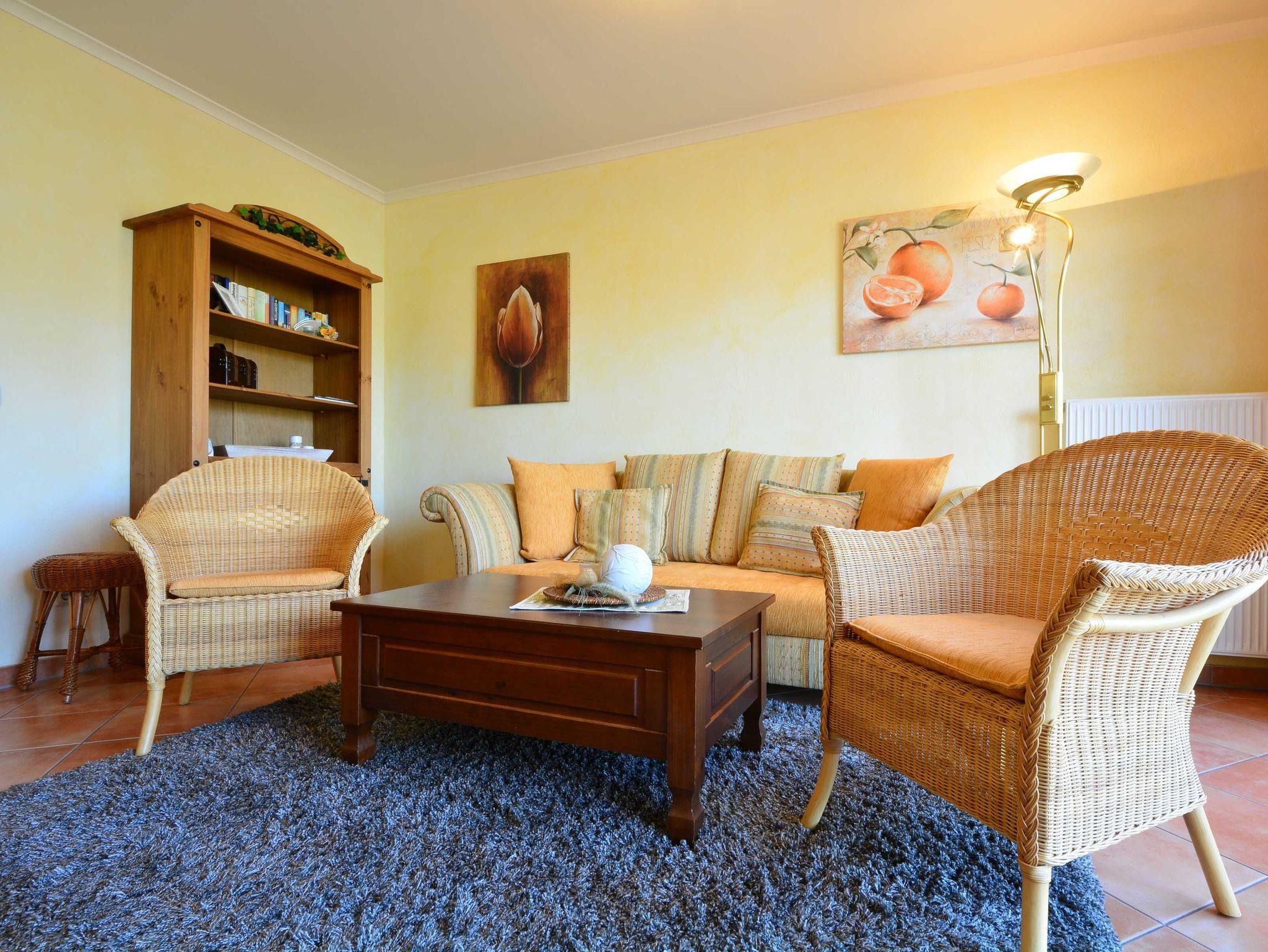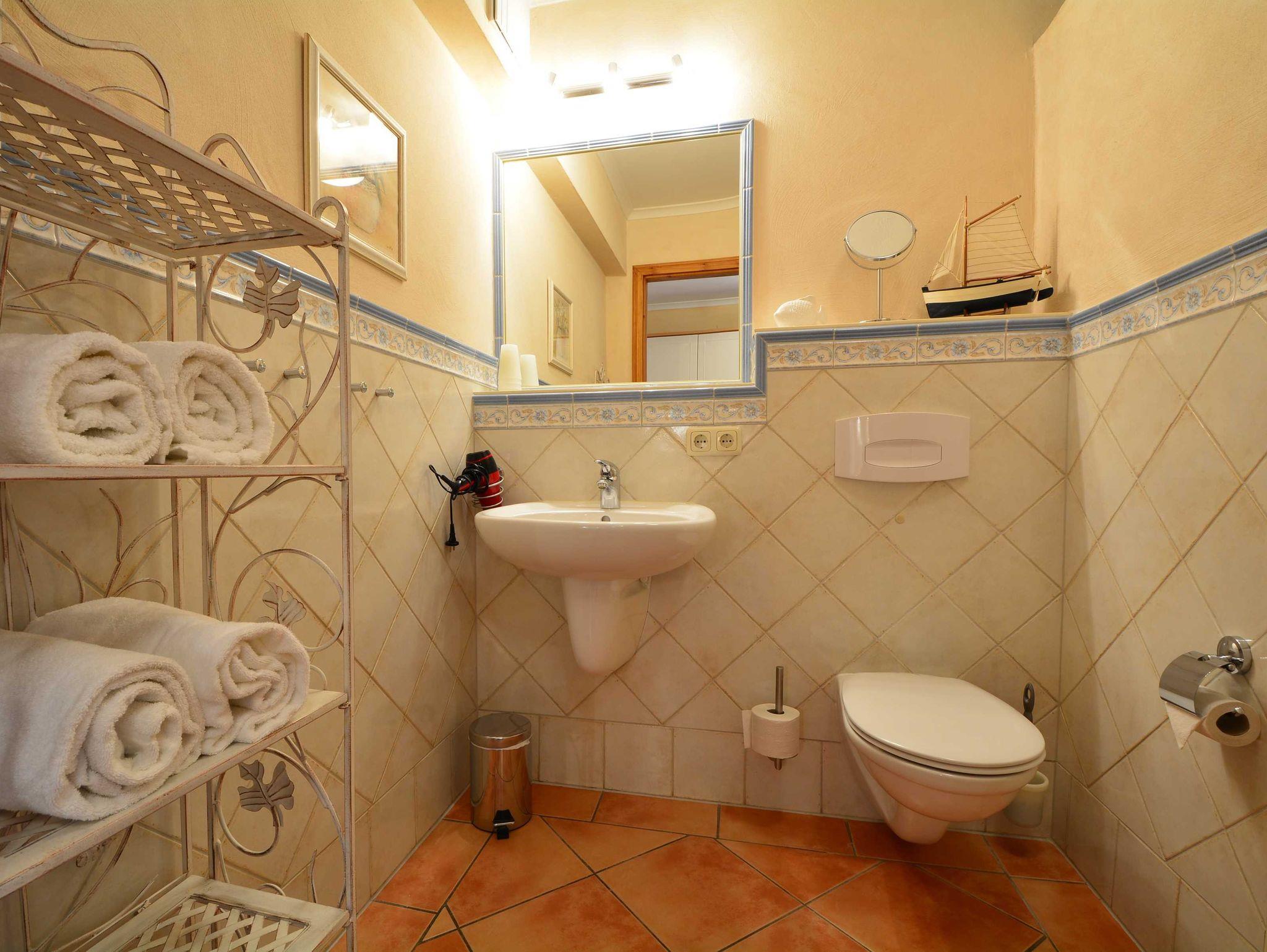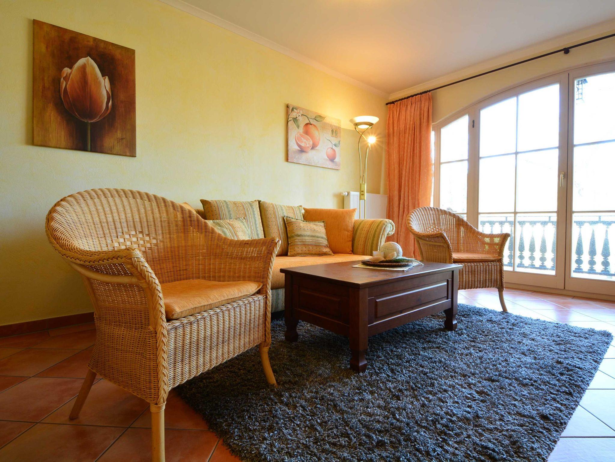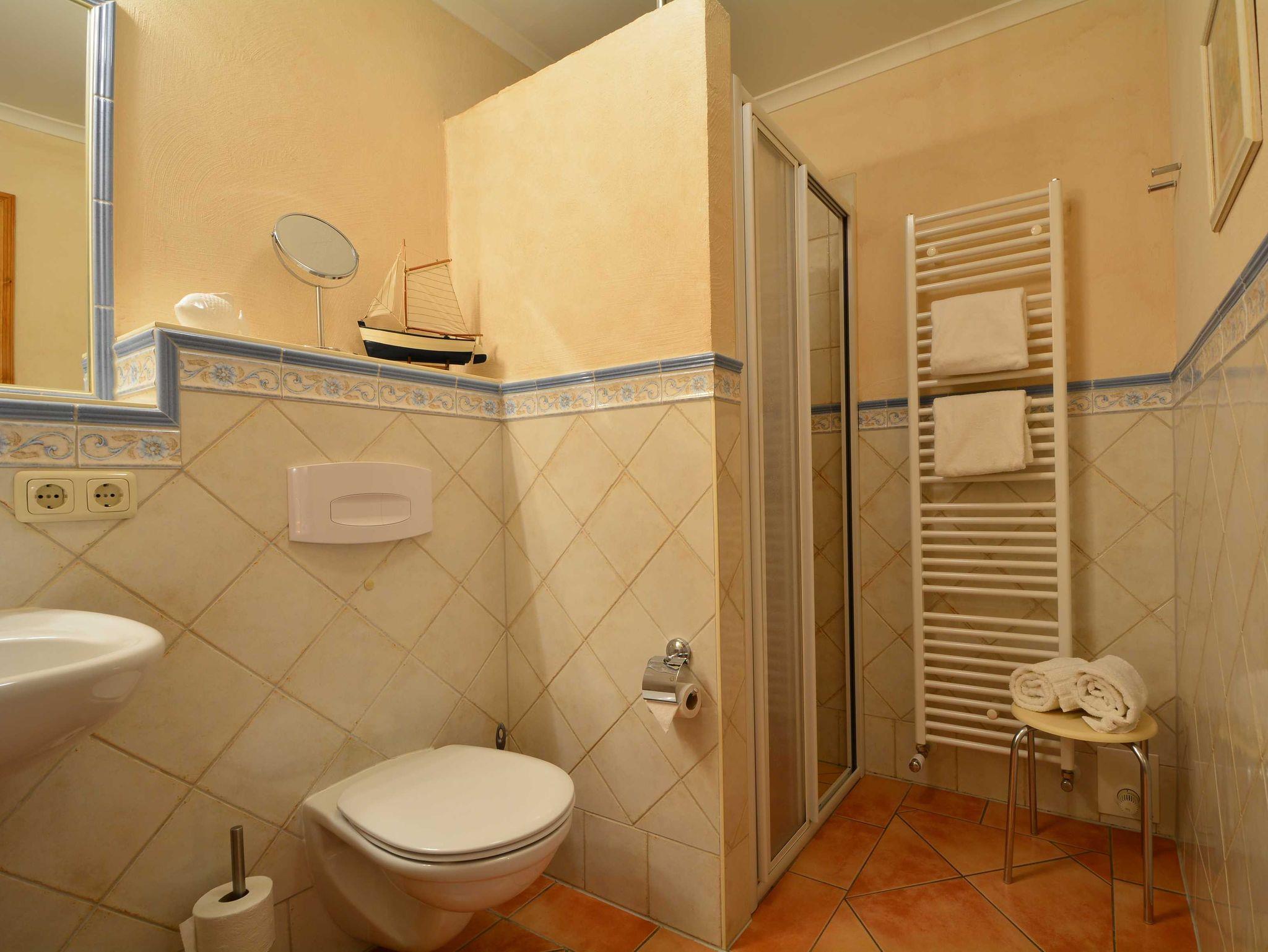 Herzlich willkommen in der Wohnung Nr. 34 in der Residenz Laguna. Die etwa 53 qm große 2-Raum-Ferienwohnung ist für 2 Personen optimal geeignet und befindet sich im Hinterhaus der Appartementanlage im 1. Obergeschoss. Es empfangen Sie eine offen gestaltete Küchenzeile und Essbereich sowie der mediterran gestaltete Wohnraum mit Zugang zum Westbalkon mit Blick auf den Kühlungsborner Stadtwald. Der Wohnraum ist ausgestattet mit einer Schlafcouch (für weitere 2 Personen), Flachbild-TV, Stereoanlage und einem Essplatz. Die Küchenzeile ist ausgestattet u.a. mit einer Mikrowelle, Geschirrspüler, Ceranfeld, Backofen, Kühlschrank mit Gefrierfach, Wasserkocher, Kaffeemaschine und Toaster. Das gemütliche Schlafzimmer mit einem großen Doppelbett, Kleiderschrank und 2. Flachbild-TV sowie das Bad mit Dusche und WC vervollständigen das Gesamtbild dieser Wohnung. Der gut organisierte Abstellraum beinhaltet viel Stauraum für Ihr Gepäck, Bügelbrett und Bügeleisen, Wäscheständer und Staubsauger.