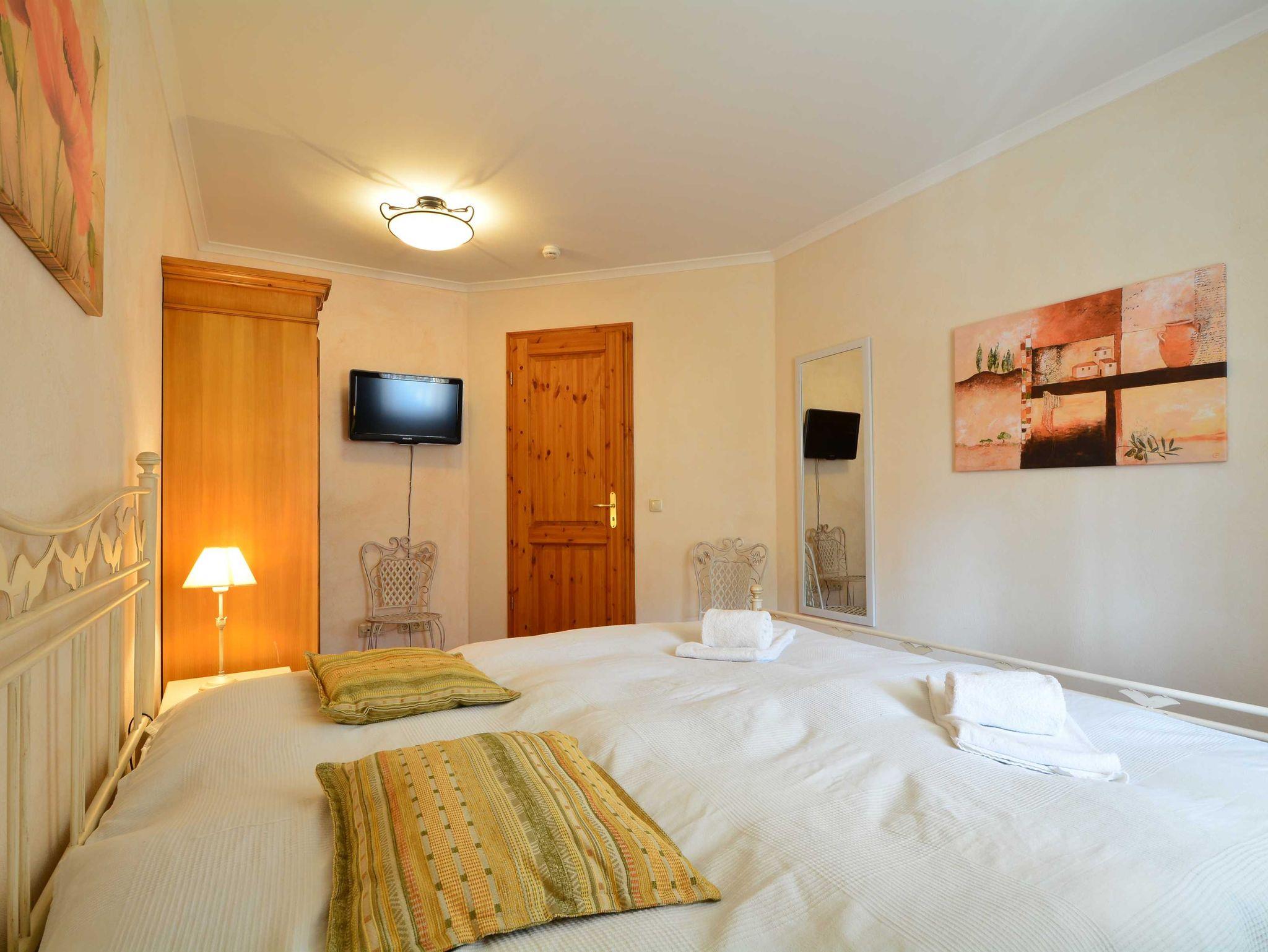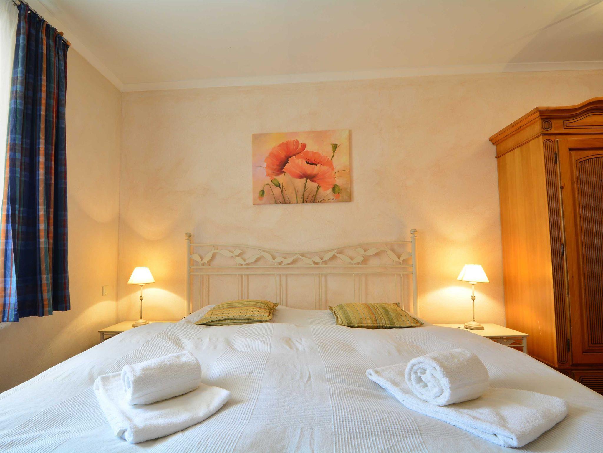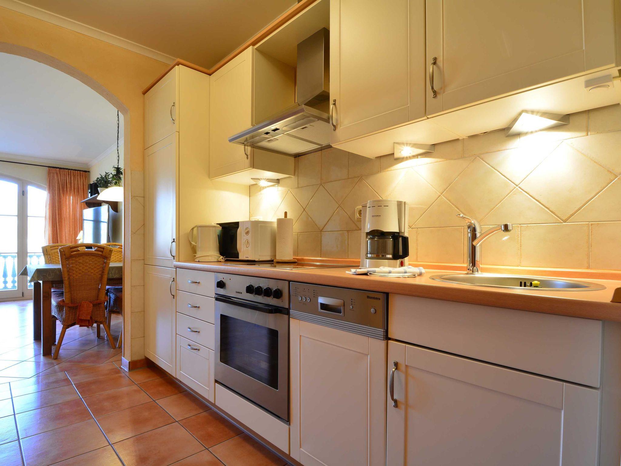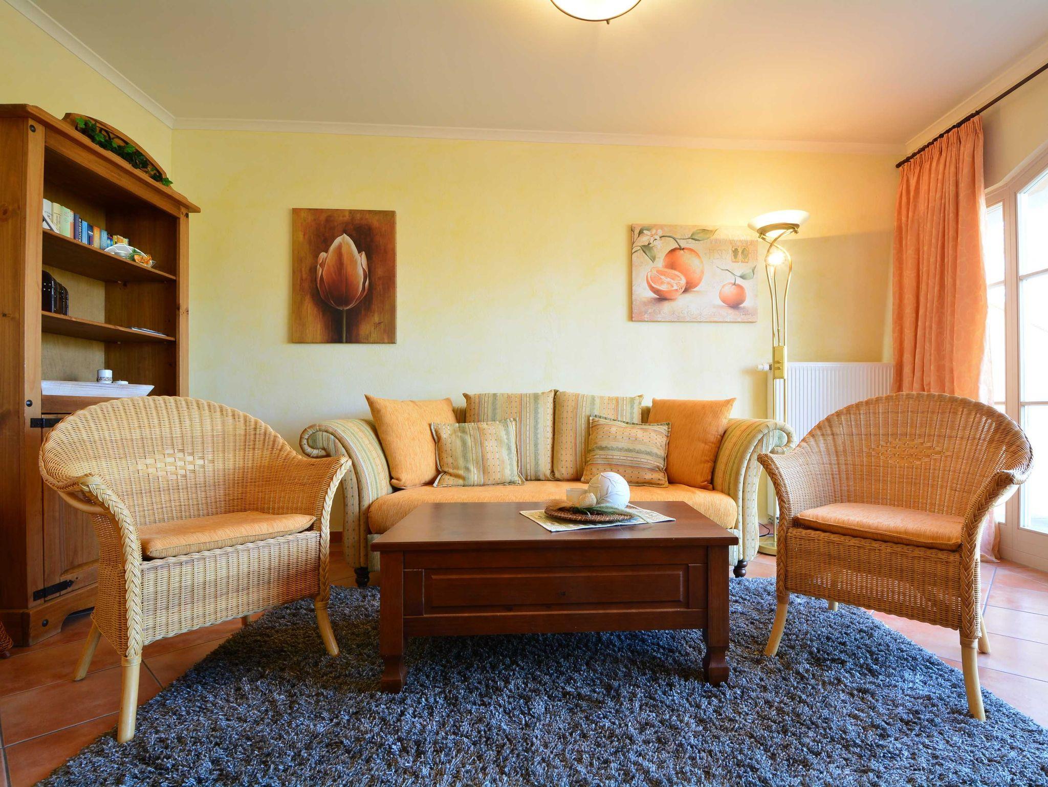 Herzlich willkommen in der Wohnung Nr. 34 in der Residenz Laguna. Die etwa 53 qm große 2-Raum-Ferienwohnung ist für 2 Personen optimal geeignet und befindet sich im Hinterhaus der Appartementanlage im 1. Obergeschoss. Es empfangen Sie eine offen gestaltete Küchenzeile und Essbereich sowie der mediterran gestaltete Wohnraum mit Zugang zum Westbalkon mit Blick auf den Kühlungsborner Stadtwald. Der Wohnraum ist ausgestattet mit einer Schlafcouch (für weitere 2 Personen), Flachbild-TV, Stereoanlage und einem Essplatz. Die Küchenzeile ist ausgestattet u.a. mit einer Mikrowelle, Geschirrspüler, Ceranfeld, Backofen, Kühlschrank mit Gefrierfach, Wasserkocher, Kaffeemaschine und Toaster. Das gemütliche Schlafzimmer mit einem großen Doppelbett, Kleiderschrank und 2. Flachbild-TV sowie das Bad mit Dusche und WC vervollständigen das Gesamtbild dieser Wohnung. Der gut organisierte Abstellraum beinhaltet viel Stauraum für Ihr Gepäck, Bügelbrett und Bügeleisen, Wäscheständer und Staubsauger.