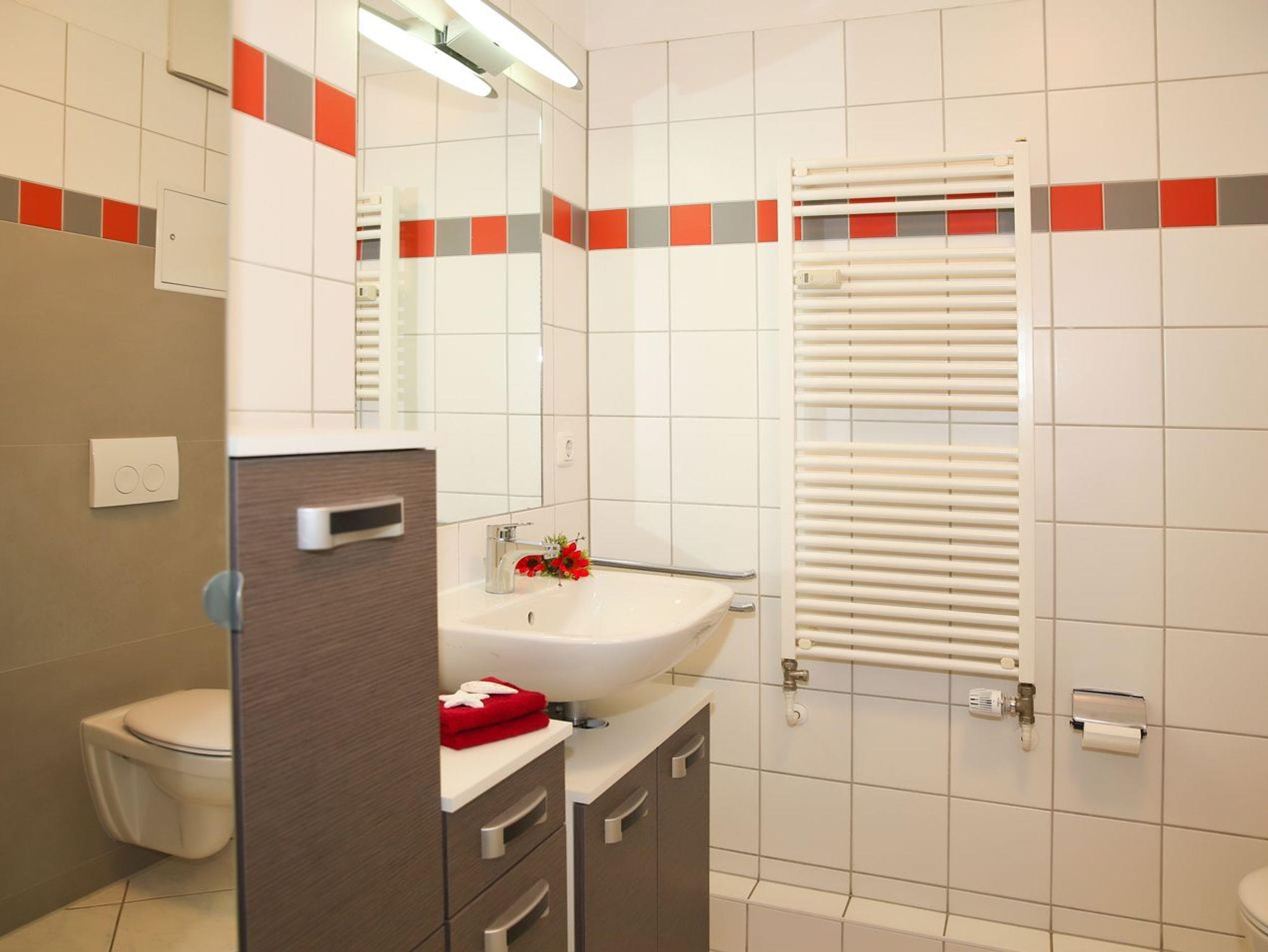 Das Bad/WC ist mit einer Dusche mit niedrigem Einstieg ausgestattet.