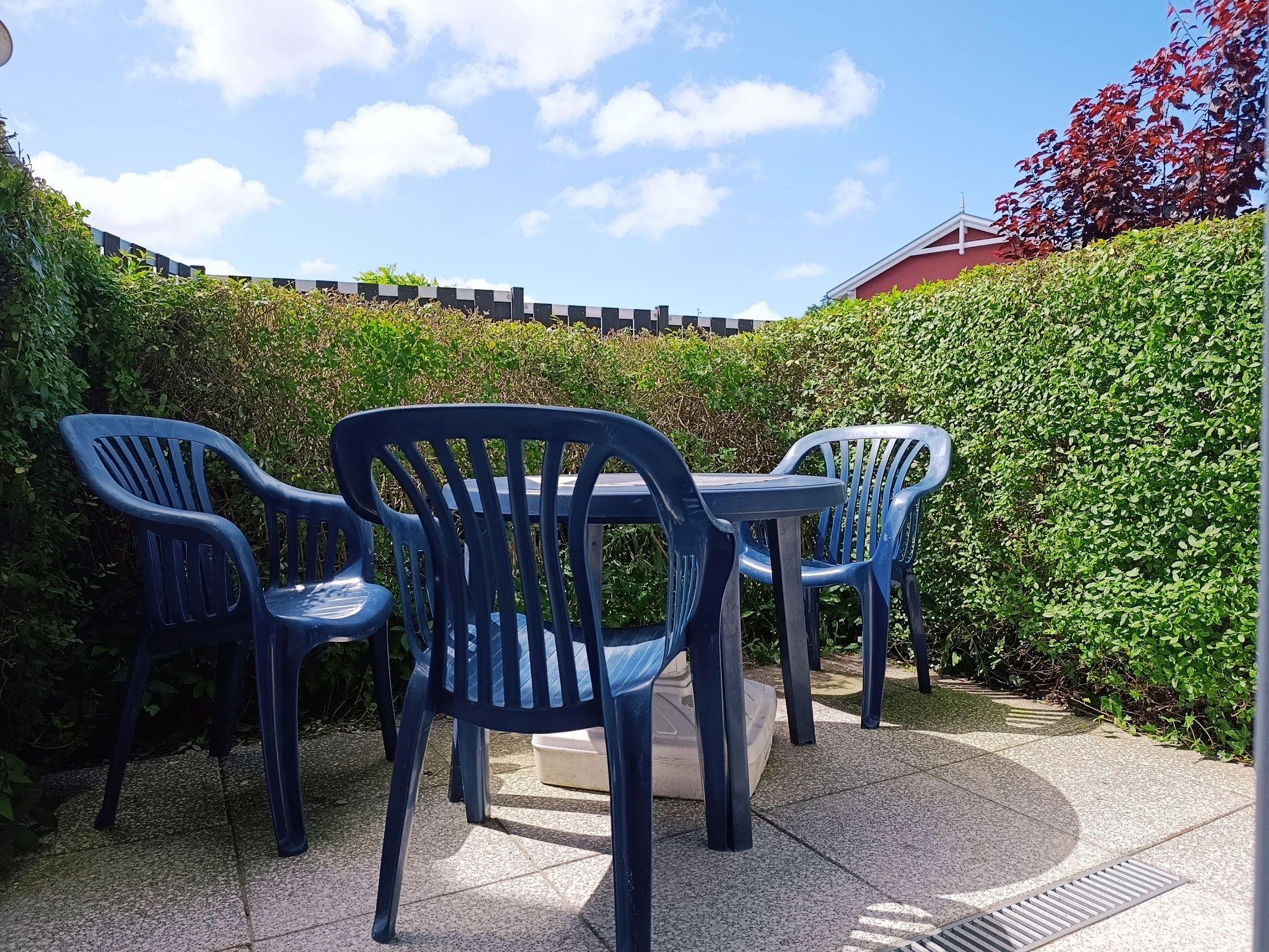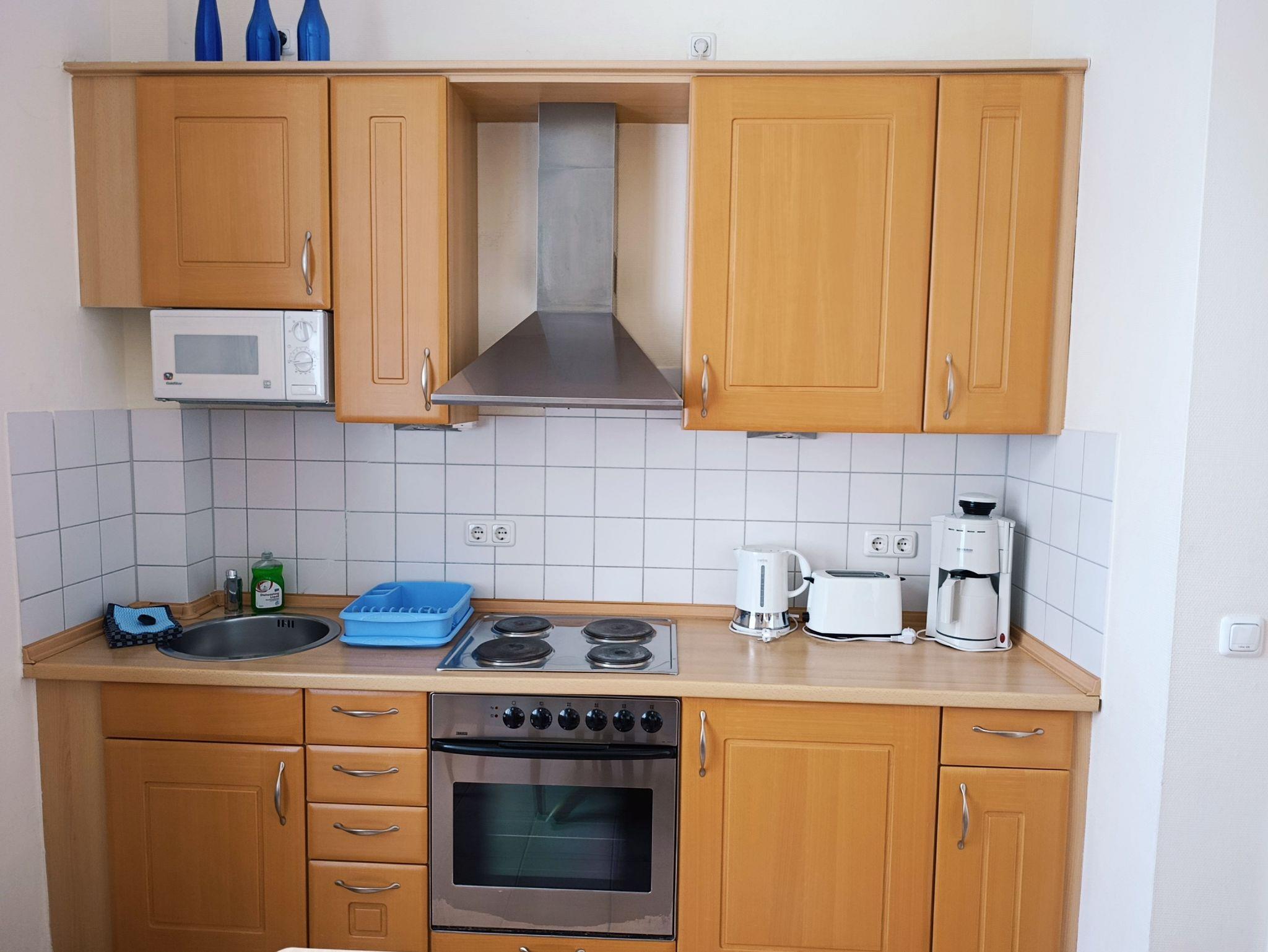 Nur 80 m vom Strand wohnen Sie in einer eingerichteten 2-Raum-Ferienwohnung. Die 40 qm große Wohnung liegt im Erdgeschoss. Das Wohnzimmer ist mit einer Schlafcouch, Couchtisch, Anrichte, Regal, Kabel-TV, Radio, Essbereich (Esstisch und 4 Stühle) und Küchenzeile ausgestattet. Die Küchenzeile wurde ausgestattet mit Mikrowelle, Kühlschrank, Kaffeemaschine, Zwei-Platten-Kochfeld, Toaster und Wasserkocher. Im nebengelegenden Schlafzimmer steht ein Doppelbett und ein Kleiderschrank. Das Bad mit Dusche und WC komplettiert die Wohnung. Die kleine Terrasse geht zur SüdWestseite.
