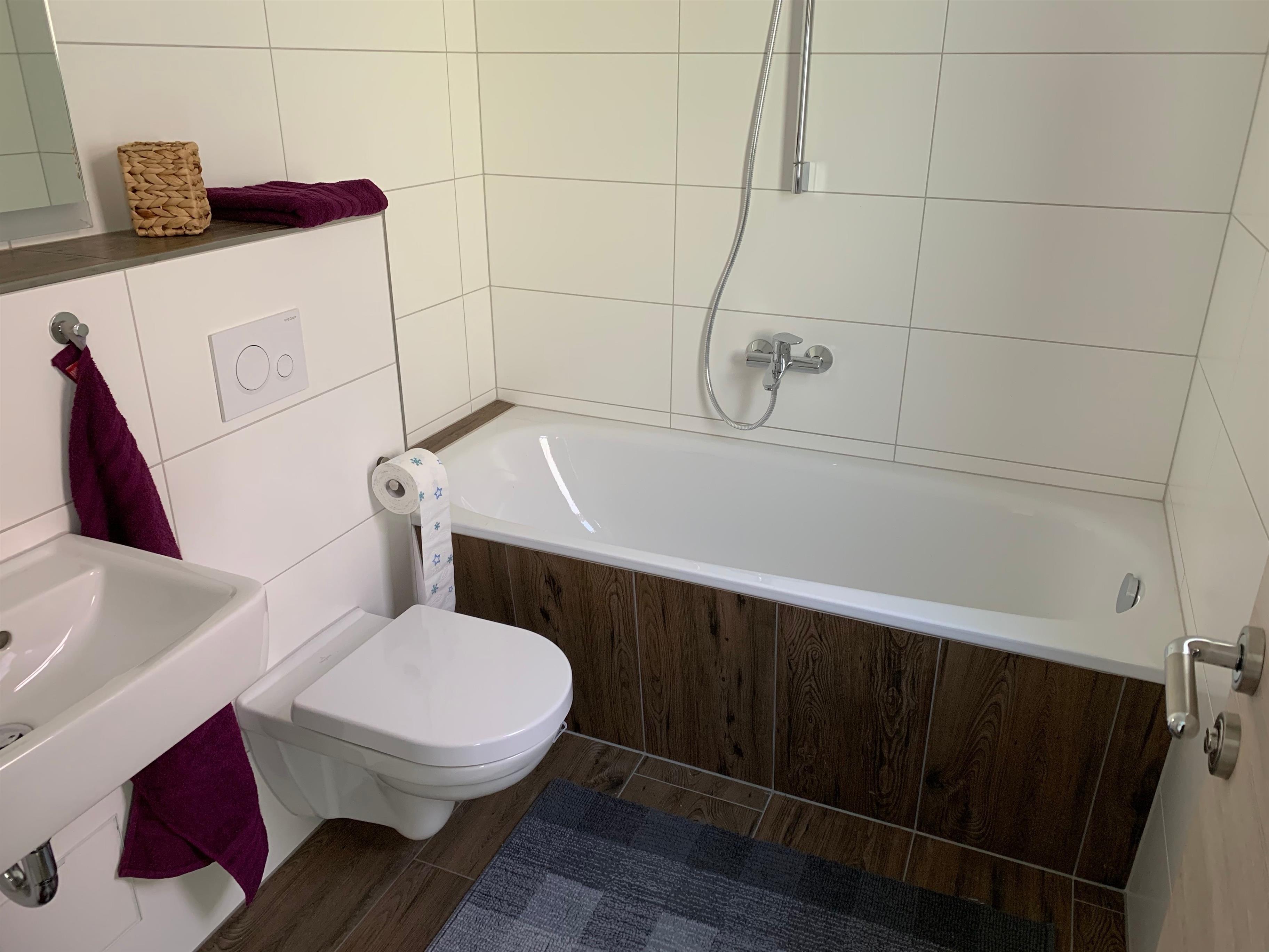 Die Wohnung verfügt über 2 Schlafräume, davon ein Masterschlafraum mit Doppelbett im Erdgeschoß und angrenzendem Bad mit Badewanne und Duschmöglichkeit.