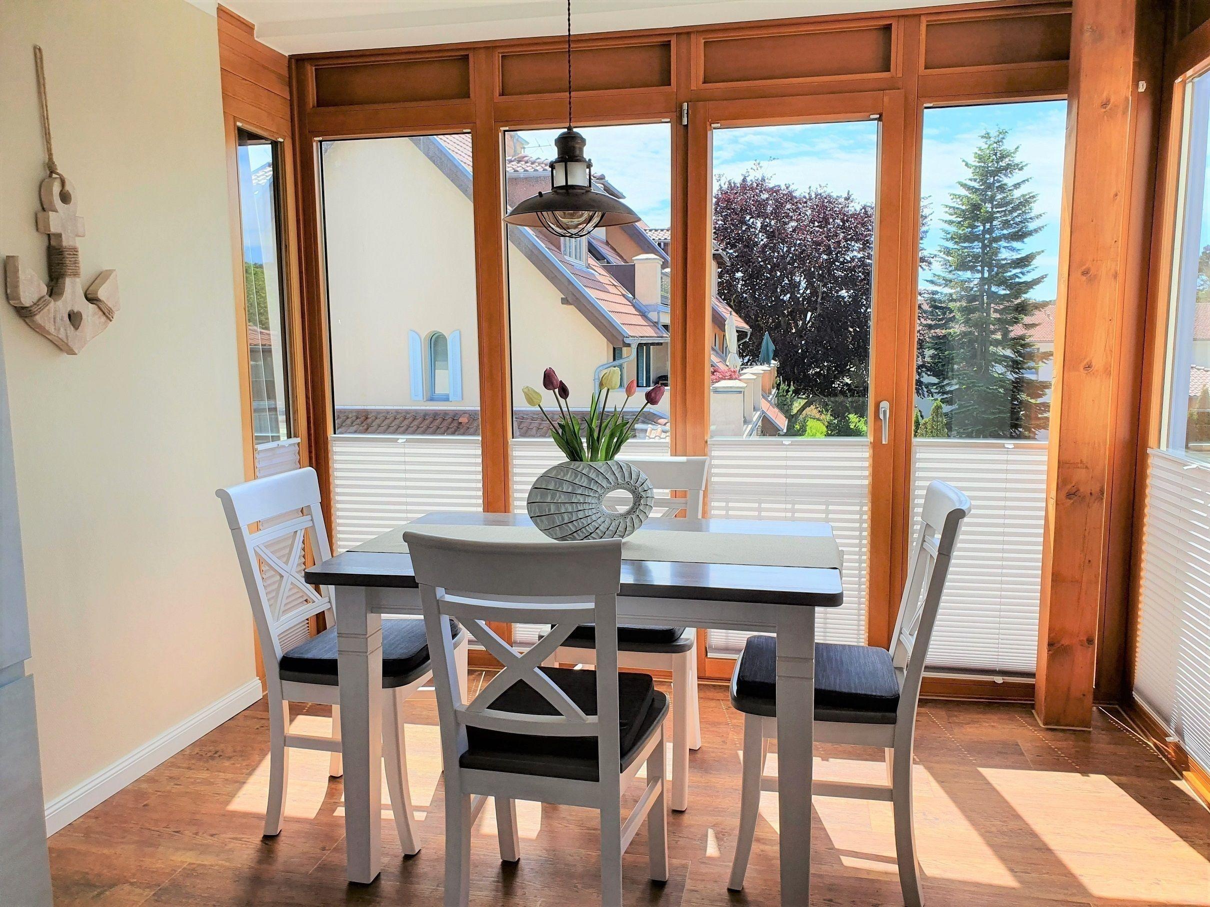 Nebst großer, gemütlicher Couch, welche sich mit wenigen Handgriffen in eine Schlafgelegenheit umwandeln lässt und modernem Flatscreen-TV mit Smart-TV, befindet sich hier ein großzügiger Essbereich mit Esstisch und Platz für bis zu 4 Personen in unmittelbarer Nähe zur modernen, integrierten Küche. Diese bietet mit Backofen, Geschirrspüler, Ceran-Kochfeld, Wasserkocher, Kaffeemaschine, Toaster und Mikrowelle alles, was Sie für die Selbstversorgung im Urlaub brauchen.