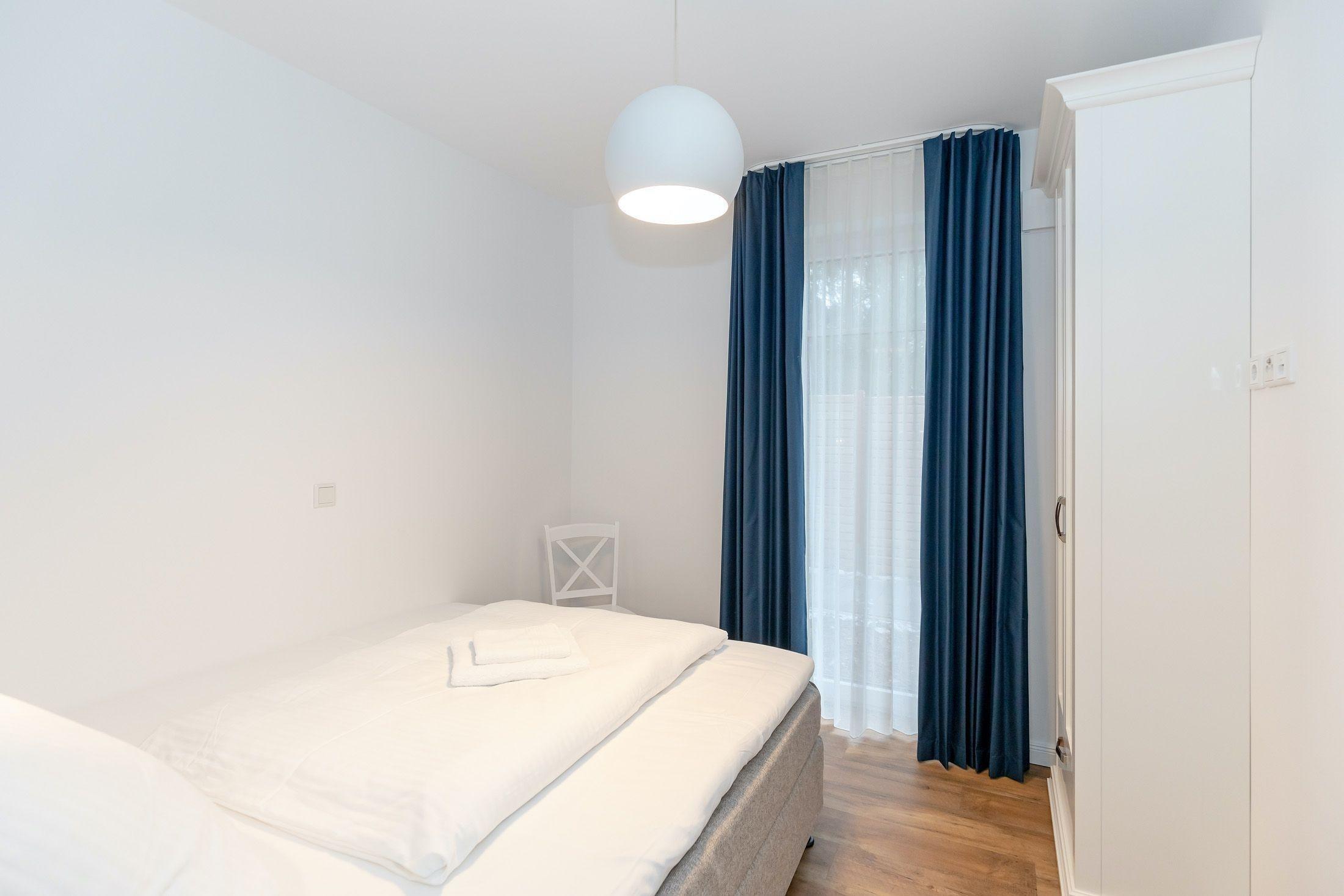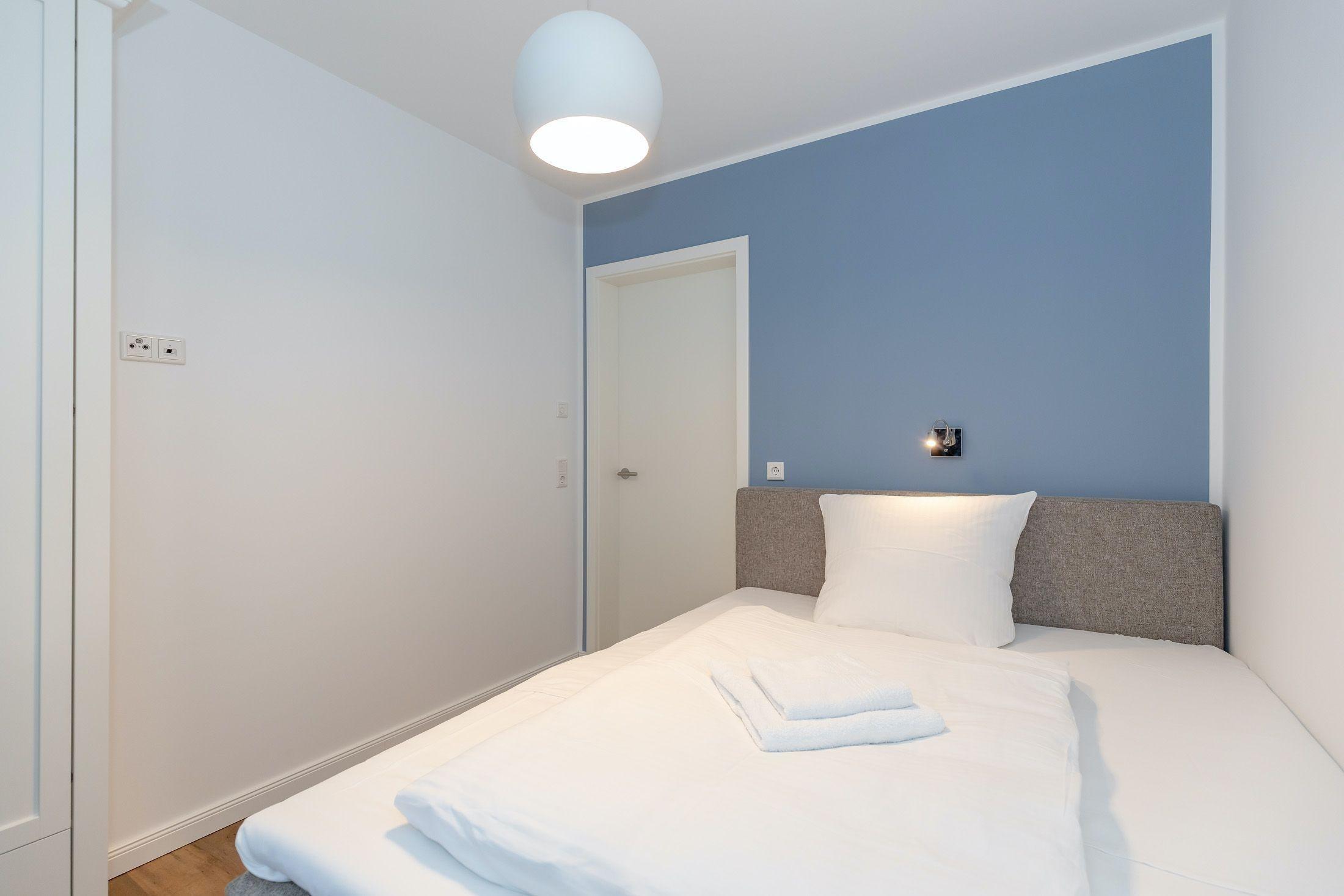 Das zweite Schlafzimmer ist ebenfalls mit einem Boxspringbett (1,60m Breite), für die dritte Person, sowie einem kleinen Kleiderschrank ausgestattet. In dem breiten Bett können auch bequem zwei Kinder oder zwei Jugendliche schlafen.