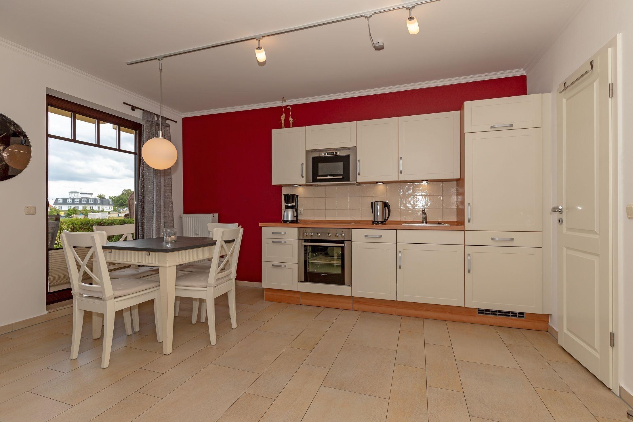 An den Wohnbereich grenzt der Esstisch mit Platz für drei Personen. Genießen Sie ein gemütliches Frühstück mit der ganzen Familie oder am Abend das perfekte Dinner...Die Küche ist mit einem Ceran-Kochfeld, einem Backofen, einem Geschirrspüler, einer Mikrowelle und einem Kühlschrank mit Gefrierfach ausgestattet. Des Weiteren gehören eine Kaffeemaschine, ein Wasserkocher und ein Toaster zum Inventar. Selbstverständlich finden Sie auch ausreichend Geschirr, Besteck und weitere Küchenutensilien.