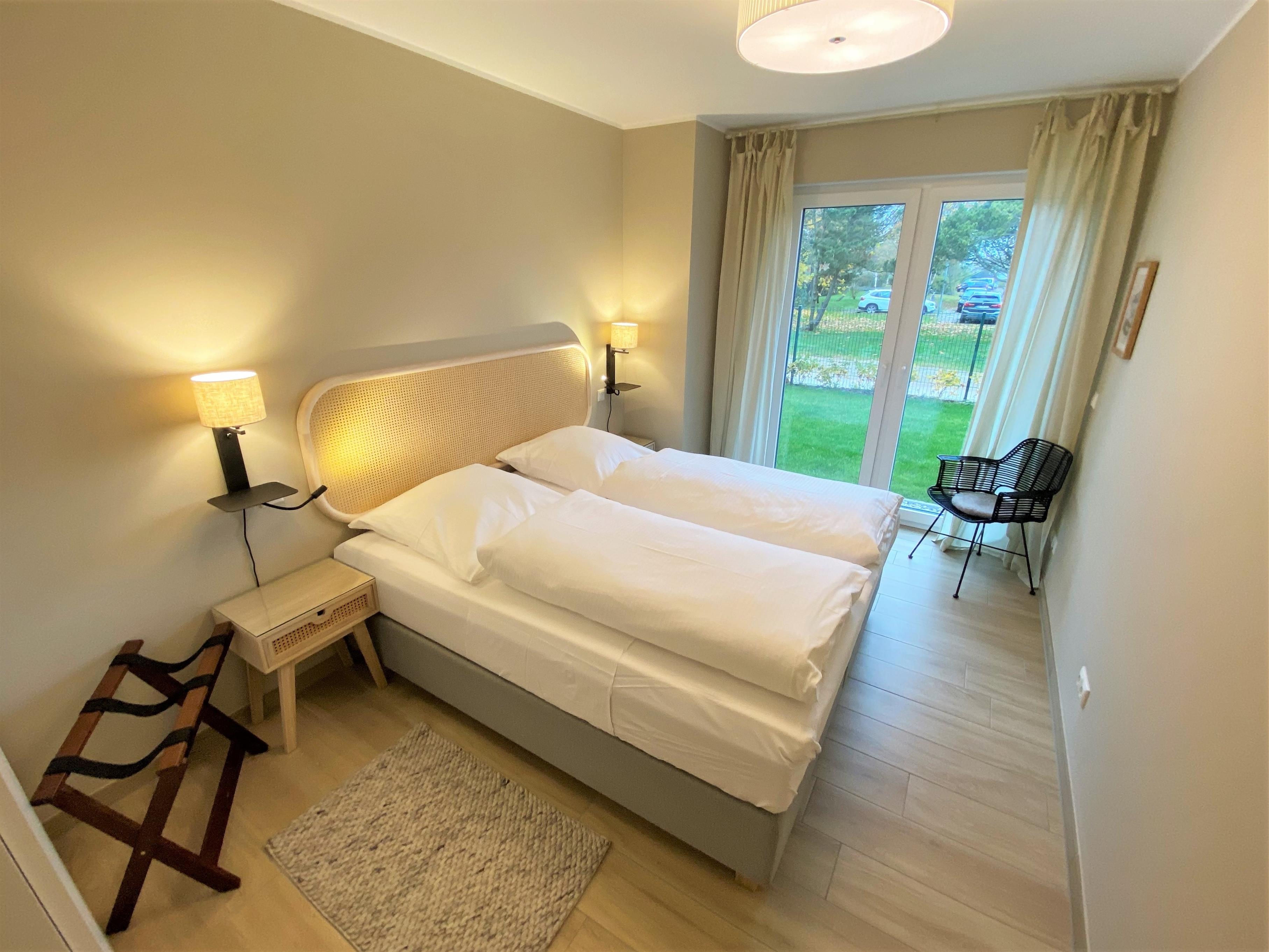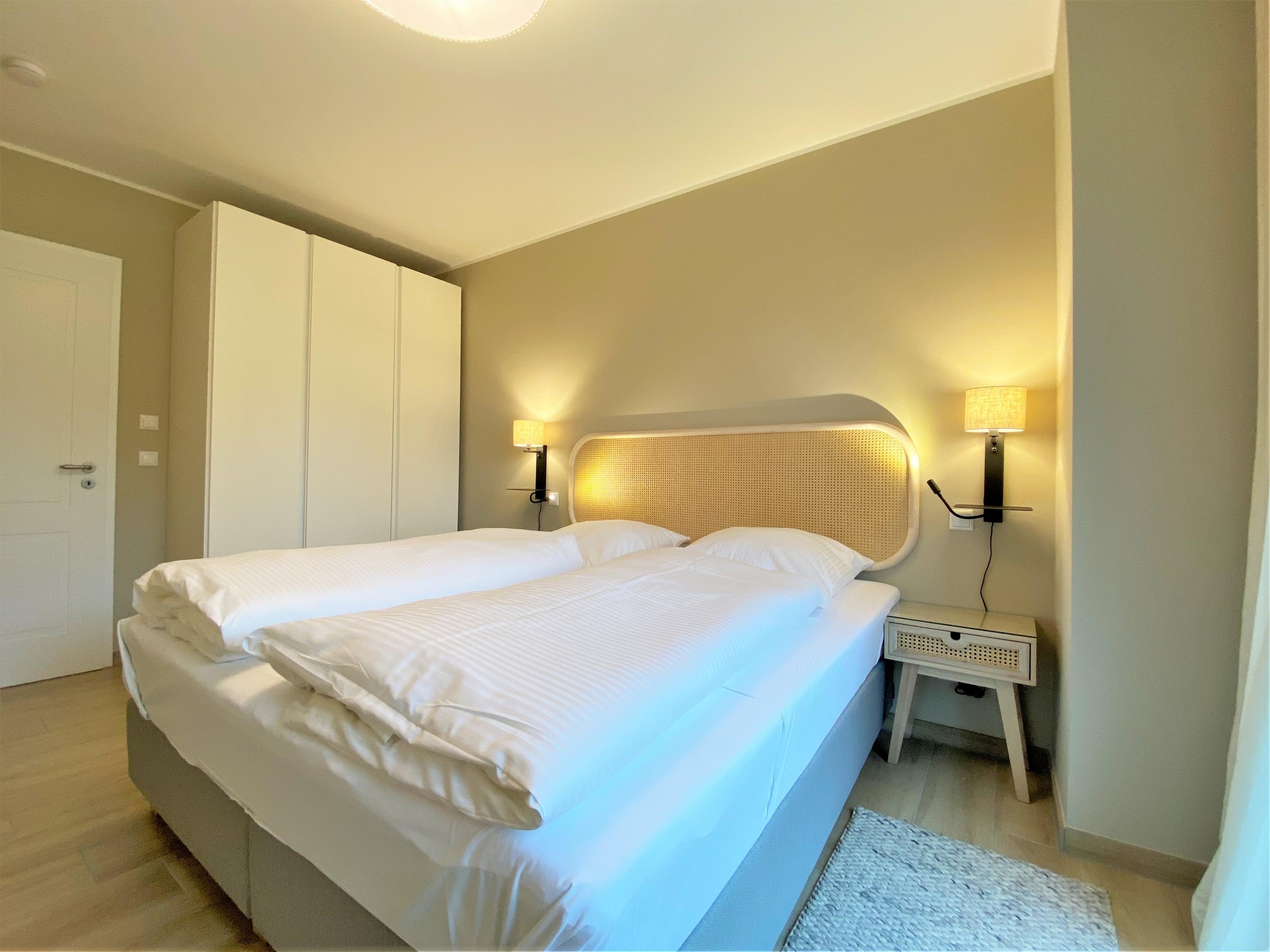Die geschmackvoll eingerichteten Schlafzimmer bieten Ihnen gemütliche Boxspringbetten und jeweils einen geräumigen Kleiderschrank mit viel Platz für die Urlaubsgarderobe. Das erste Schlafzimmer verfügt über ein Doppelbett (1,80x2,00m mit einer durchgehenden Matratze), das zweite Schlafzimmer über 2 einzelne Boxspringbetten (0,90x2,00m), welche bei Bedarf zusammengestellt werden können.