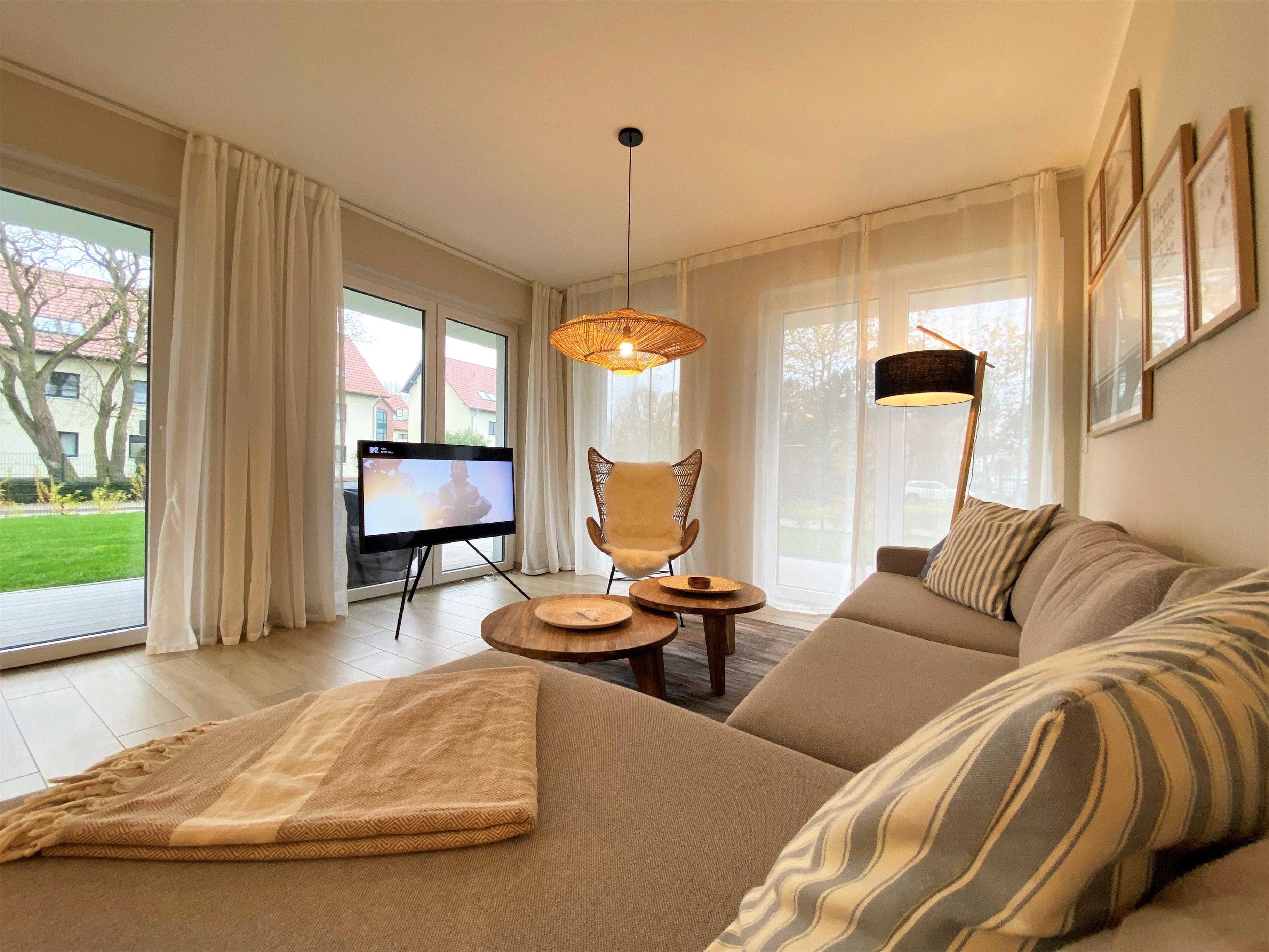 Moderne Ferienwohnung mit Terrasse und privater Sauna direkt am Strand in Kühlungsborn.