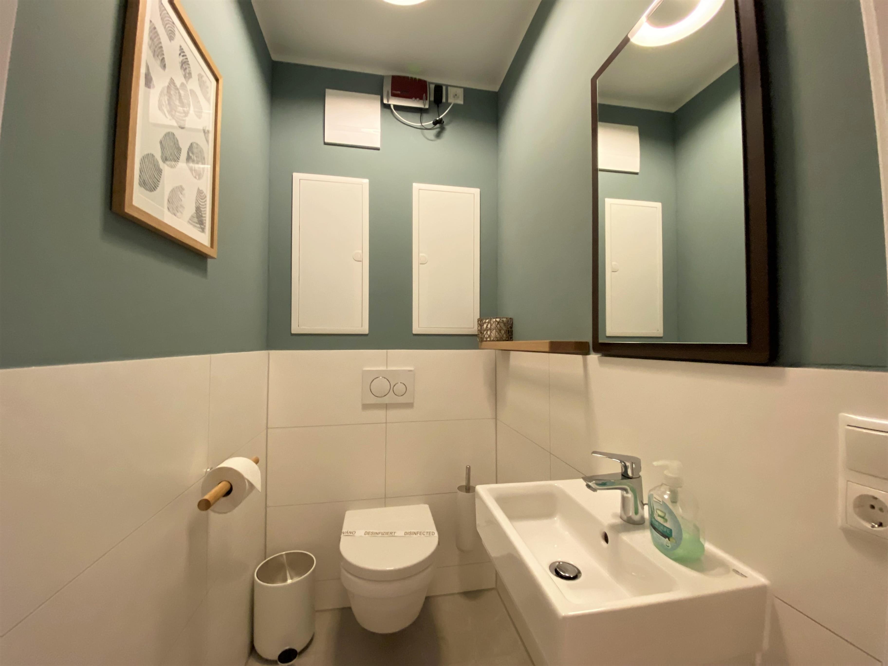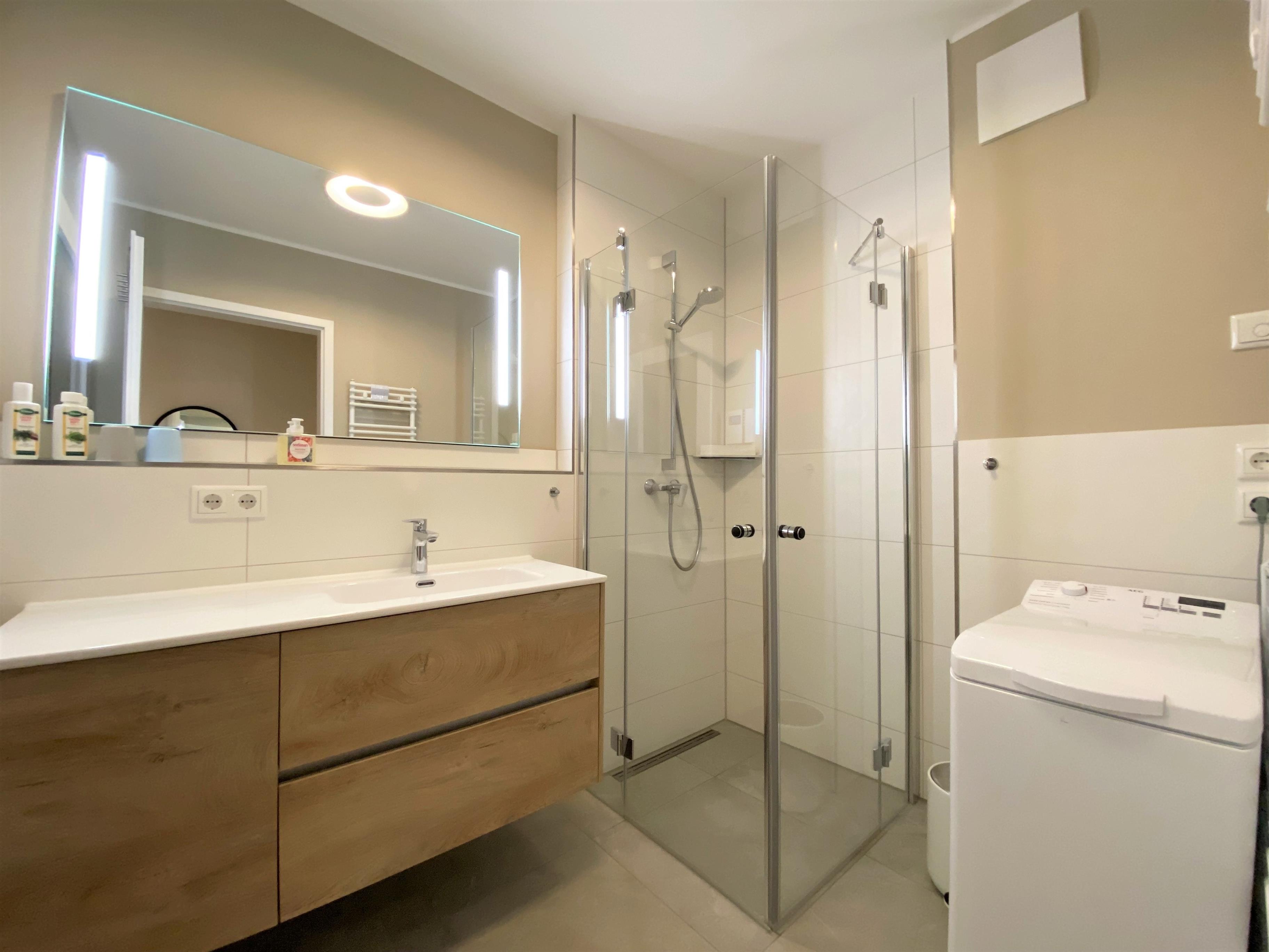 Das moderne Duschbad verfügt über eine ebenerdige Dusche, einen großen Waschtisch, Haarfön und einer Toplader-Waschmaschine. Über das Badezimmer gelangen Sie in Ihre eigene Privatsauna, welche Ihnen uneingeschränkt zur Verfügung steht. Das WC steht separiert zur Verfügung, was gerade Familien und zusammenreisende Freunde sehr zu schätzen wissen.