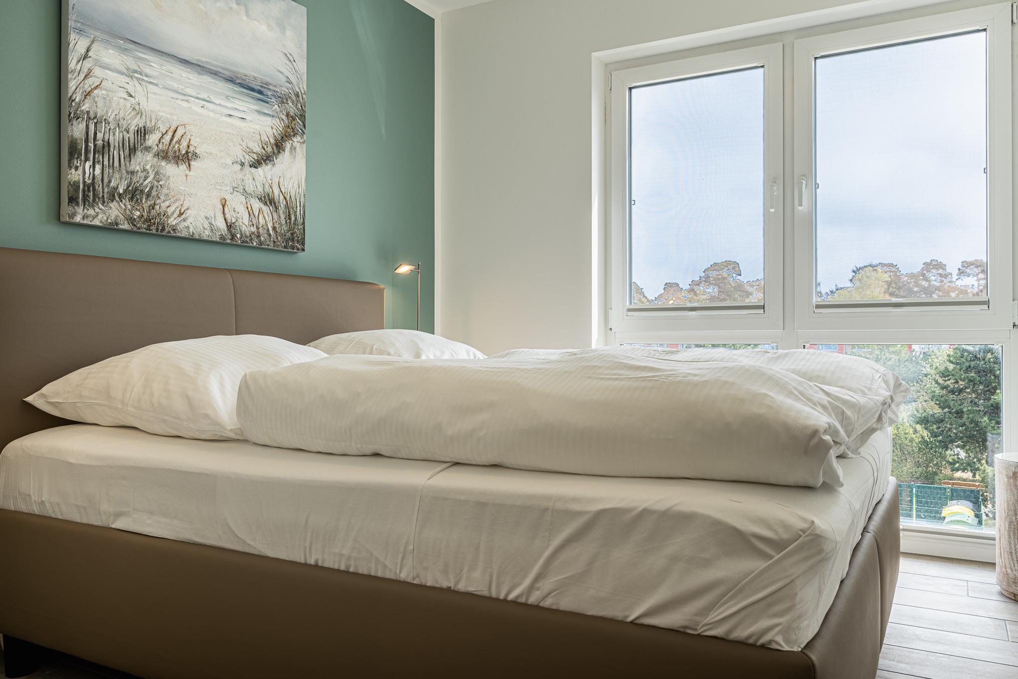 Das separate Schlafzimmer sorgt mit einem gemütlichen Boxspringbett (1,60x2,00m, durchgängiger Topper) für erholsamen Schlaf und süße Träume. Für die mitgebrachte Urlaubsgarderobe steht Ihnen ein Kleiderschrank zur Verfügung.