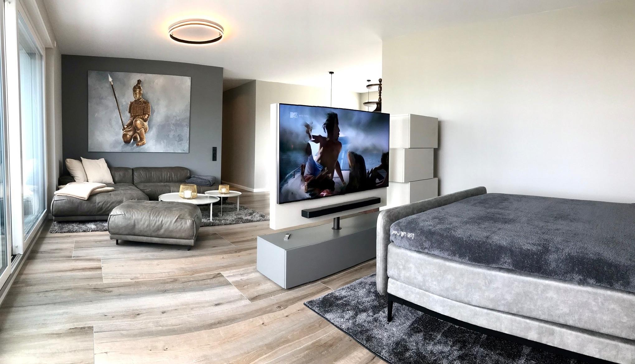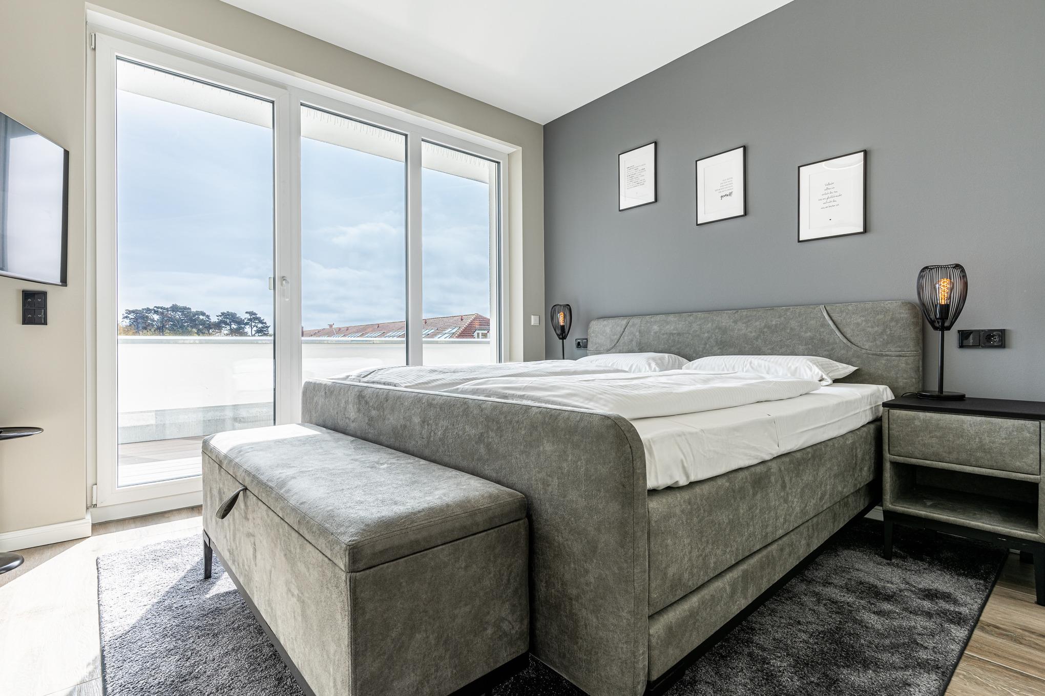 Auch im Schlafzimmer steht ein weiterer Flatscreen inkl. Smart-TV zur Unterhaltung bereit.
