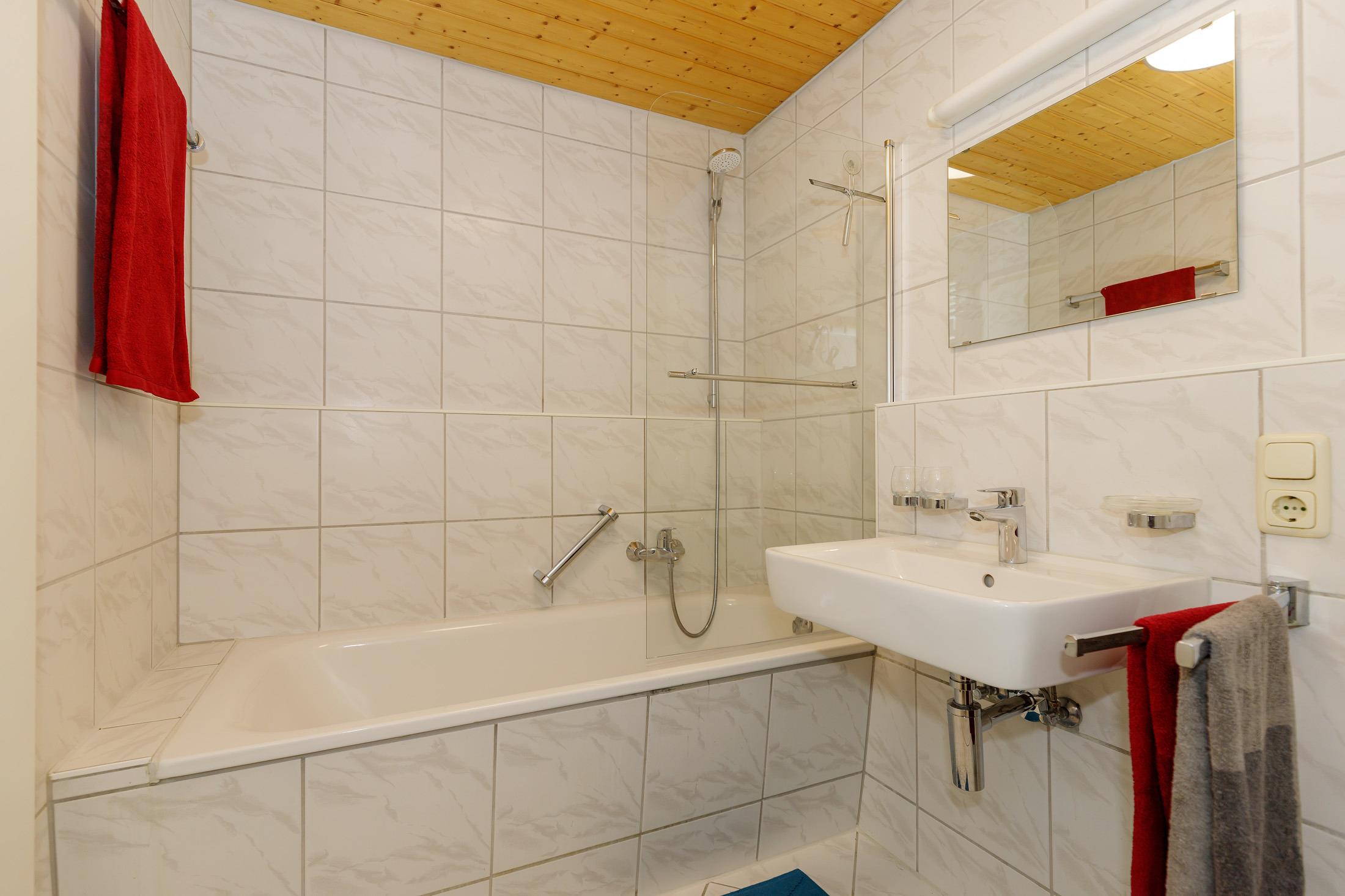 Über eine Treppe gelangen Sie in die beiden oberen zur Nord- und Südseite gelegenen Schlafzimmer, welche jeweils mit einem gemütlichen Polsterbett (1,60x2,00m, durchgehende Matratze), Verdunklungsrollos und einer Kommode und Kleiderschränken ausgestattet sind. Vom Nordschlafzimmer eröffnet sich eingeschränkter Blick zur Ostsee, während das Südschlafzimmer über eine ausziehbare Polstercouch verfügt, die eine weitere Schlafmöglichkeit für eine 5. Person bietet. Im oberen Bereich befindet sich auch das Vollbad mit Badewanne/WC und Haartrockner.