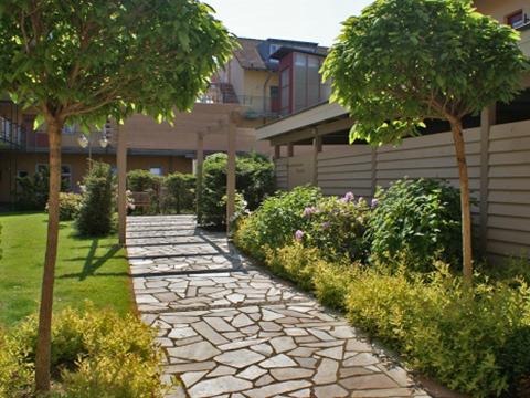 Unsere Anlage besteht aus 6 Häusern, die miteinander verbunden sind. Im Erdgeschoss befinden sich einige Ladengeschäfte, Cafés und Restaurants sowie behindertenfreundliche Ferienwohnungen.