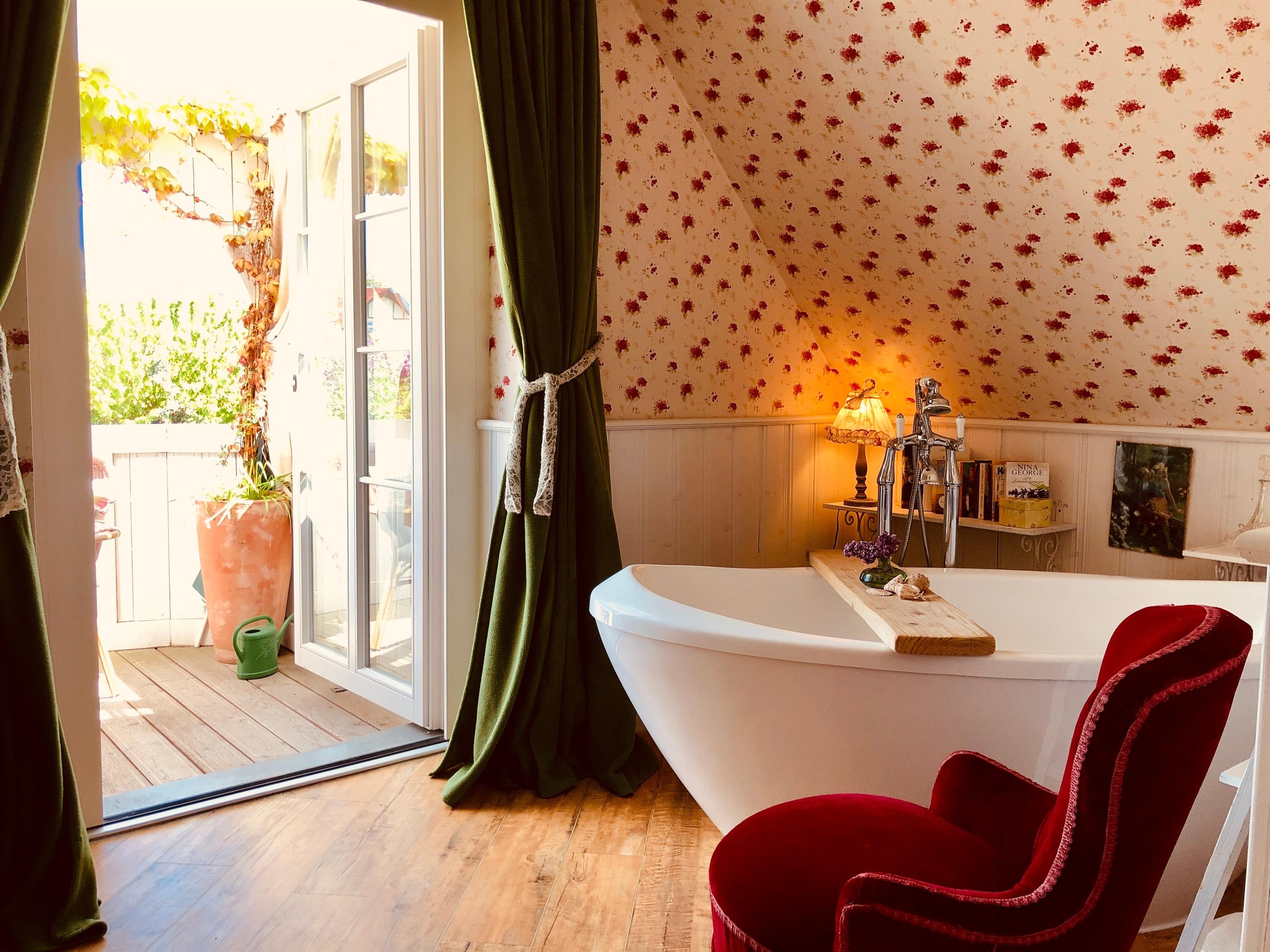 Romantische Ferienwohnung in Kühlungsborn mit freistehender Badewanne, Dachterrasse und Garten-SPA.