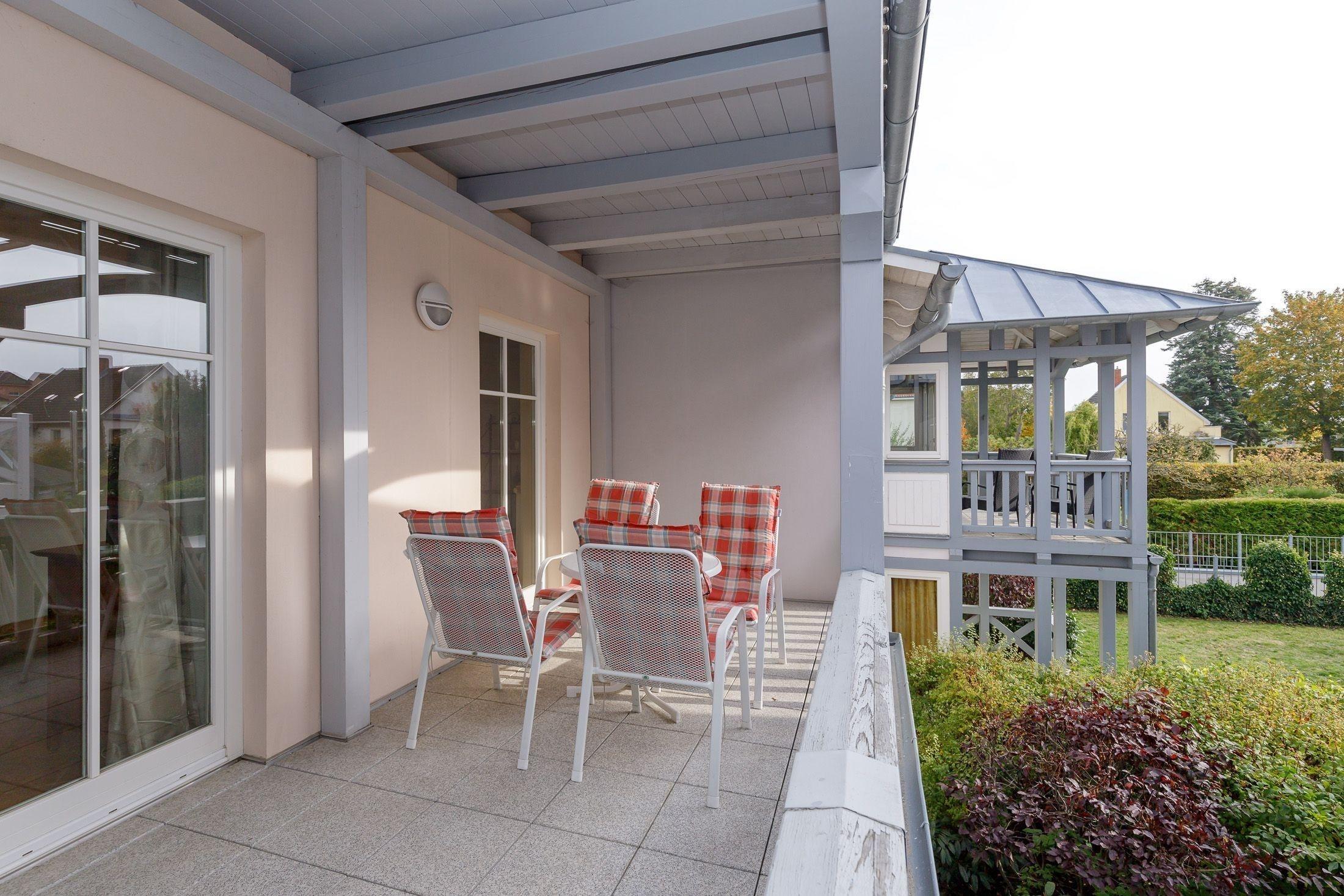 Die Wohnung verfügt über einen großen Südseitenbalkon. Dank der Überdachung, kann dieser Balkon auch bei schlechteren Witterungsbedingungen genutzt werden. Hier können Sie den Tag bei einem Glas Rotwein mit einem Gespräch oder einem schönen Buch ausklingen lassen.
