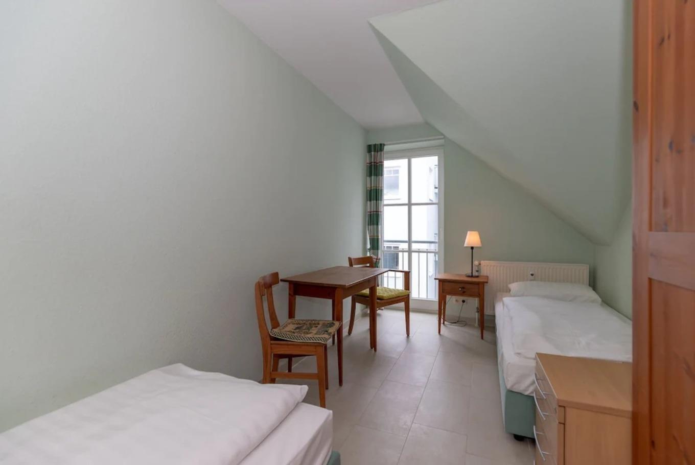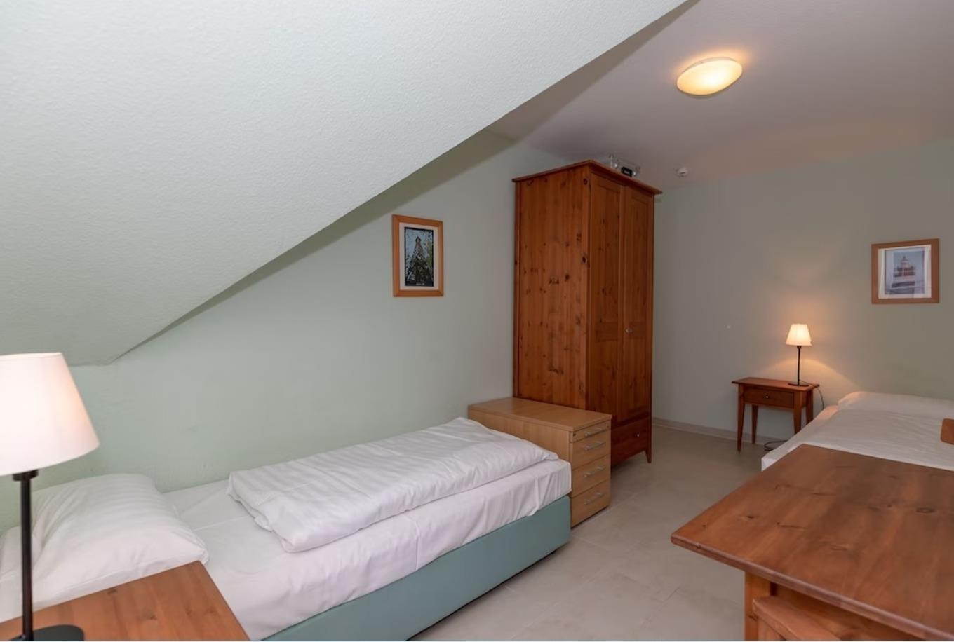 Das separate und zusätzliche 2. Schlafzimmer verfügt ebenfalls über 2 getrennte Einzelbetten (80 cm x 200 cm), Nachttische mit Nachttischlampen, einen geräumigen Kleiderschrank sowie einen kleinen Tisch mit 2 Stühlen.
