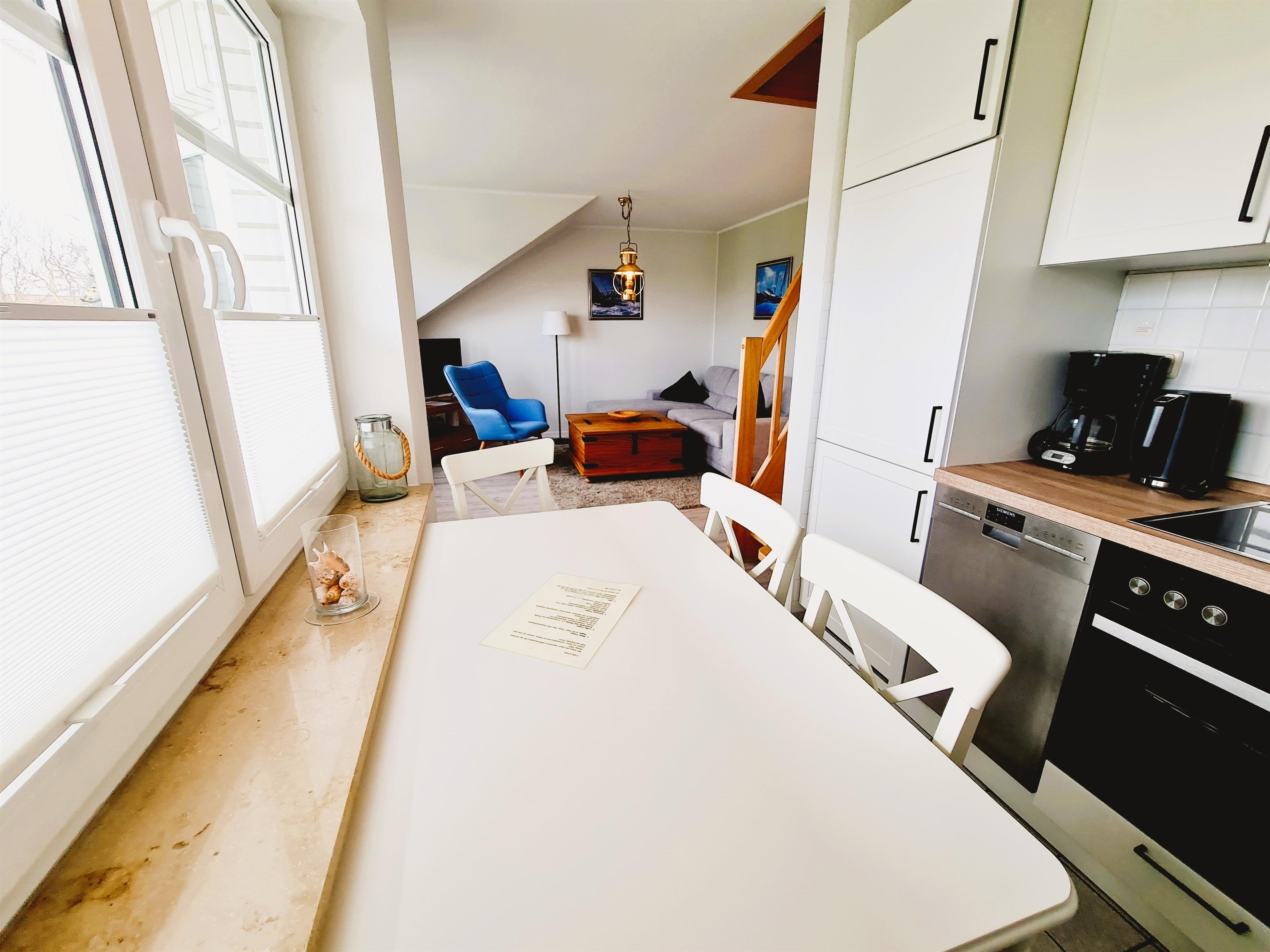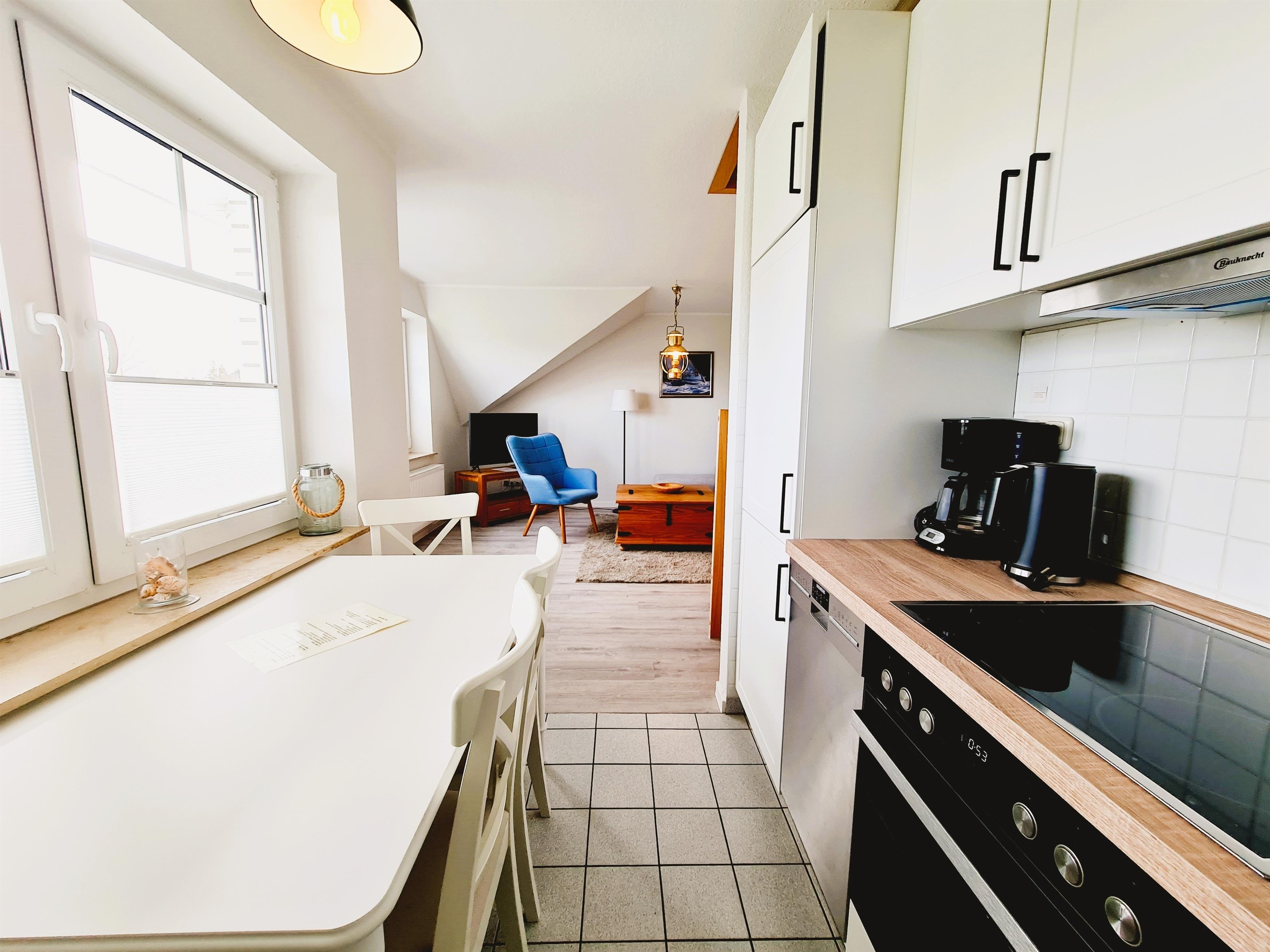 - eine offene Küche mit gemütlichem Essplatz für 4 Personen