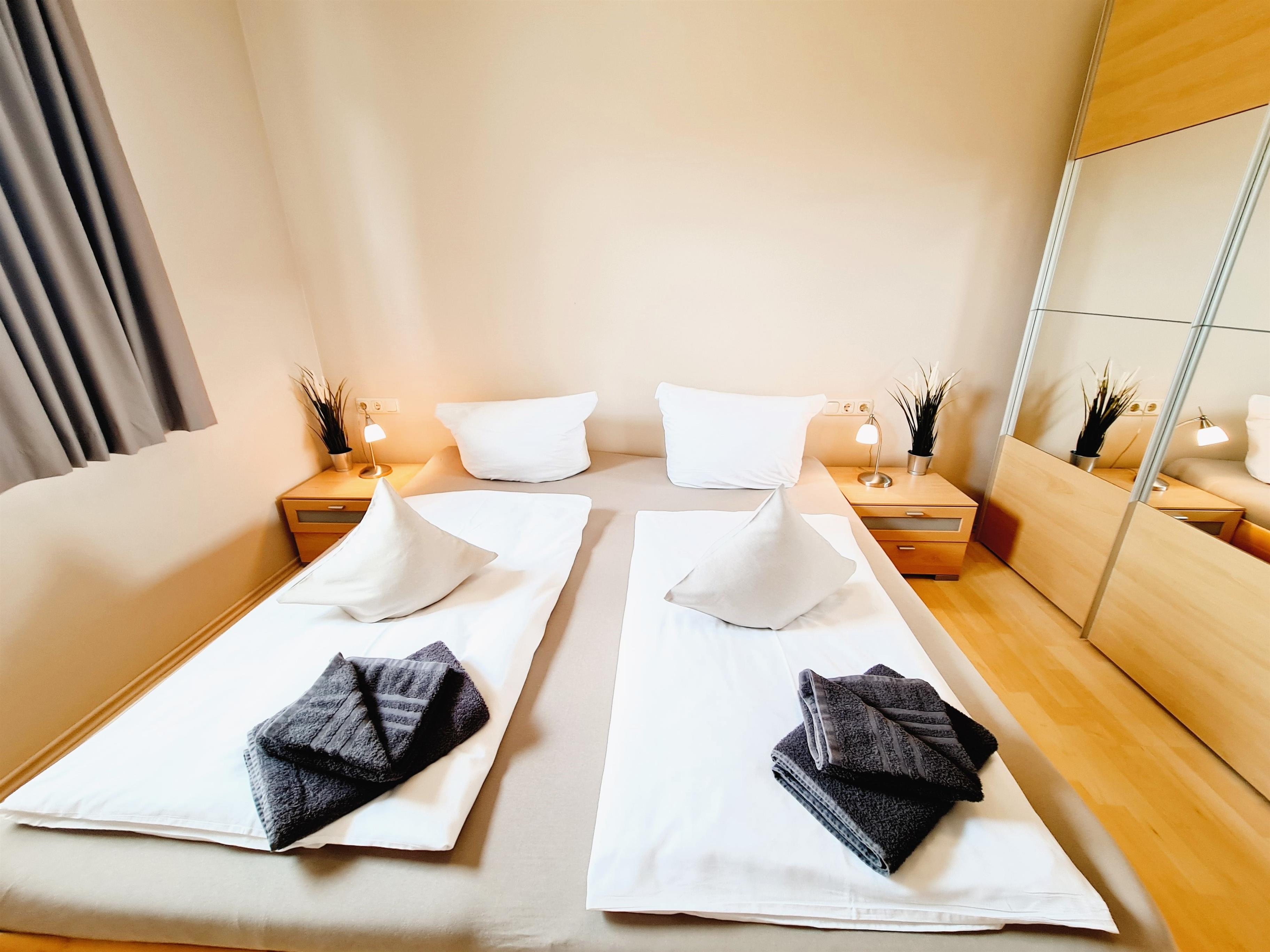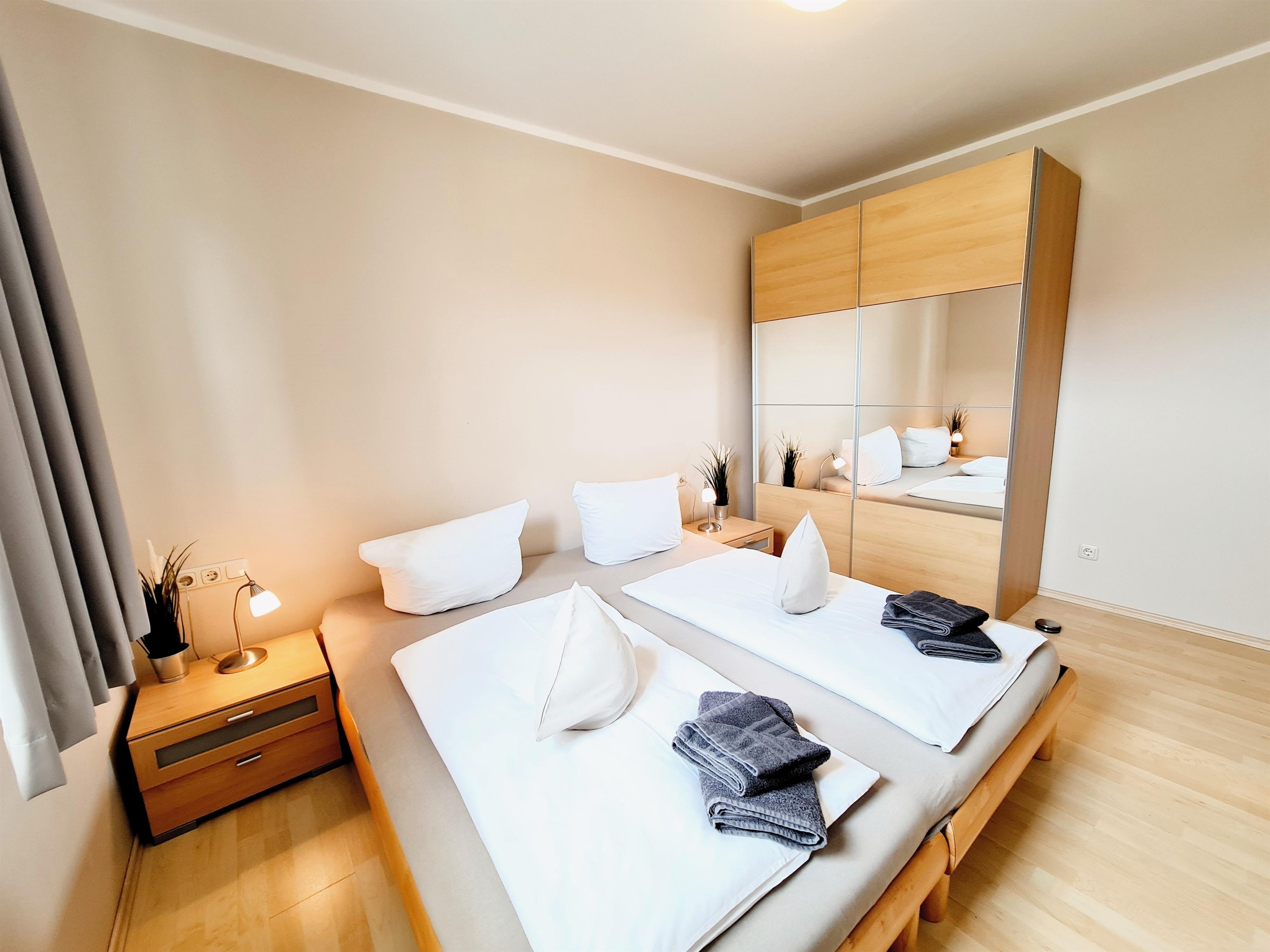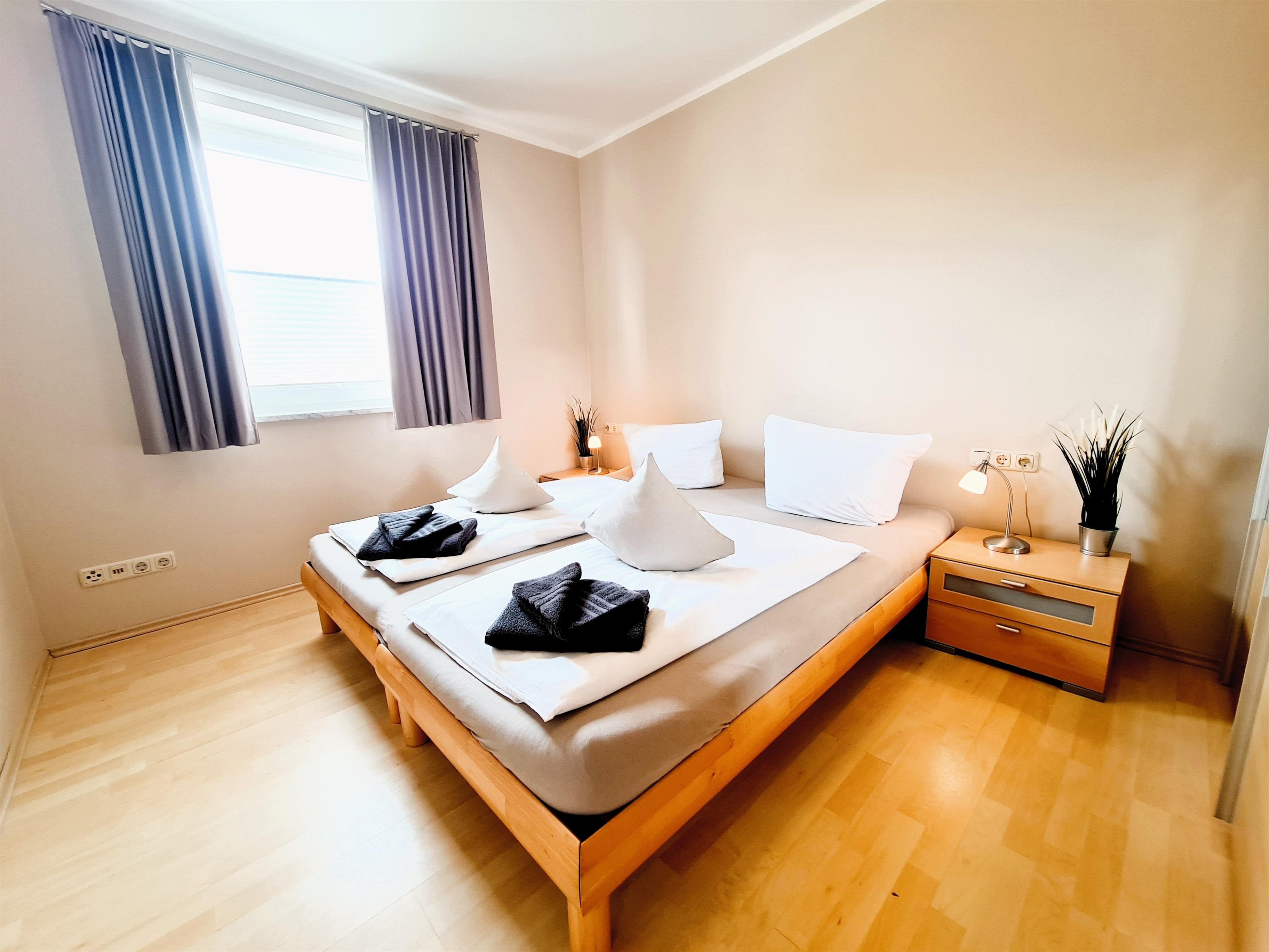 Die Wohnung verfügt über 3 Schlafzimmer (1 SZ mit Etagenbett), zudem einen großzügigen Wohn-, Koch- und Essbereich, einem Bad mit Dusche, einem Gäste-WC mit Waschmaschine und einem großzügigen Balkon zur Südseite.