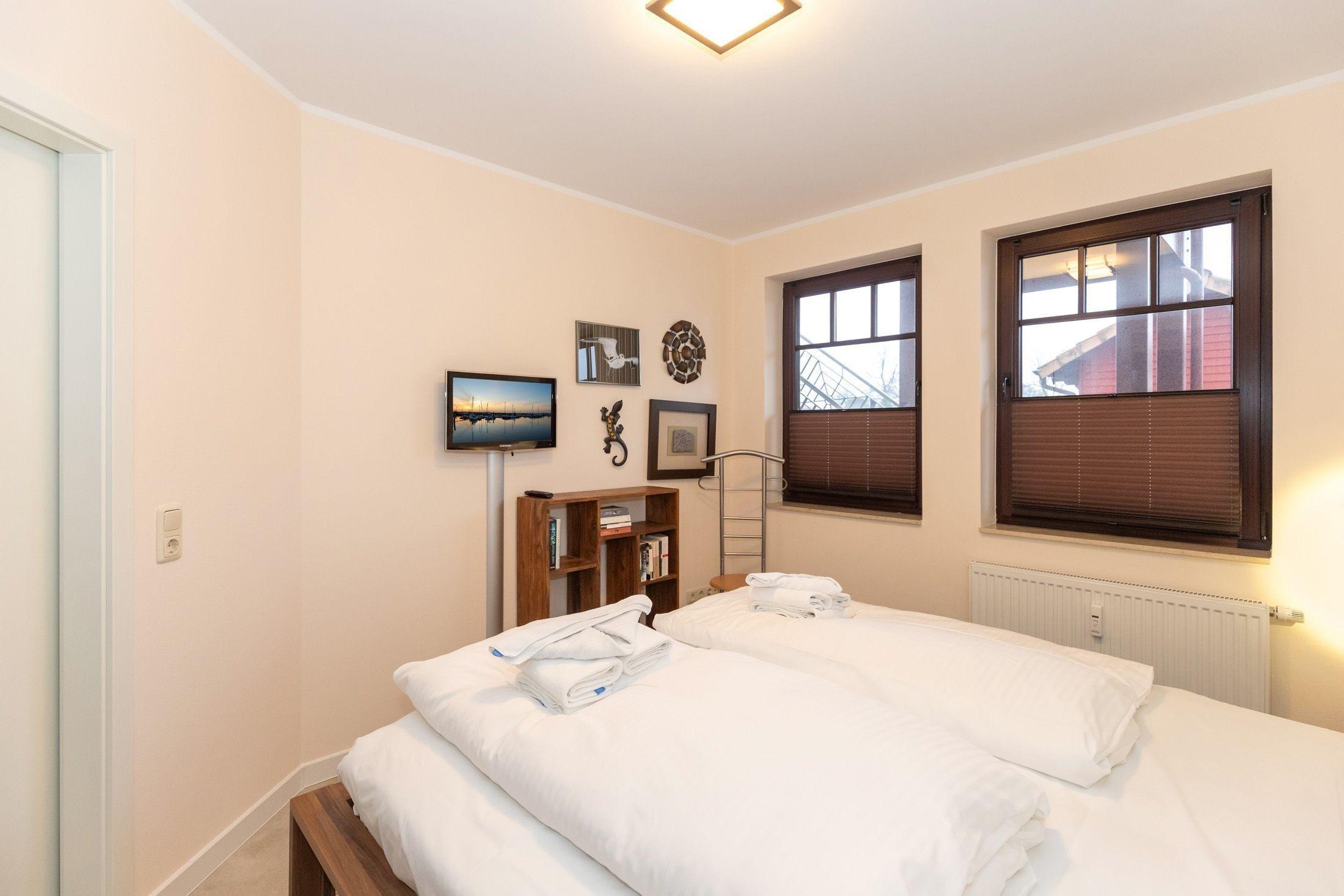 Im Schlafzimmer können Sie im Doppelbett den erholsamen Schlaf finden, sowie den 2. TV nutzen. Ein Kleiderschrank für Ihre Urlaubsgarderobe finden Sie selbstverständlich auch.