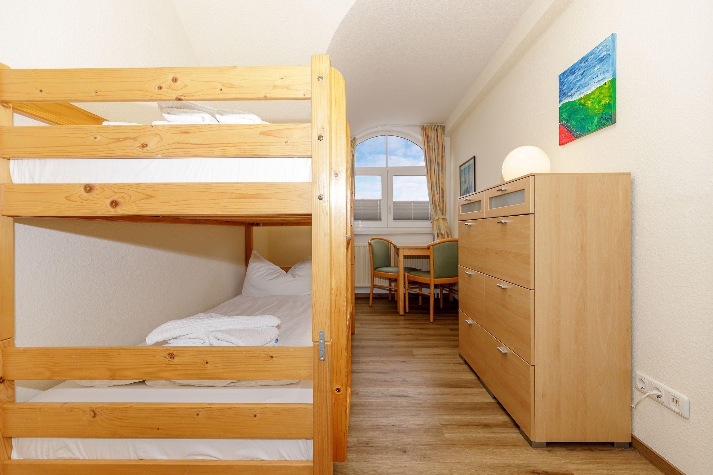 Auch ein geräumiger Kleiderschrank steht Ihnen hier zur Verfügung, in dem Sie Ihre gesamte Urlaubsgarderobe verstauen können. Das 2. Schlafzimmer ist mit einem Etagenbett und 2 Hochkommoden eingerichtet.