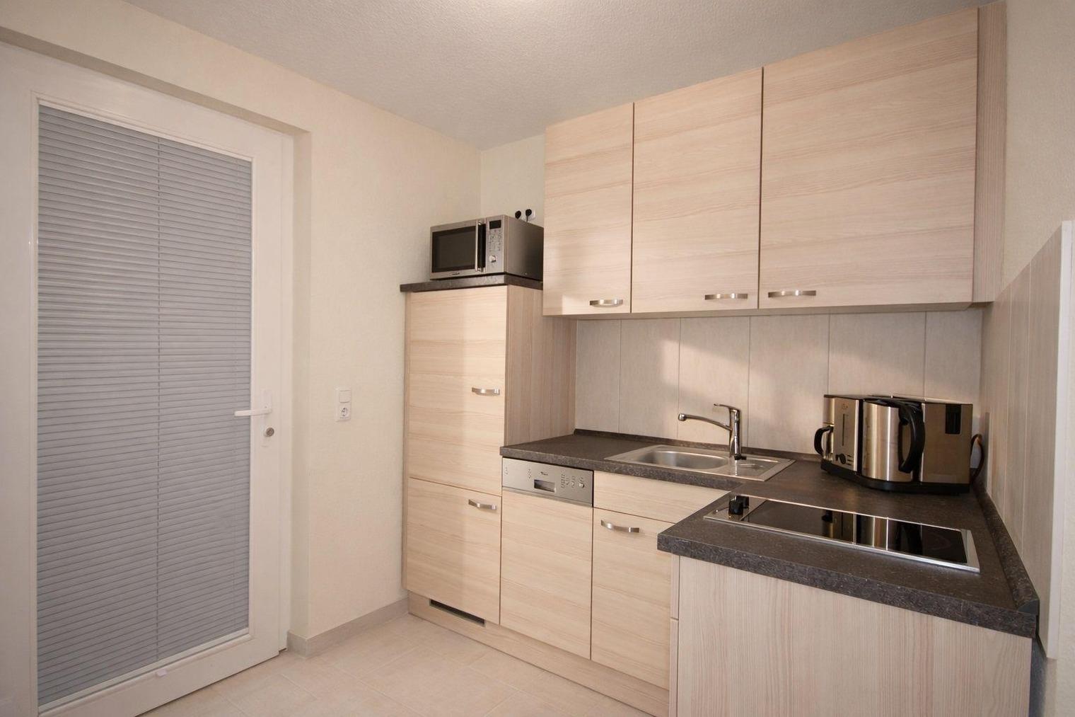 Die offene und voll ausgestattete Küche bietet Ihnen alle Bequemlichkeiten einer modernen Küche. Schnell haben Sie hier Ihre Lieblingsmahlzeiten gezaubert.
