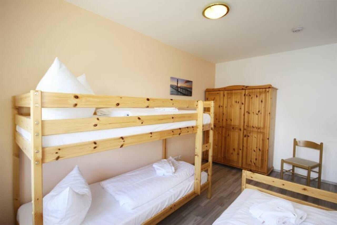 Von der Küche aus erreichen Sie das 1. Schlafzimmer. Hier finden 3 Personen erholsamen Schlaf in einem Etagen- und einem Einzelbett. Ebenso ist ausreichend Platz für Ihre Urlaubsgarderobe vorhanden.