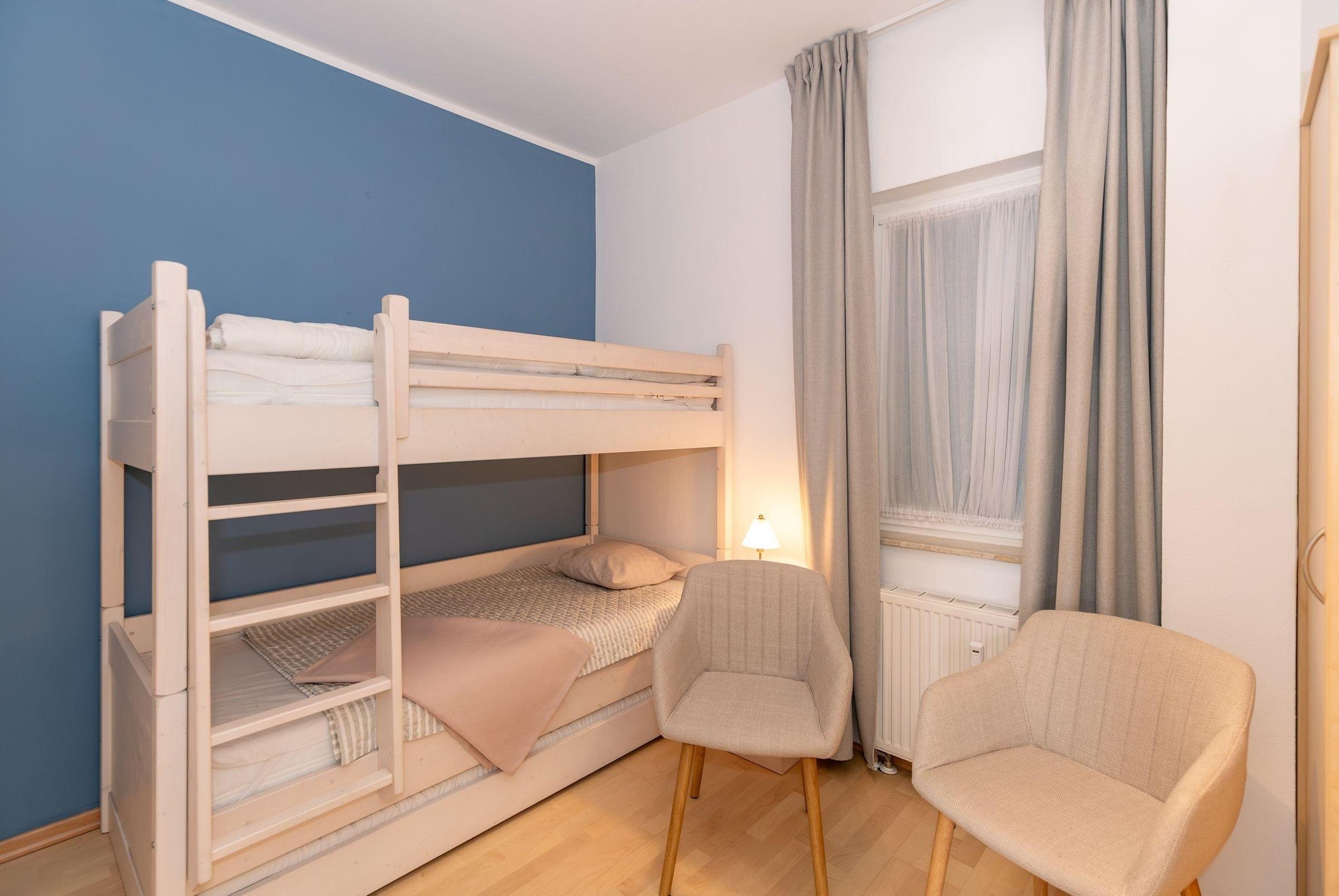 Doppelbetten und geräumigen Kleiderschränken ausgestattet. In einem dieser Räume steht Ihnen ein TV zur Verfügung. In dem dritten Schlafzimmer bietet ein Hochbett zwei weitere Schlafplätze. Zwei Schlafzimmer sind zum Atrium gelegen.